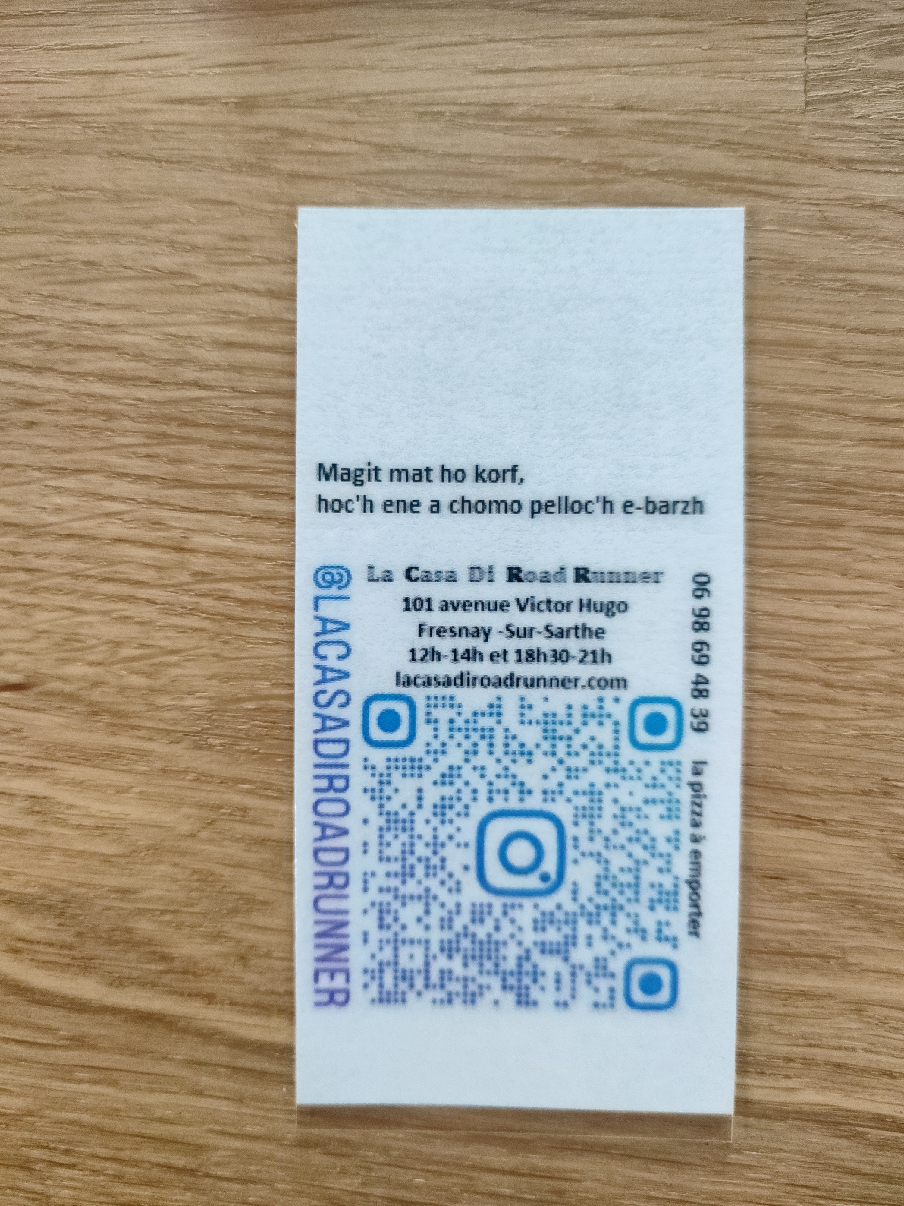Merci, oui la visibilité n'est pas évidente, plus qu'un choix de confidentialité en mode VIP il y a une forte contrainte de par le fait que vous êtes dans une zone protégée étant dans la zone des 250 mètres du château. Site classé veut dire interdiction de panneaux trop visible et lumineux qui serait en contradiction avec les Bâtiments de France. Et en effet la Casa Di Road Runner est un ancien relais des postes qui plonge ses racines dans le moyen âge. Et la terrasse où vous avez mangé se trouve être les anciennes écuries qui ont été démantelé le siècle dernier ce qui a pour effet de vous offrir une superbe vue la carte postale de Fresnay-sur-Sarthe. On pensera à demander à la mairie de tailler et enlever les arbustes devant la terrasse qui n'ont rien à y faire et qui comprometent l'accès pompier.