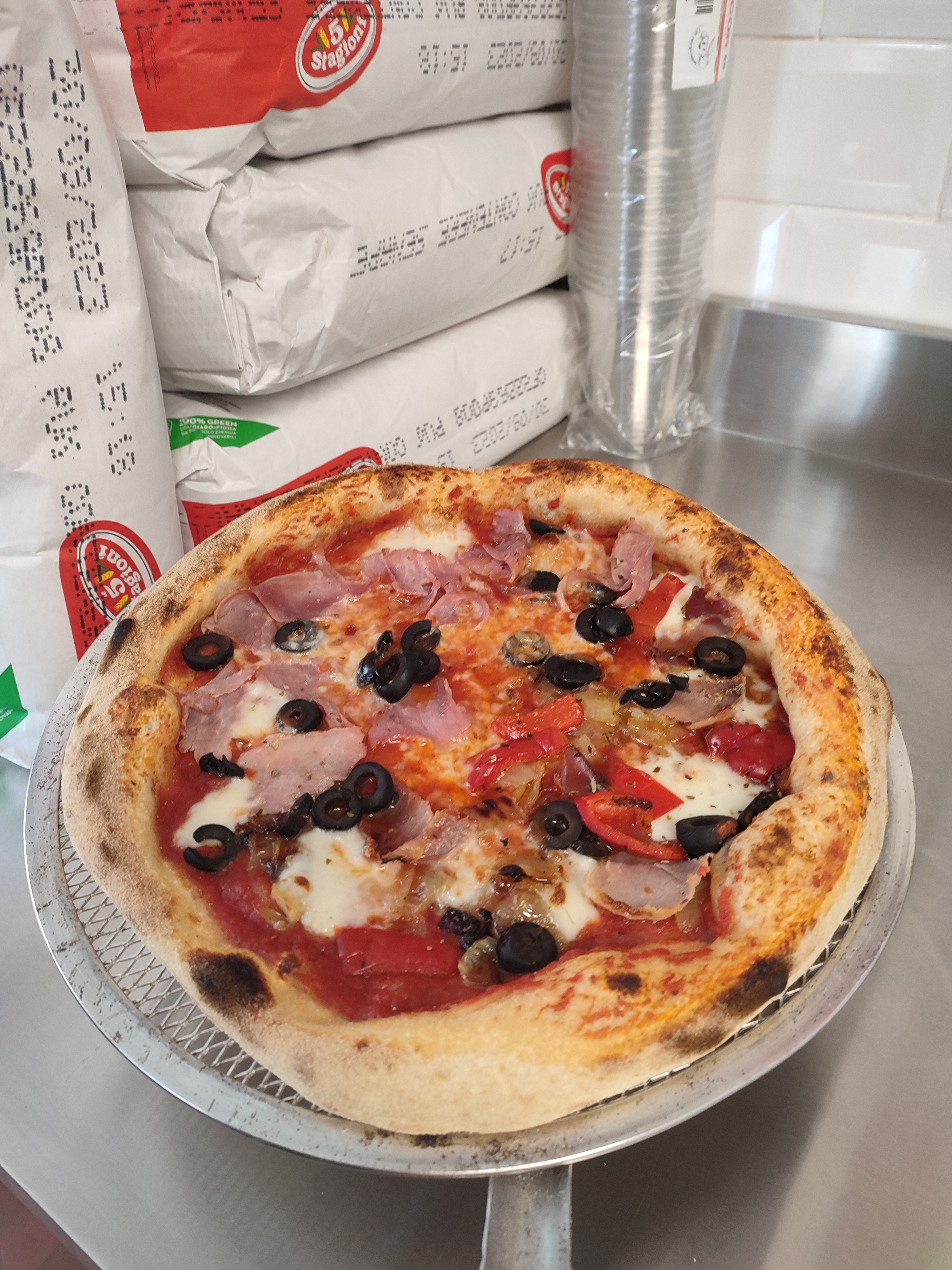 Pizzas copieuses et garnitures très bonnes, juste améliorer la cuisson des pâtes à mon goût pas assez cuites.