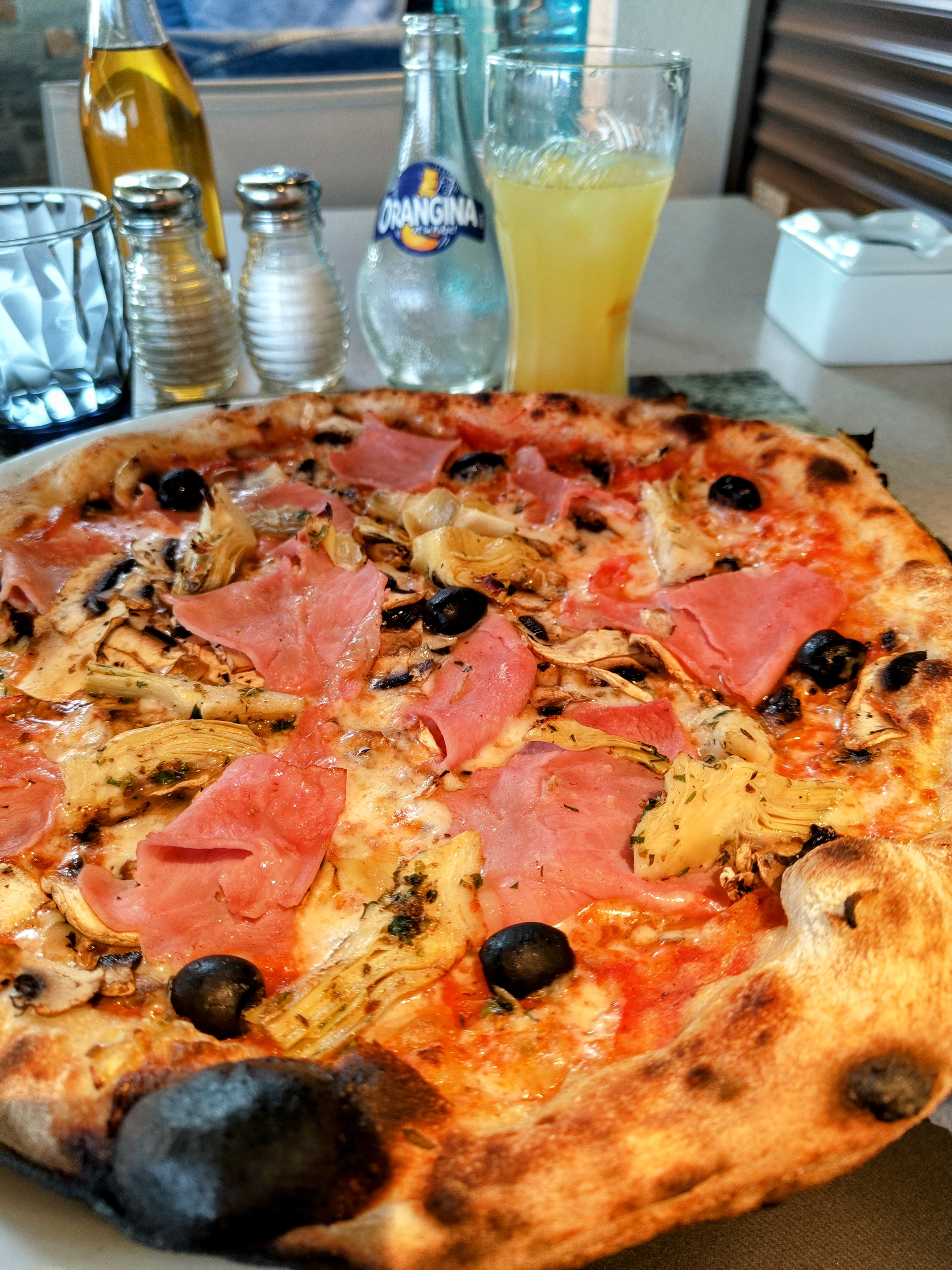 Pour une pizza à 14 euros, j'attends que les produits utilisés soit d'une qualité supérieure ce qui n'est malheureusement pas le cas. Olives noires, coeurs d'artichauts et jambon sans goût bref des matières premières à bas coût pour un résultat équivalent. Le service était agréable.