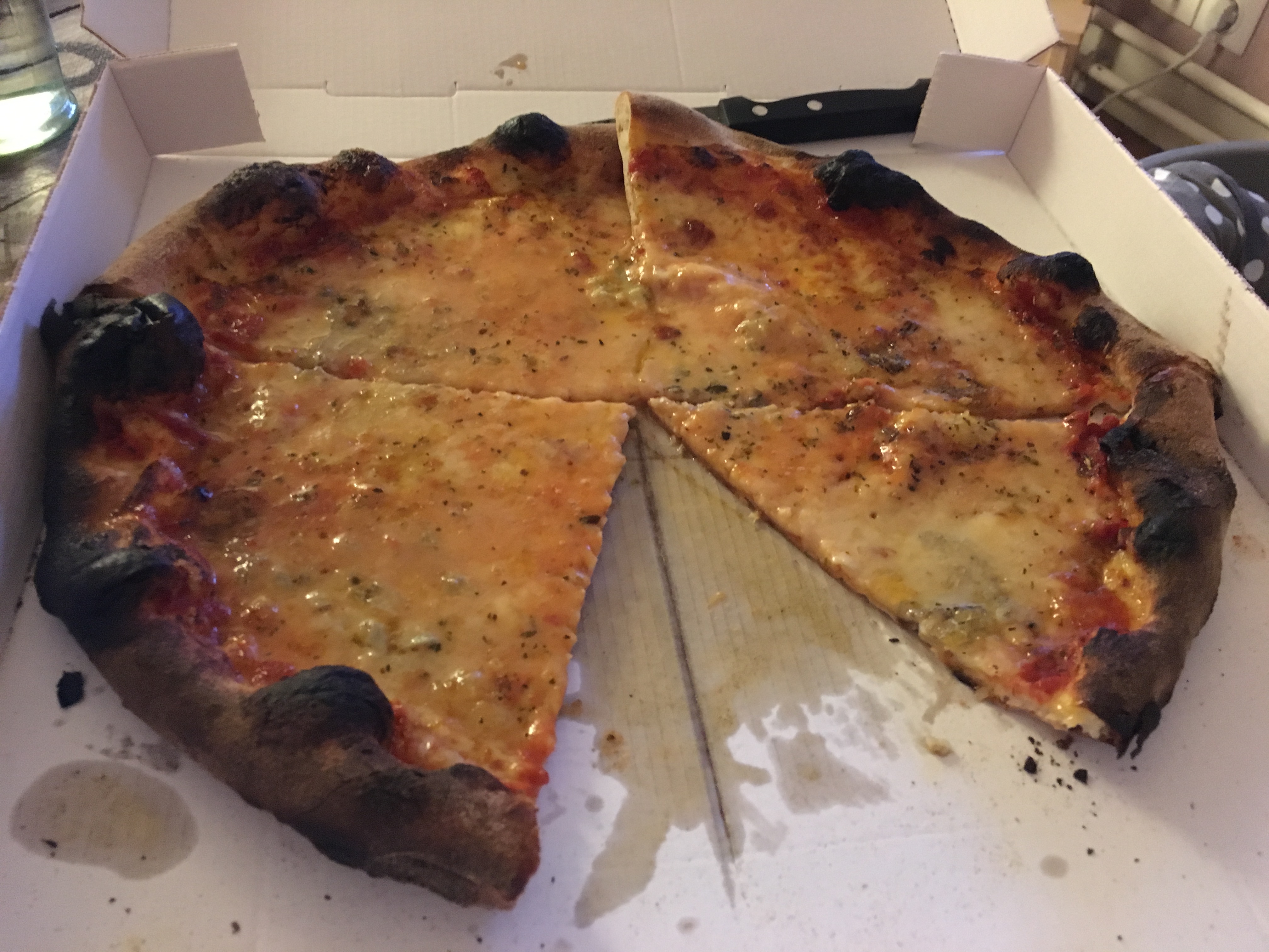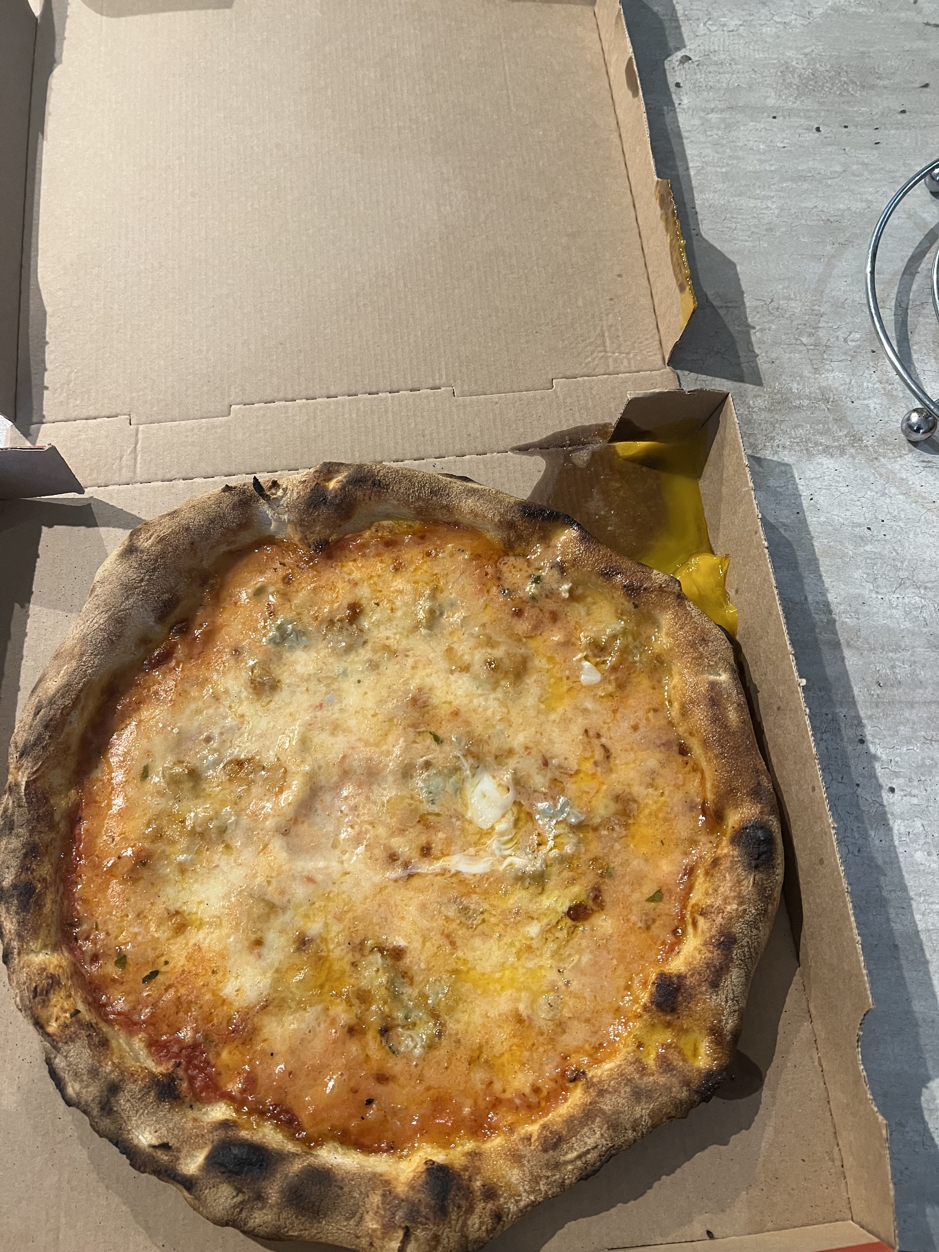 Les pizzas sont très bonnes bien que pas données (16€). La pâte est délicieuse. Super réactivité, pizzas à emporter prêtent en 10mn ! Par contre l'accueil et le service sont déplorables. A peine bonjour, on vous prend de haut, le client n’est manifestement pas roi ! Ça ne donne pas envie d’y retourner…