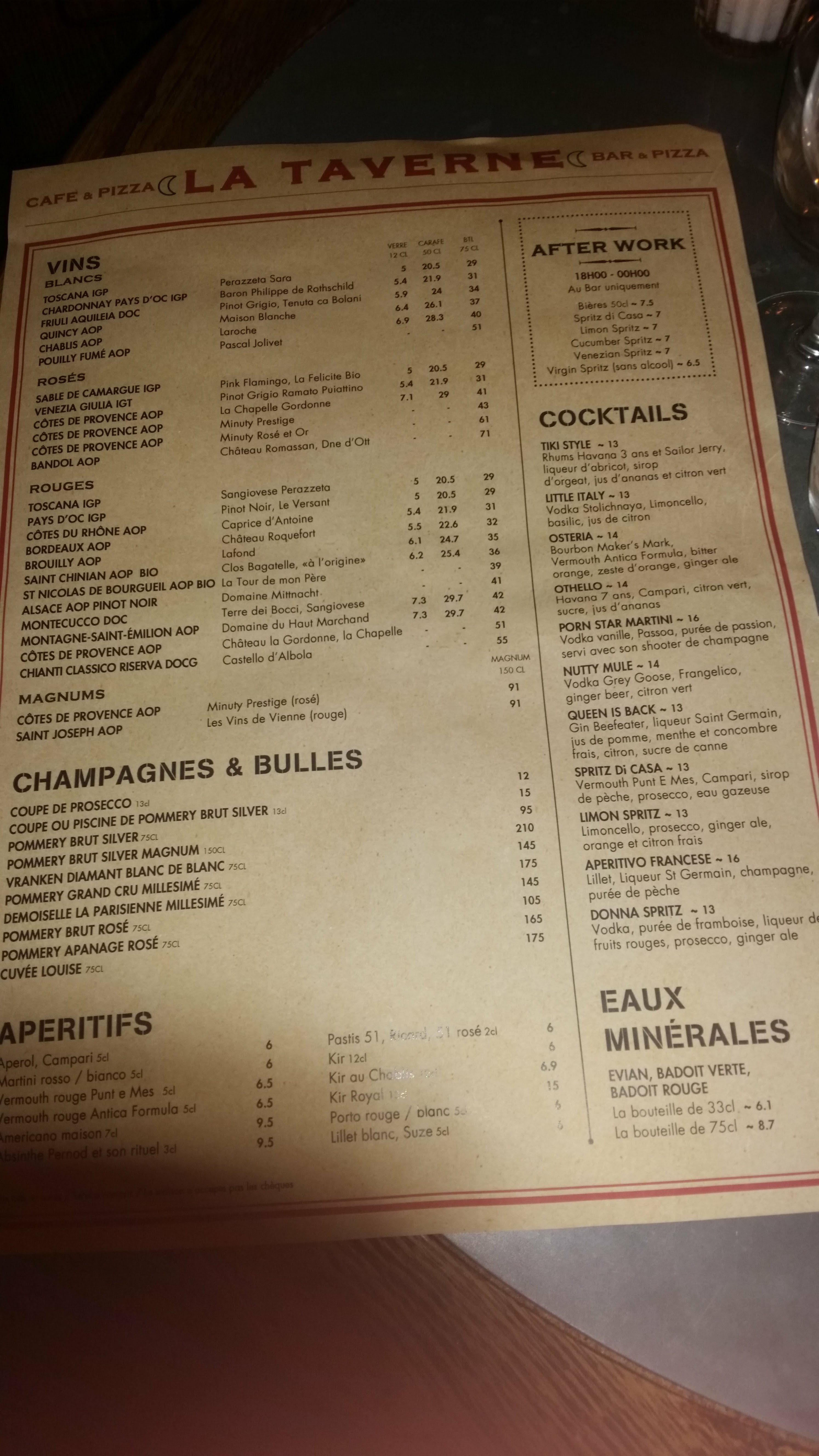 Excellente pizza. Service rapide. Déco et matériel sobres mais propres et typiques d'une brasserie parisienne (en tous cas en terrasse) Un peu cher au final, mais on en a pour son argent dans son assiette, ce qui n'est pas le cas dans toutes les pizzérias. Je recommande la Burratisima qui est servie avec une vraie burrata complète, un régal.