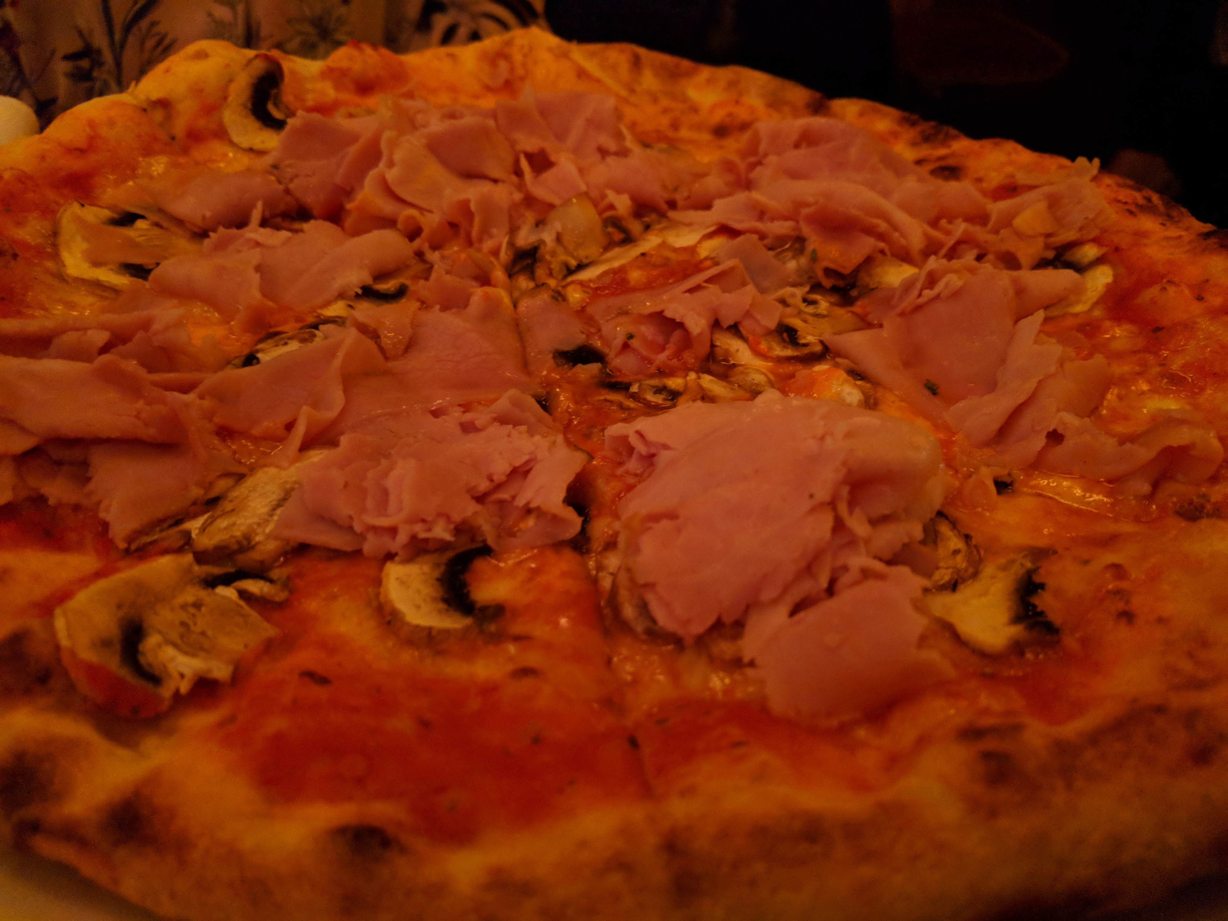 Bonne pizza mais mériterait un peu plus de cuisson, pâte trop molle. La véranda plutôt romantique, bien décorée, idem pour l'intérieur du restaurant et en prime une bonne musique de fond mais personnellement les tables sont un peu trop proches les unes des autres, compliqué de se lever une fois installé. Prévoir de passer aux toilettes avant ou après le repas.