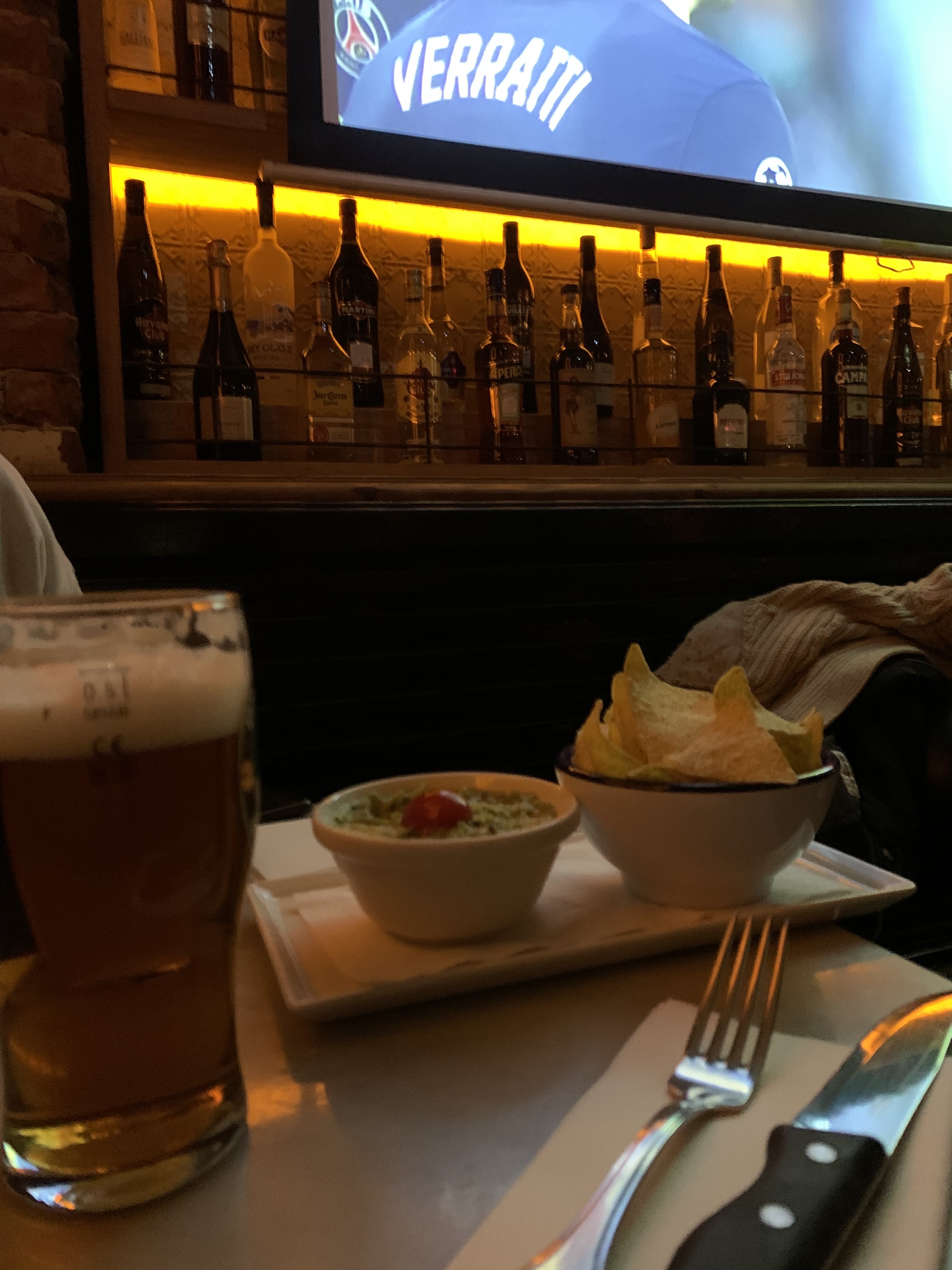 Personnel : très sympa Prix : un peu élevé : 64€ deux pizzas deux bières et un guacamole Nourriture : un peu fade Ambience : super écran pour voir le match