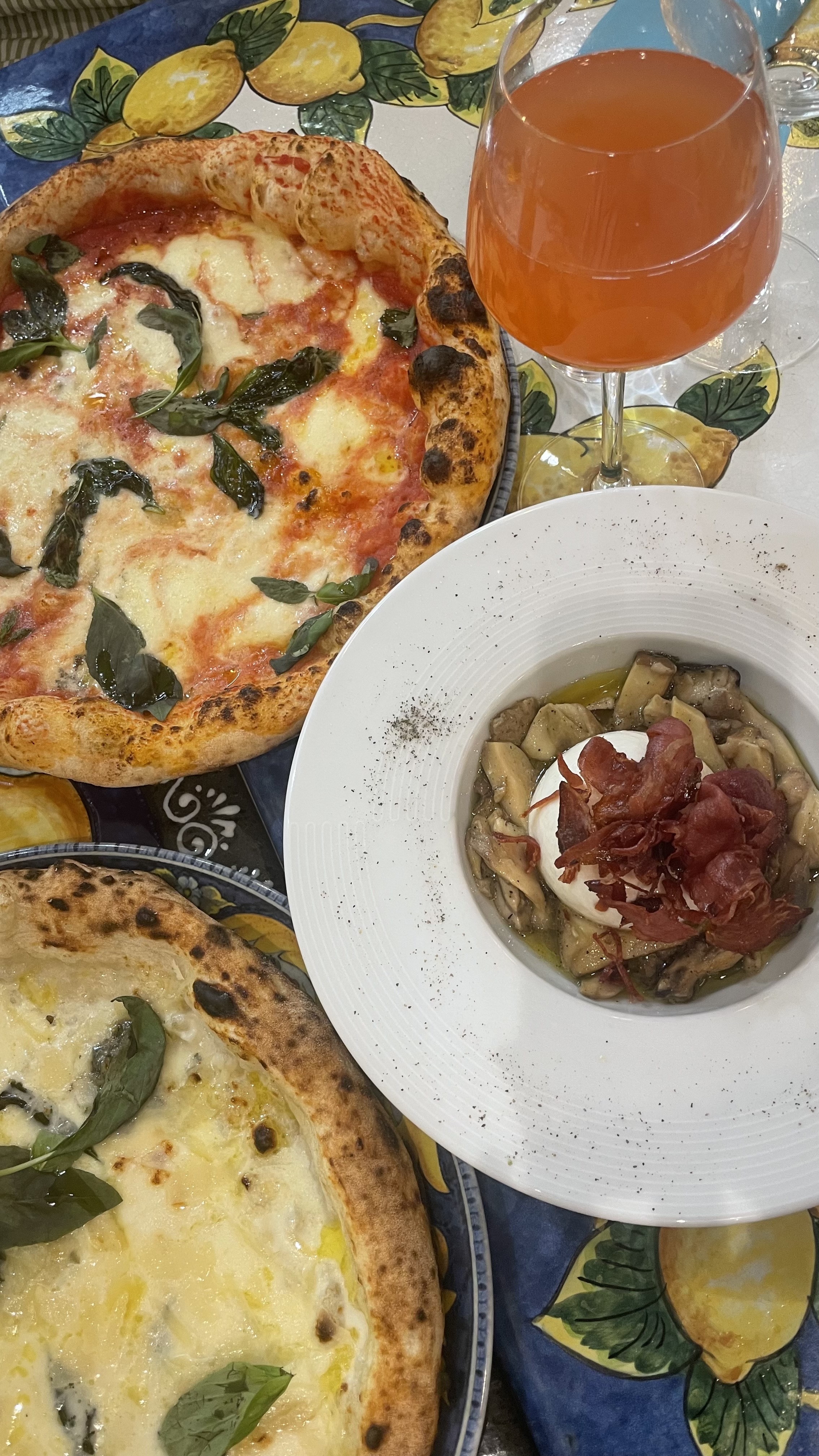 Pizza très bonne, mais je suis déçu de la cuisson des pâtes, trop cuites… j’aurais peut-être dû préciser al dente. Le spritz bien dosé. Qualité prix rien à dire. On reviendra.