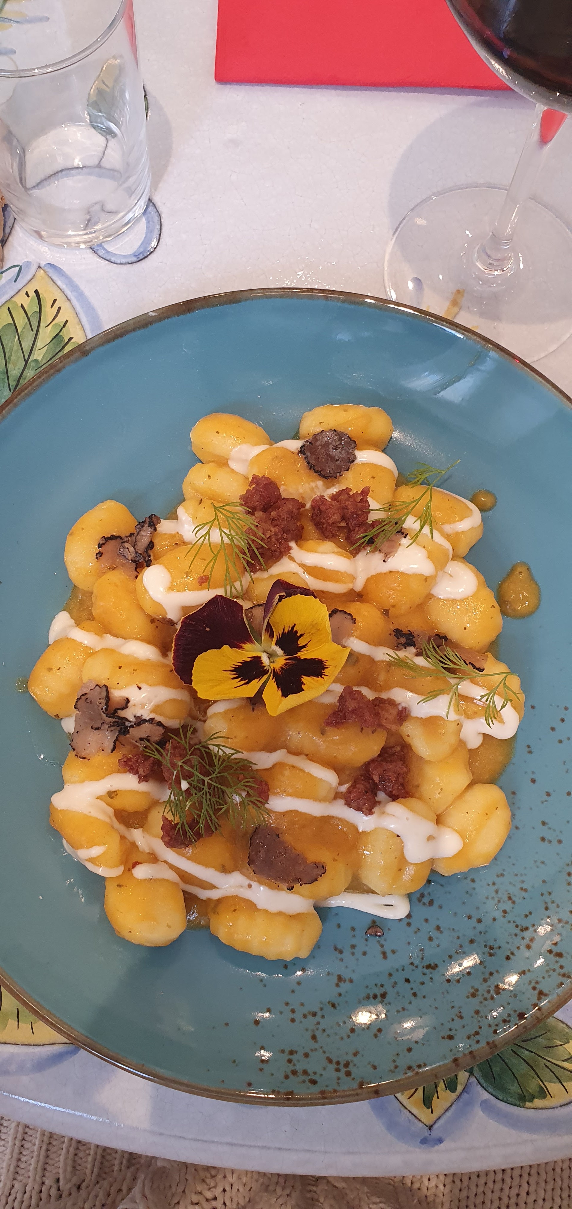 Belle découverte ! La salle au premier, la deco, on y est en Italie ! Le menu enfant (parce qu'il y en a un 😉) est simple mais très bon. Le dessert du menu : glace artisanale : celle au citron un délice. La plat de gnocchi crème de citrouille truffe, saucisse grillée lacrima de pecorino : tout y est le goût, le mariage des saveurs, bref j ai adorée. Pour sûr, une adresse que je garde et recommande 👍