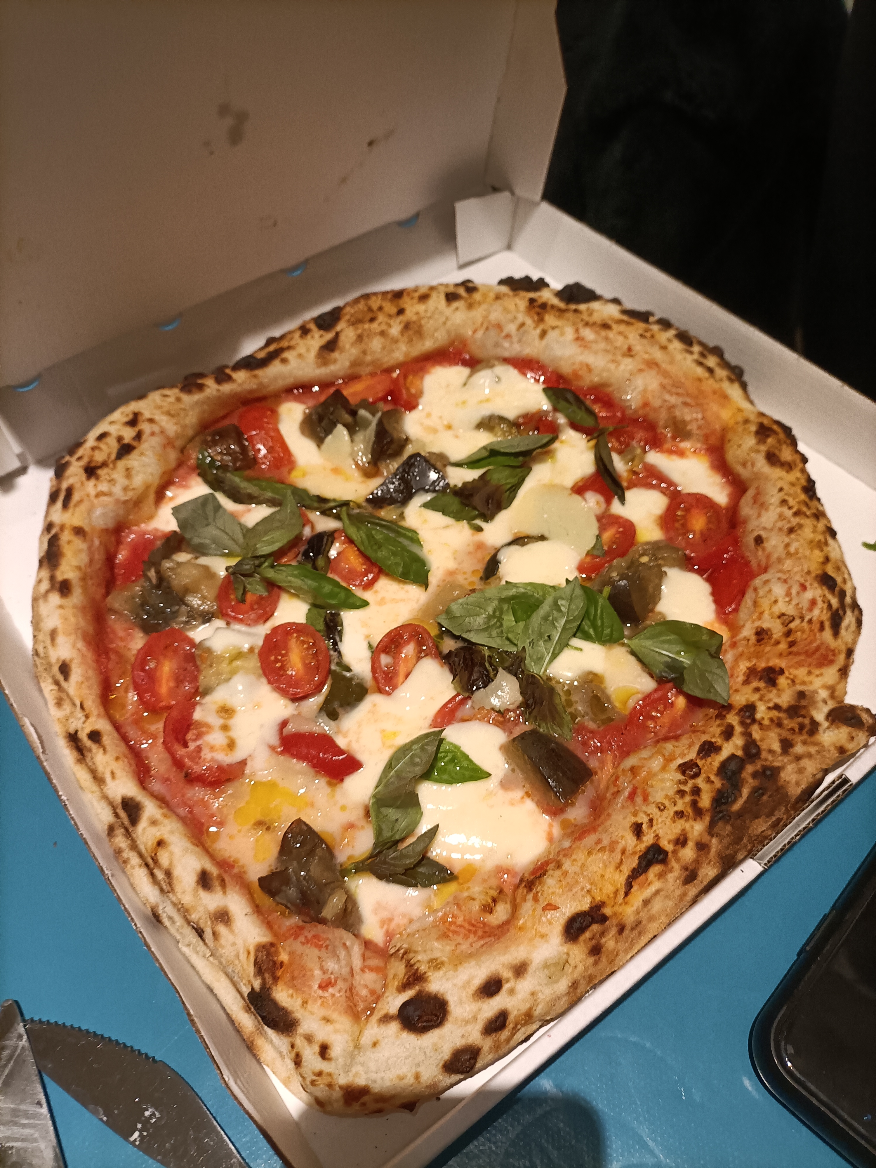 Décidément parfait, la vaisselle, le four napolitain évidemment, les ingrédients. Pizzas, plats, desserts, vins, tout est à propos, jusqu'aux délicieuses olives servies en apéritif, pour des tarifs raisonnables. Détail qui ne trompe pas, le spritz est proposé en version avec Campari au lieu d'Aperol
