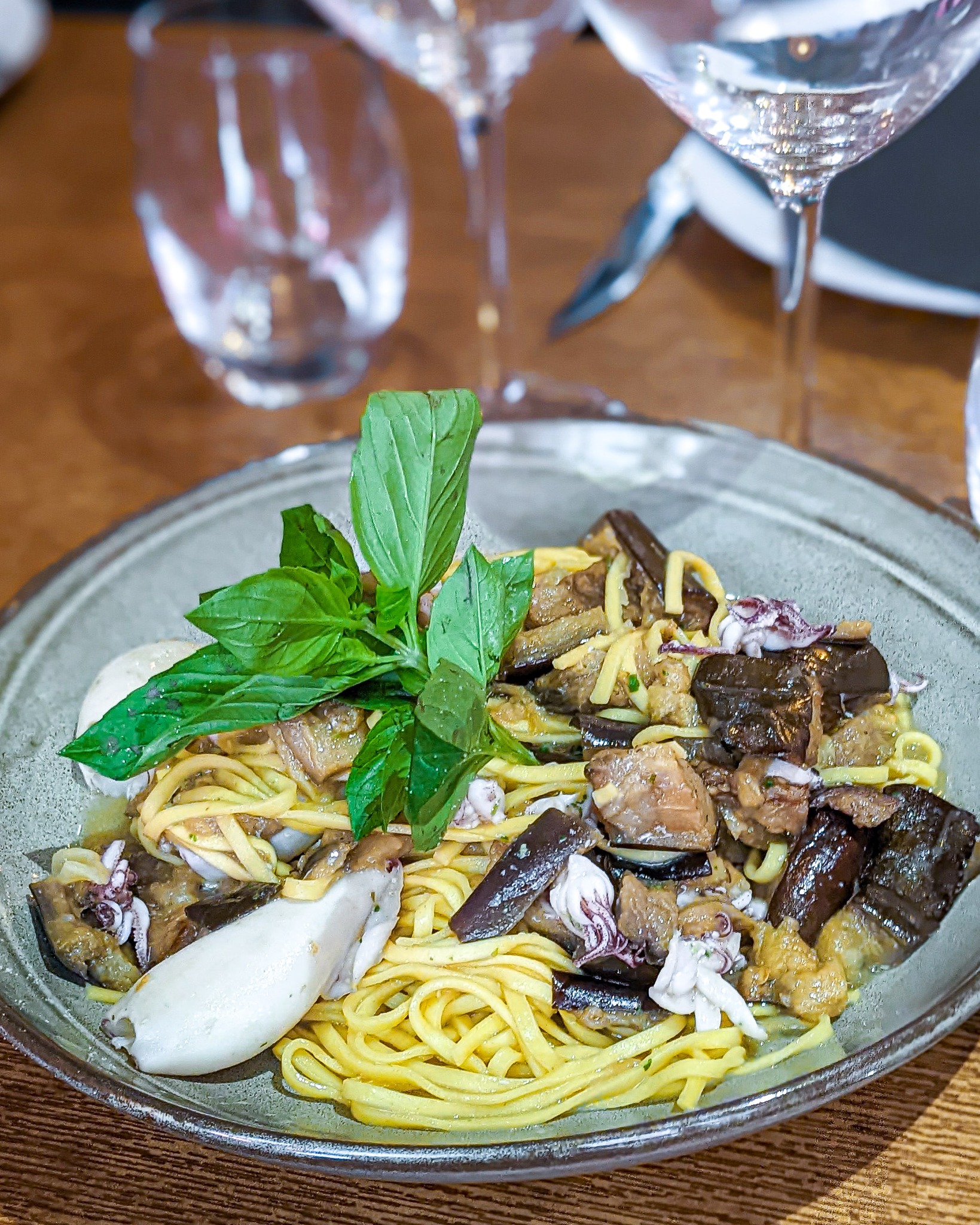 J’ai commandé des ravioles végétariennes et on m’a servi des ravioles au boeuf. En soit, ça ne me dérange pas mais il aurait fallu venir me demander avant de me servir l’assiette. Heureusement que j’aime ça et que je ne suis pas végétarienne. Les plats sont tout de même bons. Les pâtes sont fraiches. Le serveur est agréable et le service rapide. La musique d’ambiance très agréable et pas trop forte, parfait pour discuter tranquillement sans avoir à hausser le ton. Le décor est beau. Cependant, on ne nous a pas proposé les suggestions du jour contrairement à une autre table arrivée après nous. Nous sommes arrivées en retard, je l’avoue, et devions être partie pour 21h, on ressentait un peu d’empressement au niveau du service ; comme le plat qui arrive alors que nous n’avions pas terminé l’entré.