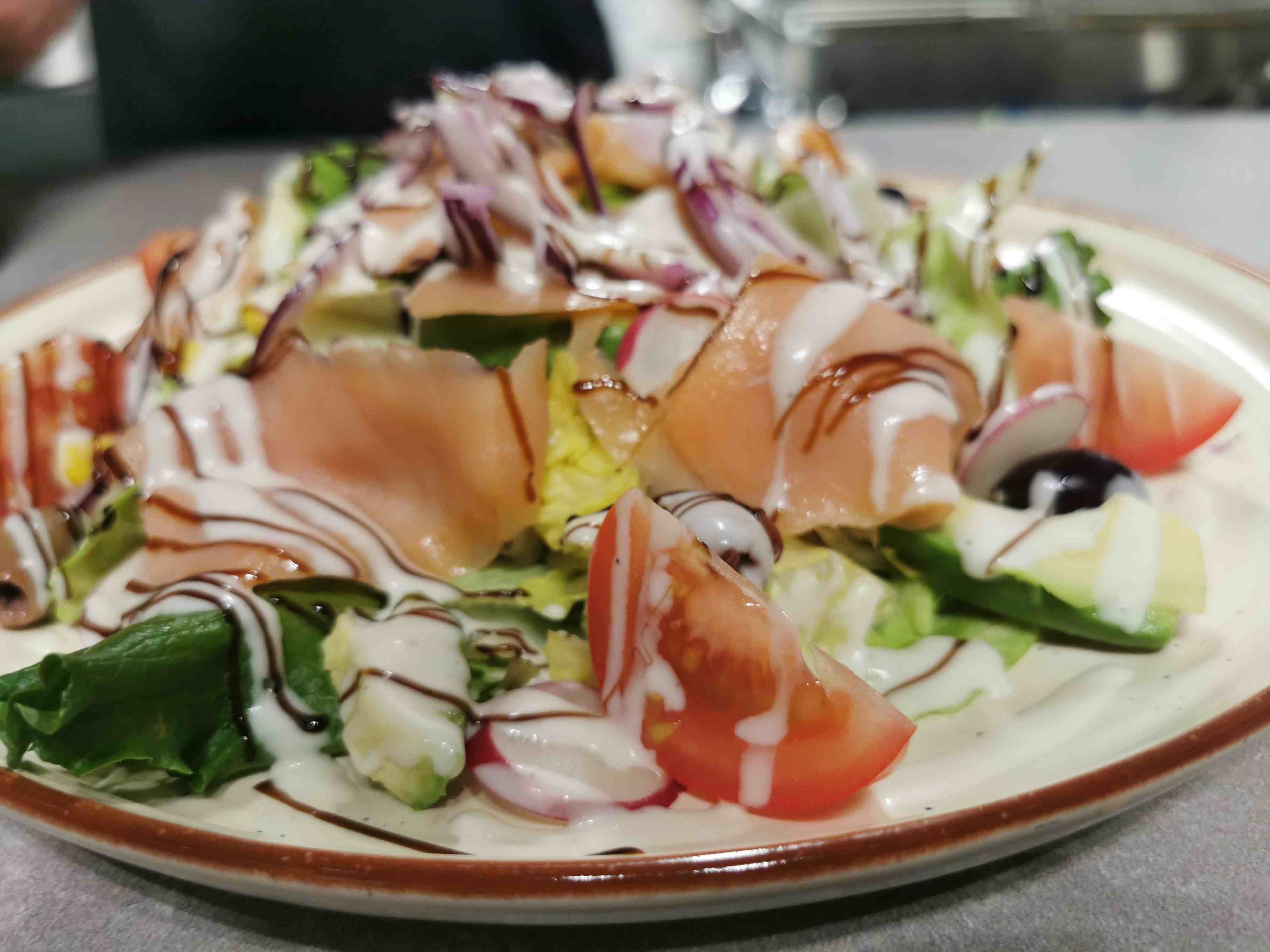 Très bon restaurant : plat de pâtes au saumon et pizza succulents ! Prix abordables, personnel souriant, à disposition. Je recommande !!!!