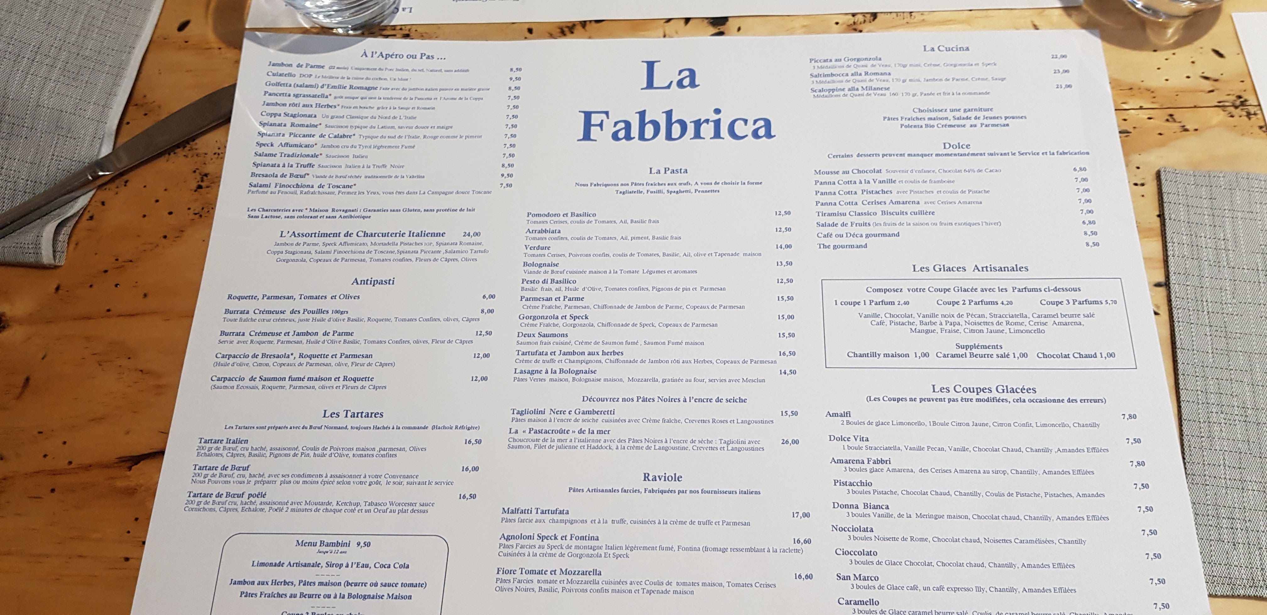 Plus encore que la nourriture (très bonne et très variée) c'est l'accueil qui fait de la Fabbrica un lieu hautement recommandable : des sourires, de l'humour et un sens du service remarquable. On y retournera (en réservant cette fois) !