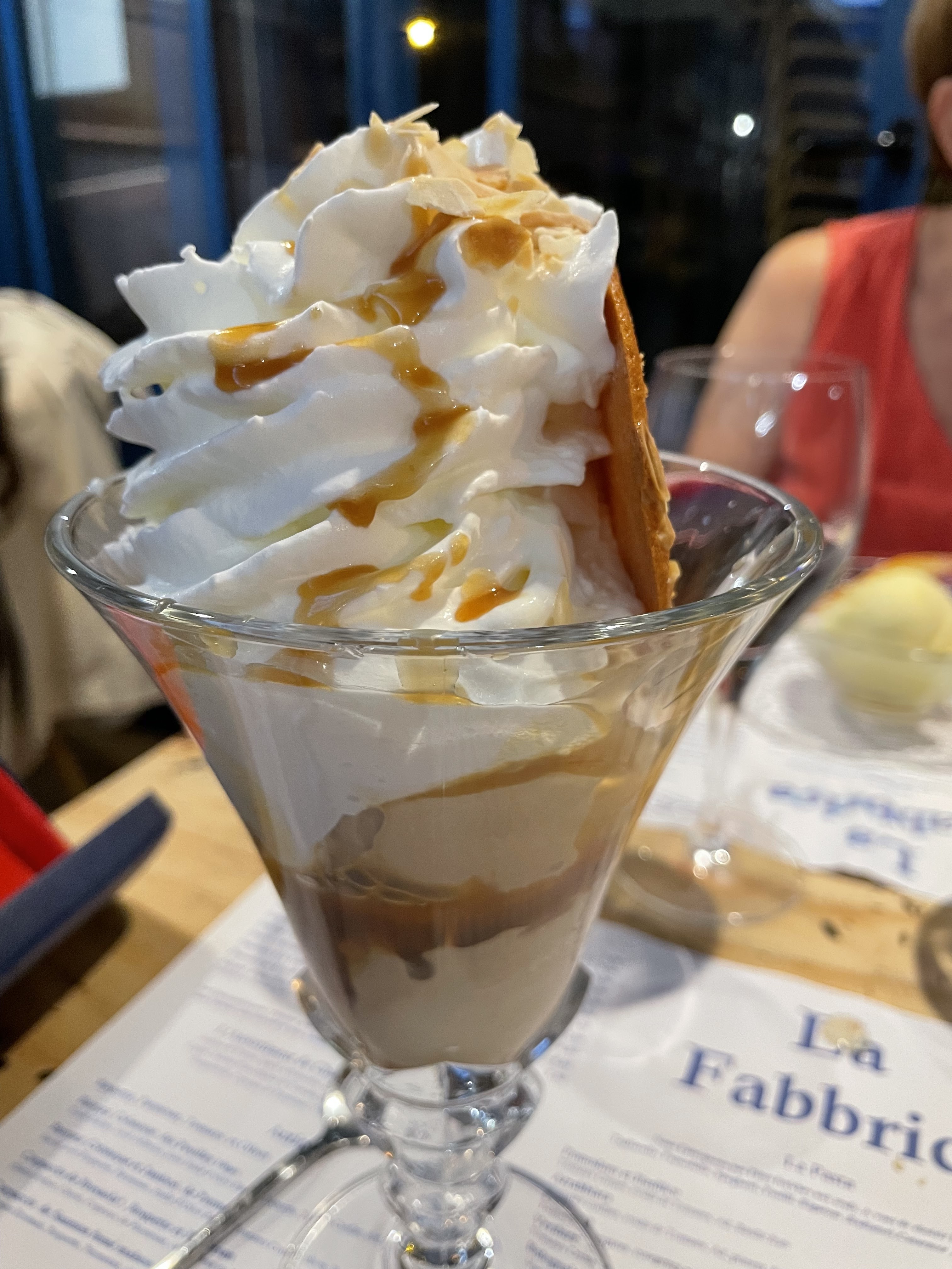 La Fabbrica » est un incontournable ! La cuisine est excellente, les produits de qualité, la carte des vins est variée, et l'accueil chaleureux de Francine vous mettra tout de suite à l'aise. Je recommande particulièrement la coupe « Tonio » qui est tout simplement délicieuse, et qui ravira sans aucun doute les connaisseurs. Une expérience culinaire au top, qui rivalise sans aucun doute avec les meilleures tables d'Italie !