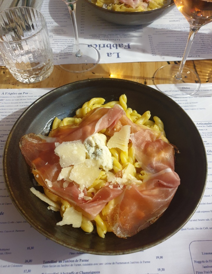 Très, très bon. Un excellent moment, remerciements au serveur et à la patronne qui se sont montrés très pro et aimables. Des plats maison et ça se sent : les saveurs des pâtes sont à tomber. Un peu d'attente, mais le ton est donné par l'ardoise annonçant la couleur : pénurie de saisonniers, donc le chef est solo en cuisine. Mais ça vaut le coup de patienter ! Ayant dîner en terrasse, nous n'avons pas pu voir grand chose du restaurant en lui-même, mais le peu aperçu était très joli, style fabrique de pâtes (d'où le nom) avec vieux ustensiles . Une suggestion, cependant, que nos voisins de table partageaient : proposer une assiette dégustation individuelle ou adaptable selon le nombre de convives. Tout fait envie, mais vraiment tout ! Et on est frustré parce que la qualité se paye et vu les tarifs (et les portions généreuses dignes d'une mama italienne : une entrée = ~15 tranches de charcuterie), on ne peut pas se permettre plus d'une assiette par personne. Donc une assiette ayant la même composition que la planche apéritive (pour 6, à 25€, ce qui est raisonnable), mais en quantité moindre ferait à tous les coups fureur ! Et si vous avez la possibilité, des babas au rhum artisanaux dans un grand bocal 😁 Par contre, en saison, un conseil : réservez !