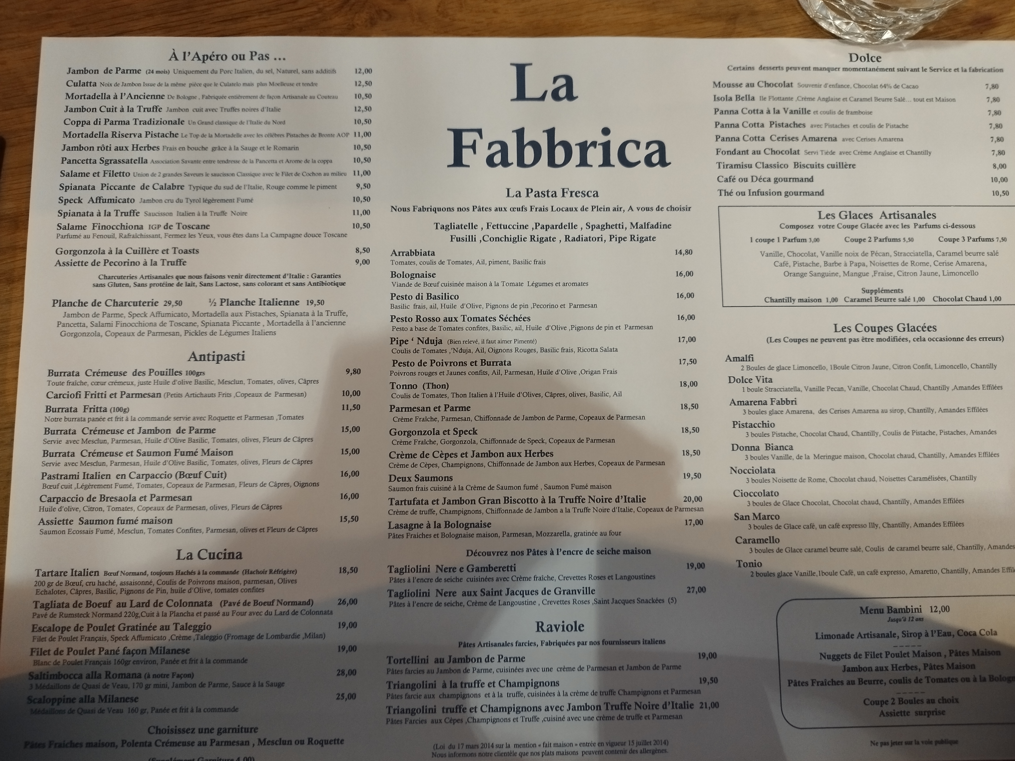Je donne un avis comme italien... c'est un des meilleurs restaurants italiens dans les quelles j'ai mangé. Tous les produits sont des qualités ou fait maison. La fabbrica c'est une magnifique entreprise familiale qui pourra vous faire voyager dans différentes régions italiennes. Un grand merci pour cette belle découverte... et un grand bravo!