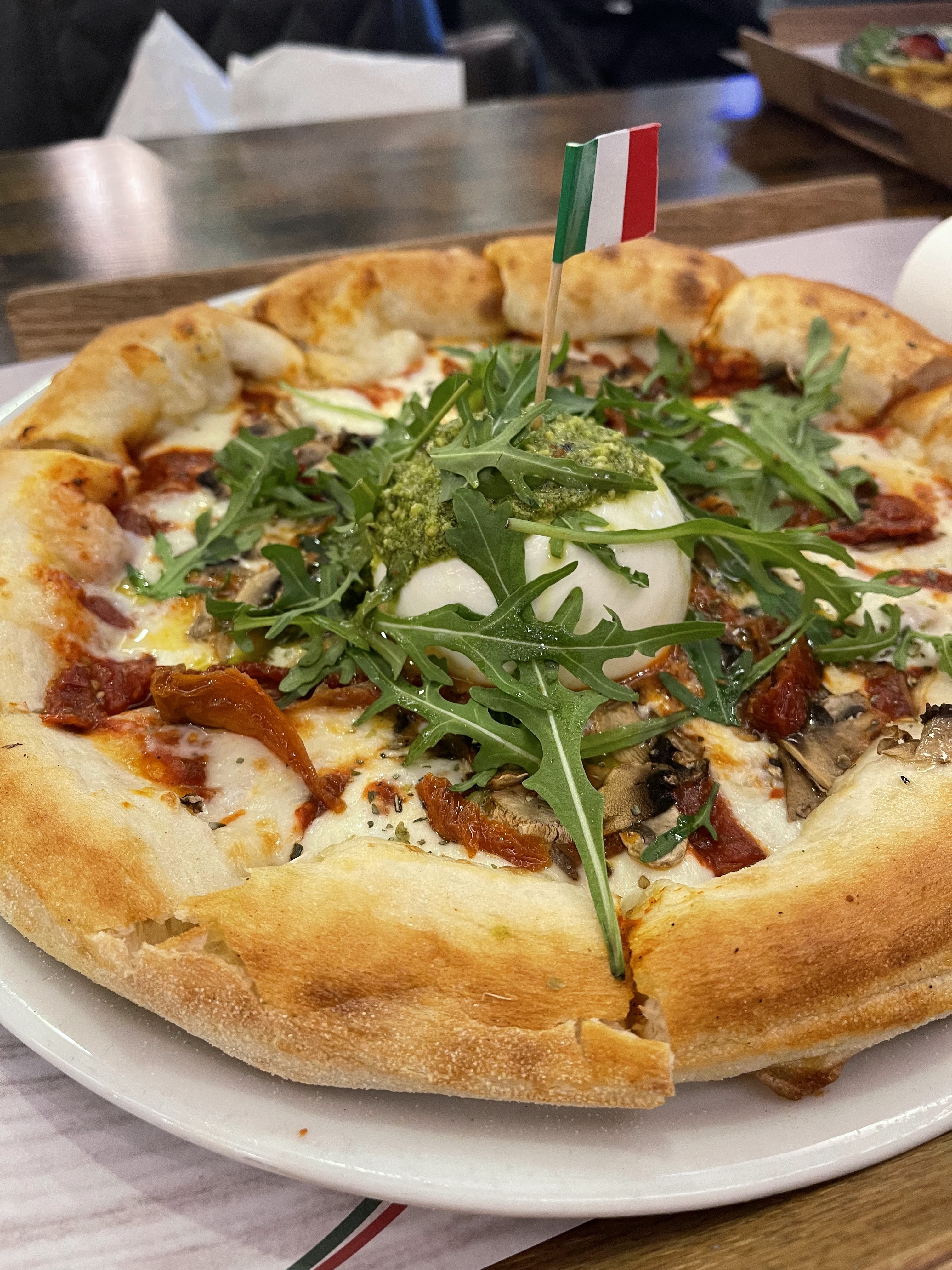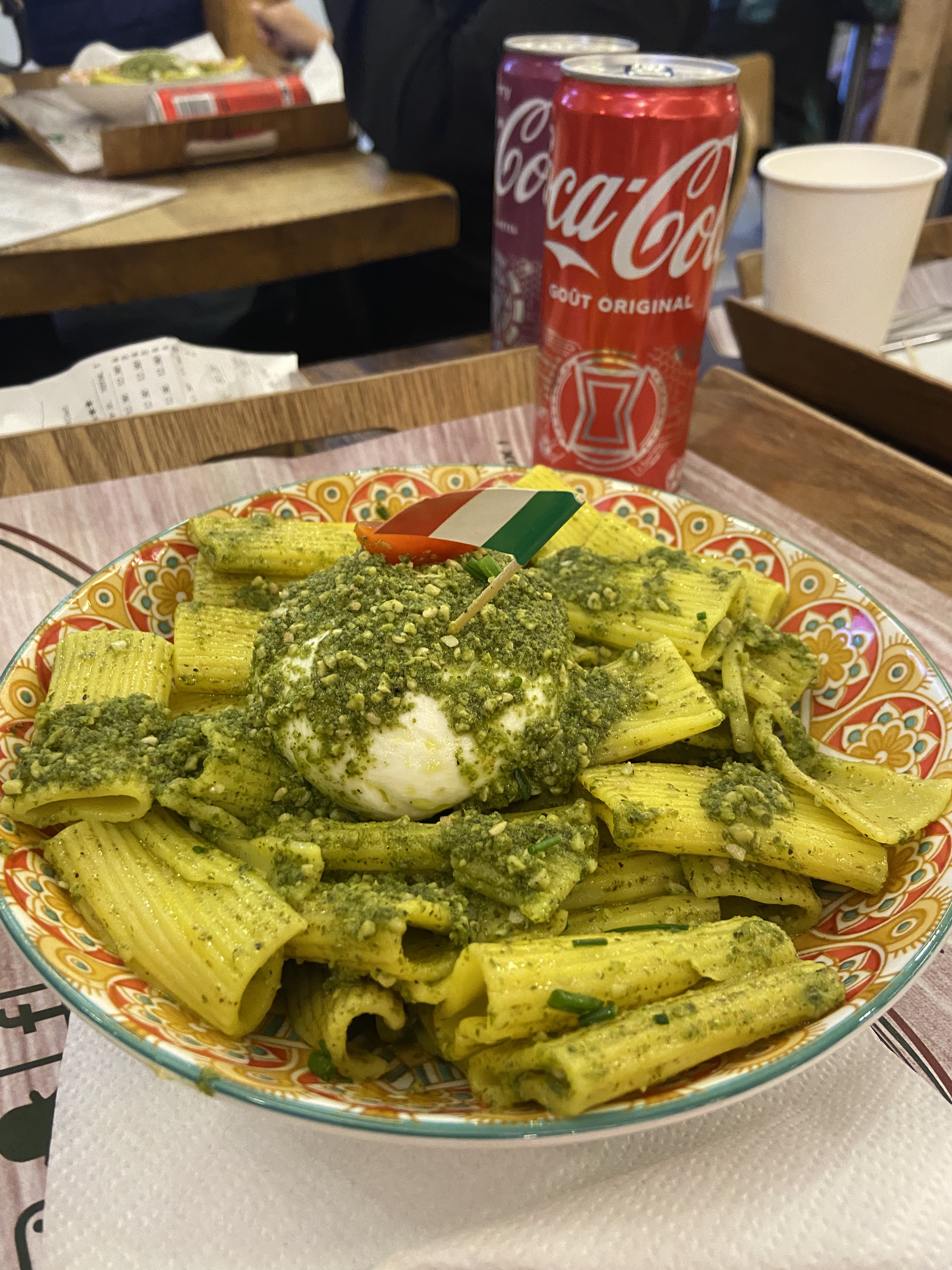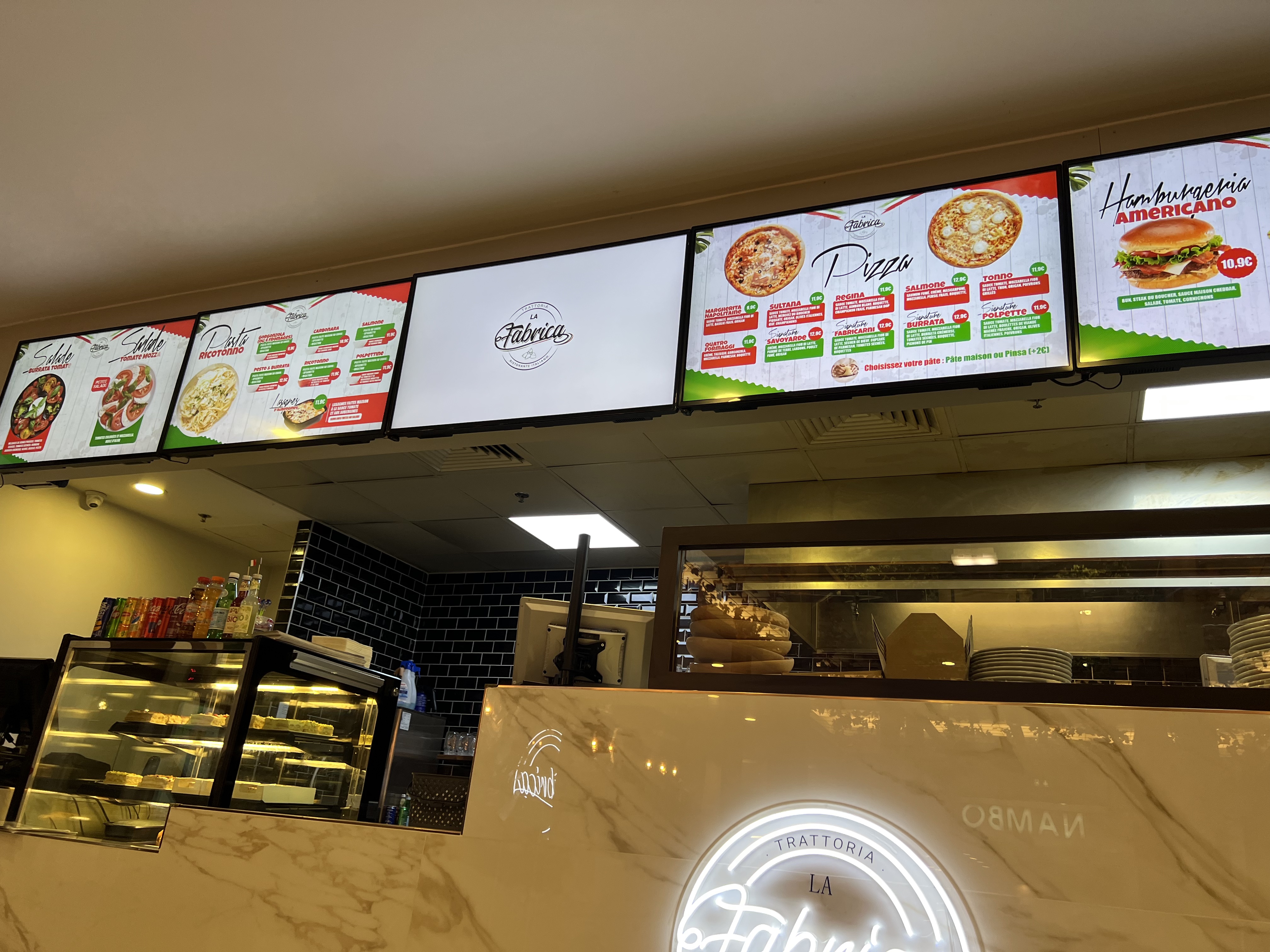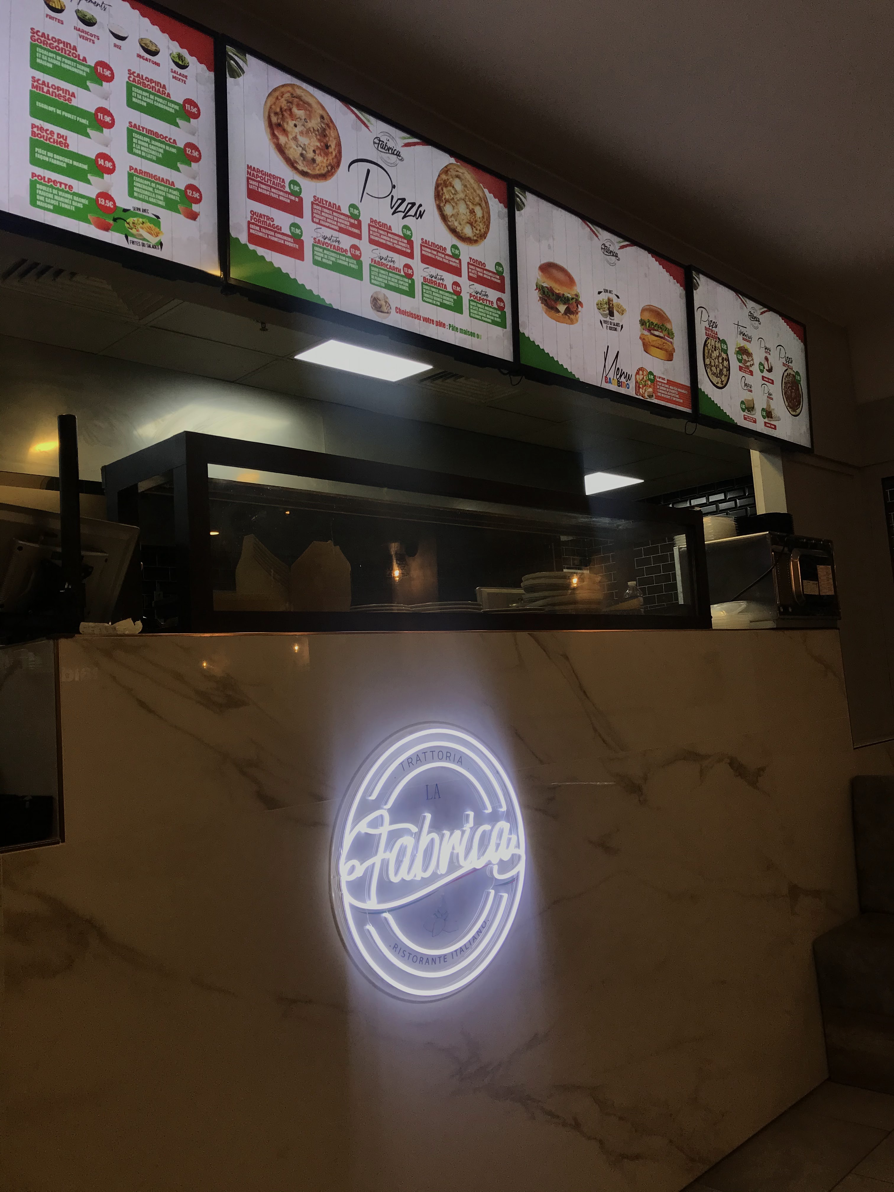 -accueil terrible. Les serveurs discutent entre eux. Sans prendre en considération notre présence. -plat bons mais froids. Nous avons pris des pâtes gorgonzola, froides. Néanmoins, avec une délicieuse pizza burrata. -Il y a un panneau qui indique lorsque notre commande est prête, aucun signe de la part des serveurs. Donc il faut rester les yeux rivés sur l'écran.d'affichage. - tiramisu pistache délicieux. Je conseille. Dans l'ensemble, si vous aimez manger italien mais façon fast fois. Sans devoir discuter avec les serveurs, c'est l'endroit idéal! Les plats sont abordables.