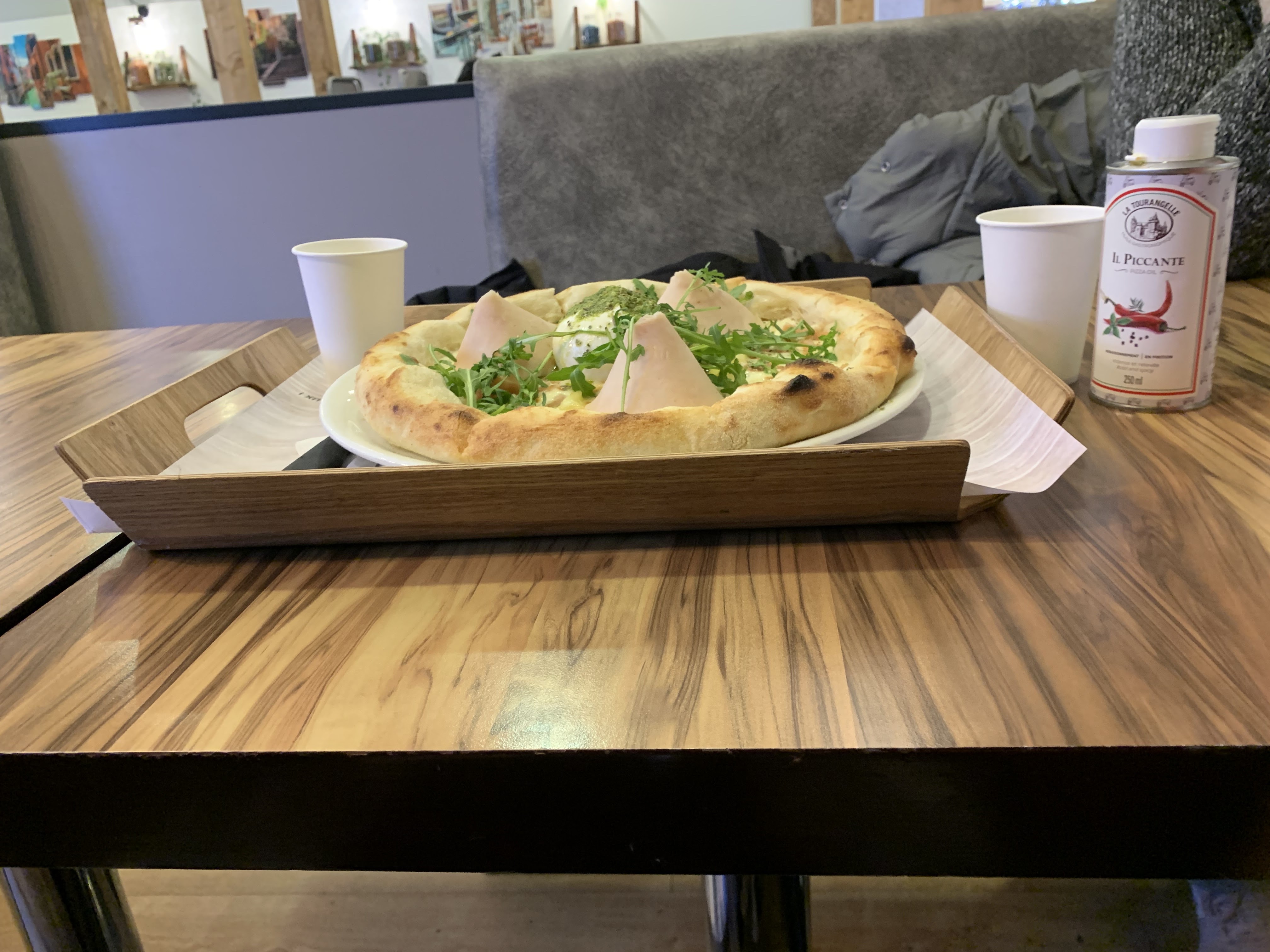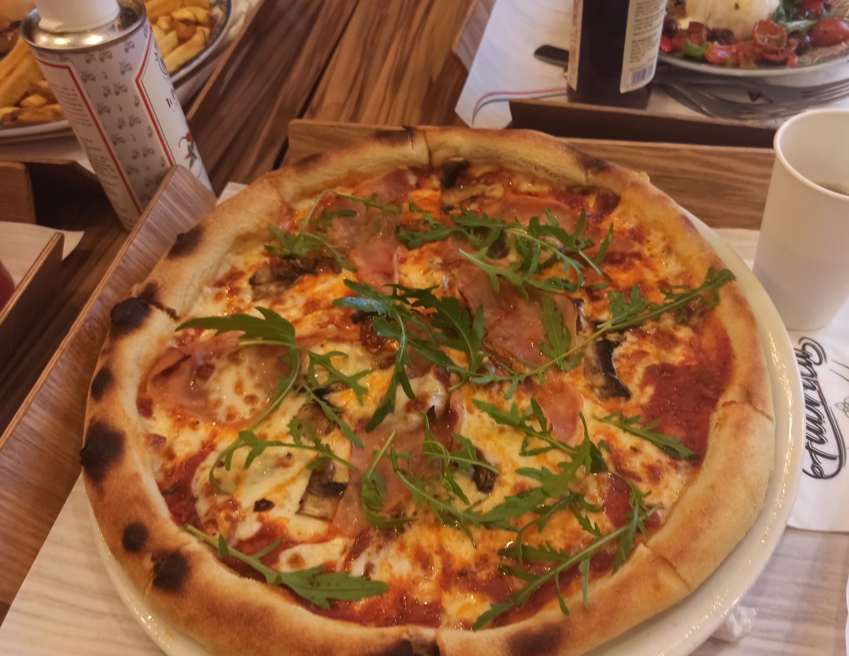 J'ai commandé une Salade caesar, bof pas lavé de la salade pourri au fond du plat. Pizza regina bonne mais seulement 4 tranche de jambon. Plutôt bon cadre, jolie fauteuils confortables mais mais préférez les pizza, pâte bonne et bon four