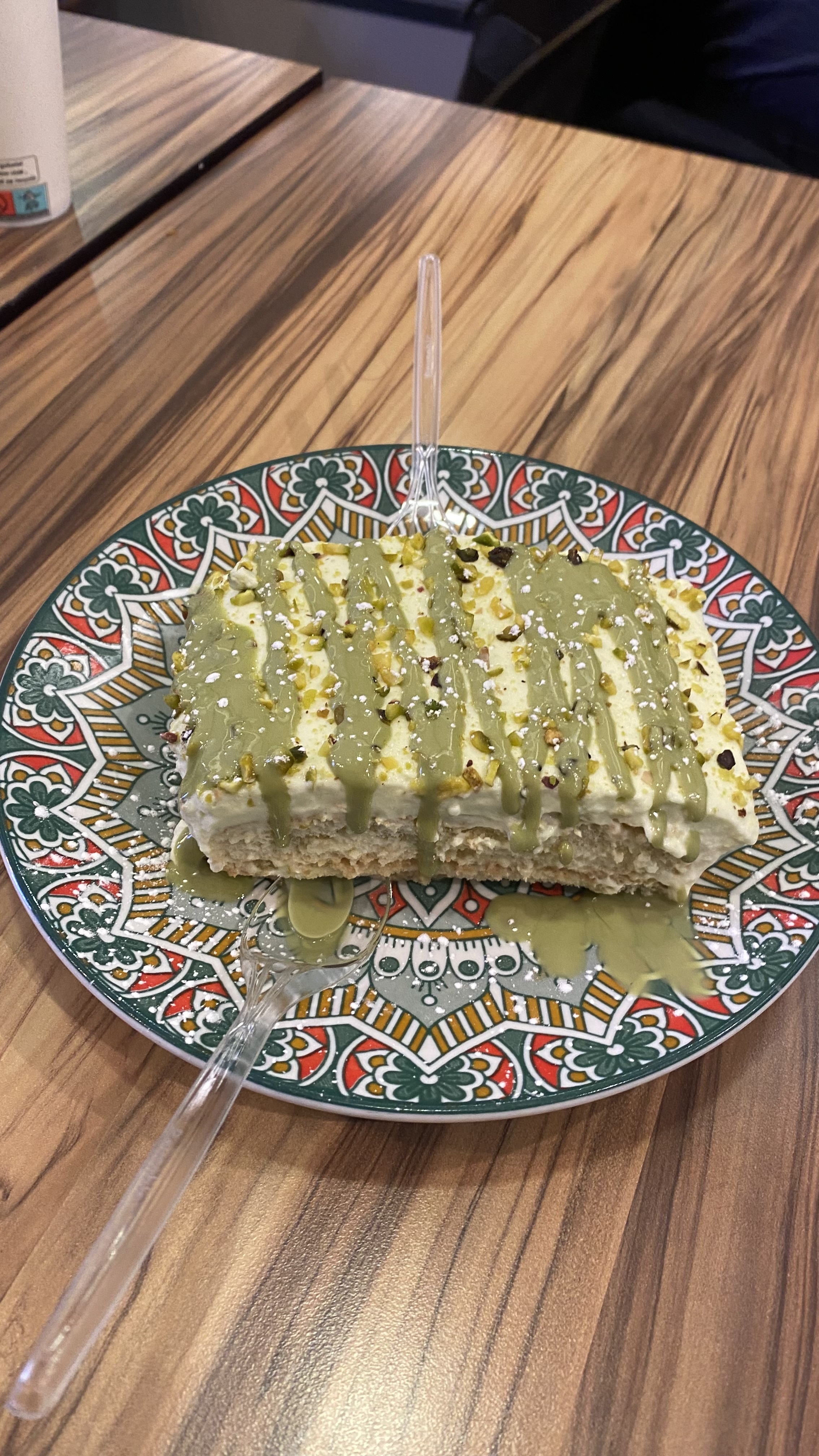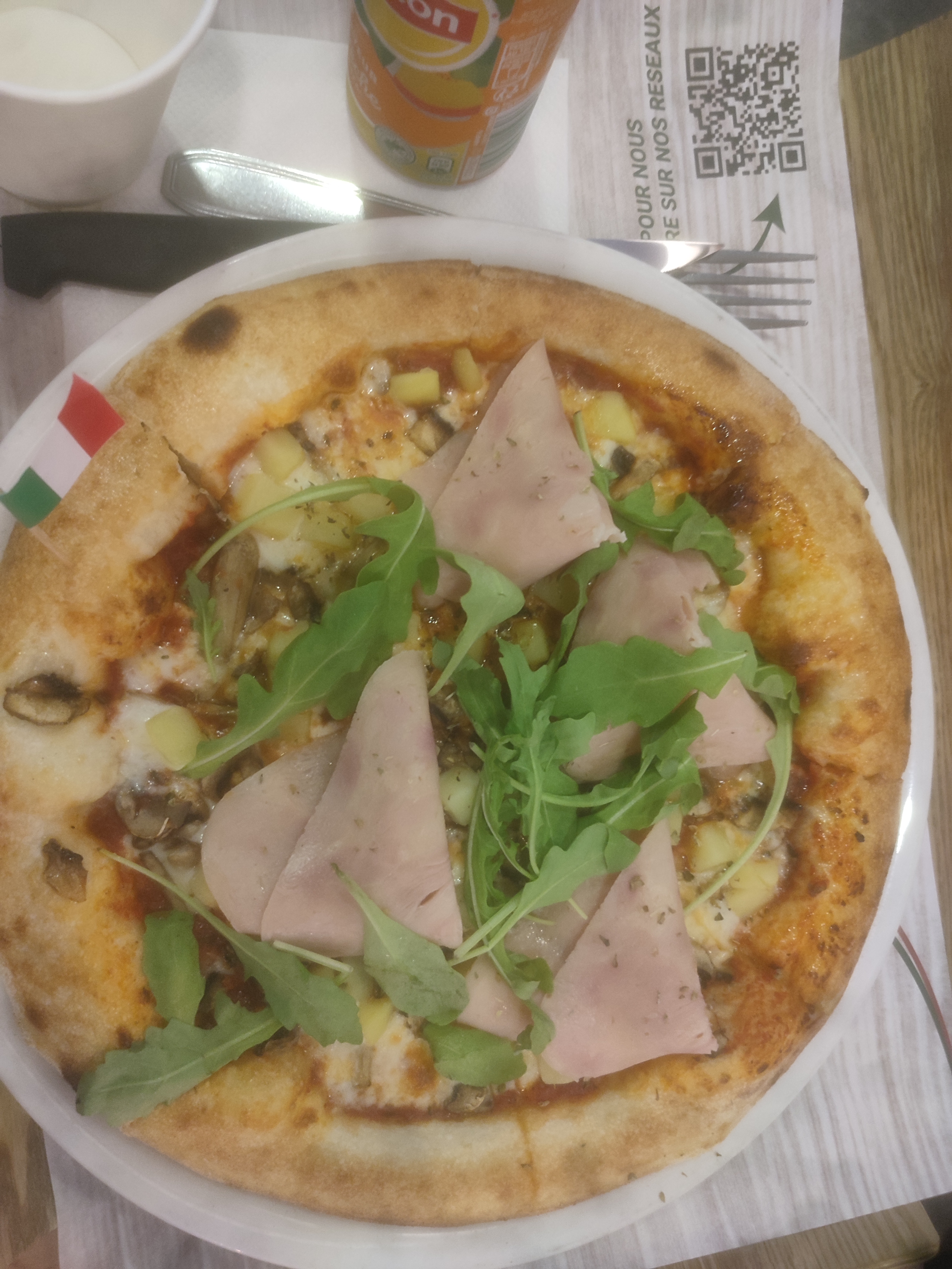 Pizza super bonne et tiramisu pistache delicieux, la limonade citron au top, et merci de ne pas vendre les boissons inapropriées😉