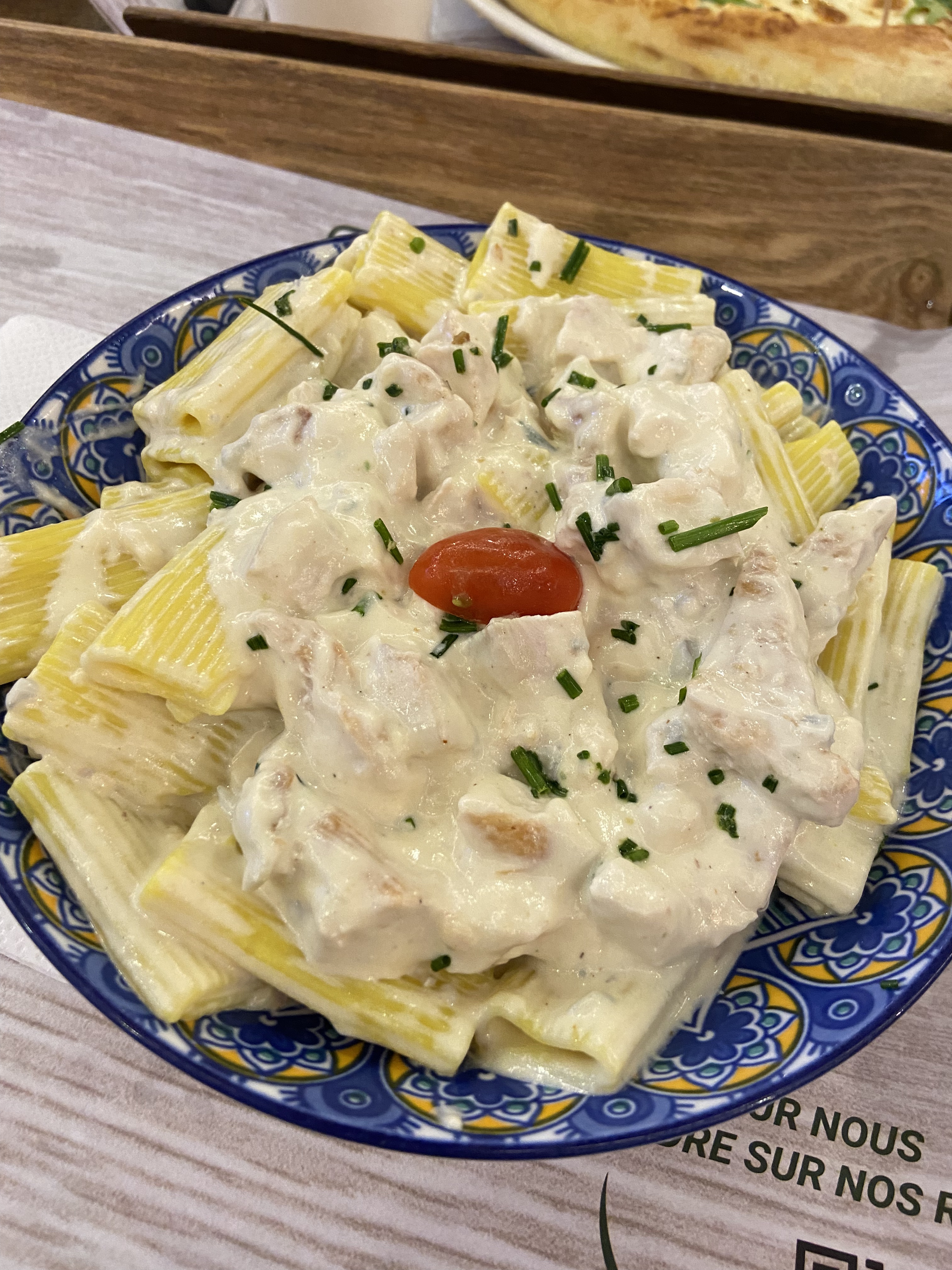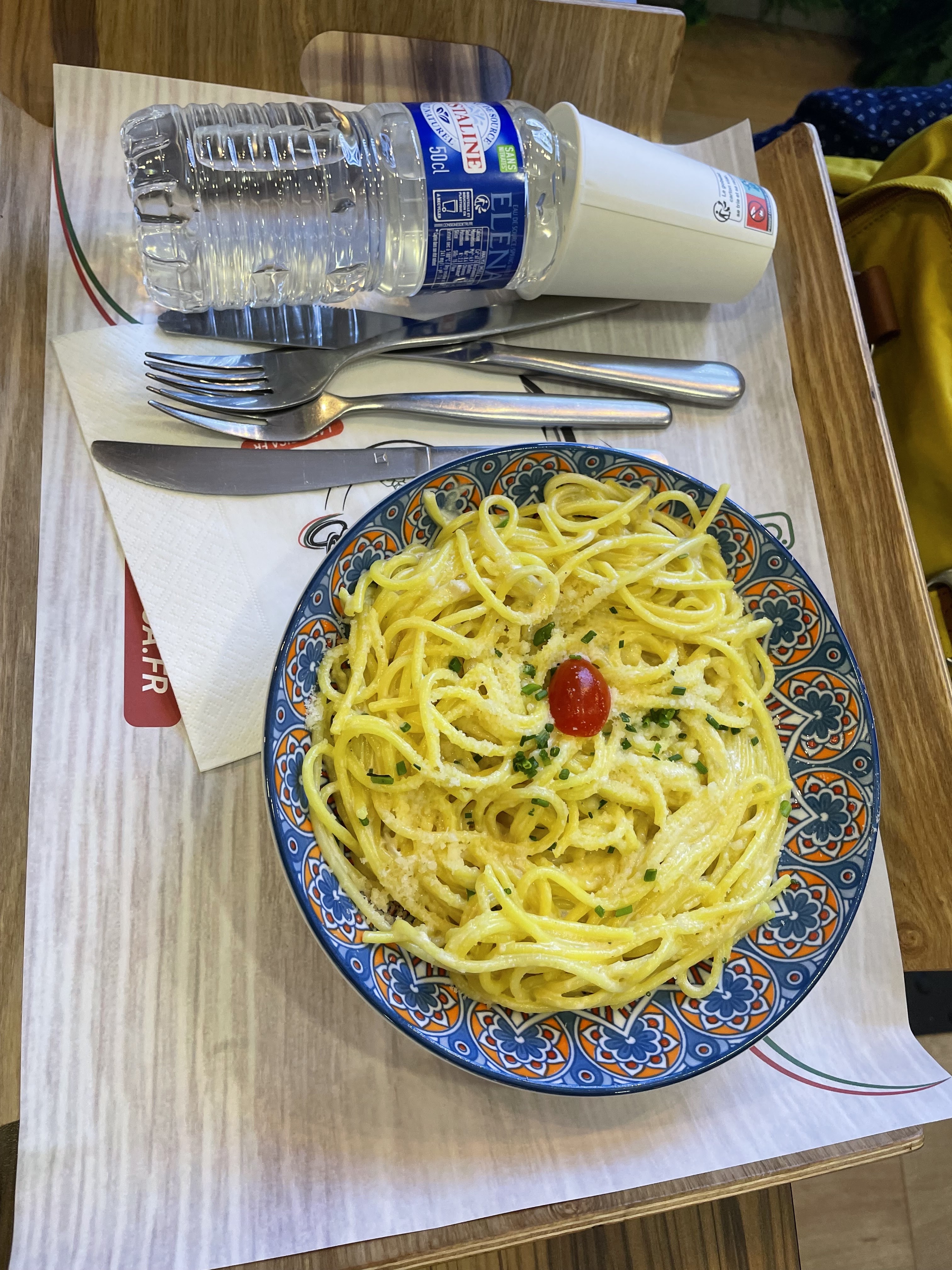 J ai passer commande sur Uber Eat Donc les pâtes carbonara je vous les deconseille ,, même les pantalon de carrefour sont meilleures pas jaune d'œuf comme annoncer Le pain perdu on vous vends du rêve pain perdu avec glace et crème chantilly , en livraison tu reçois le pain perdu avec un peu de caramel mais pour le même prix ! Bref je commanderais plus et je deconseille totalement ce restaurant à la limite de la publicité mensongère ! ET EN PLUS DE TRES MAUVAISE FOIS , on me dis c est pas marqué boule de glace , ni chantilly , ni œuf