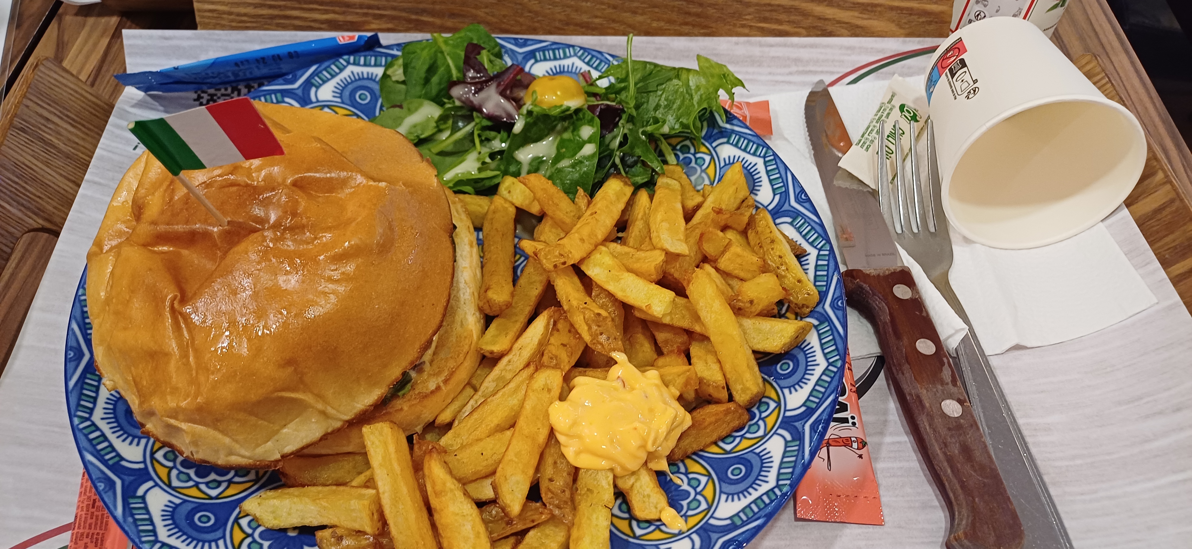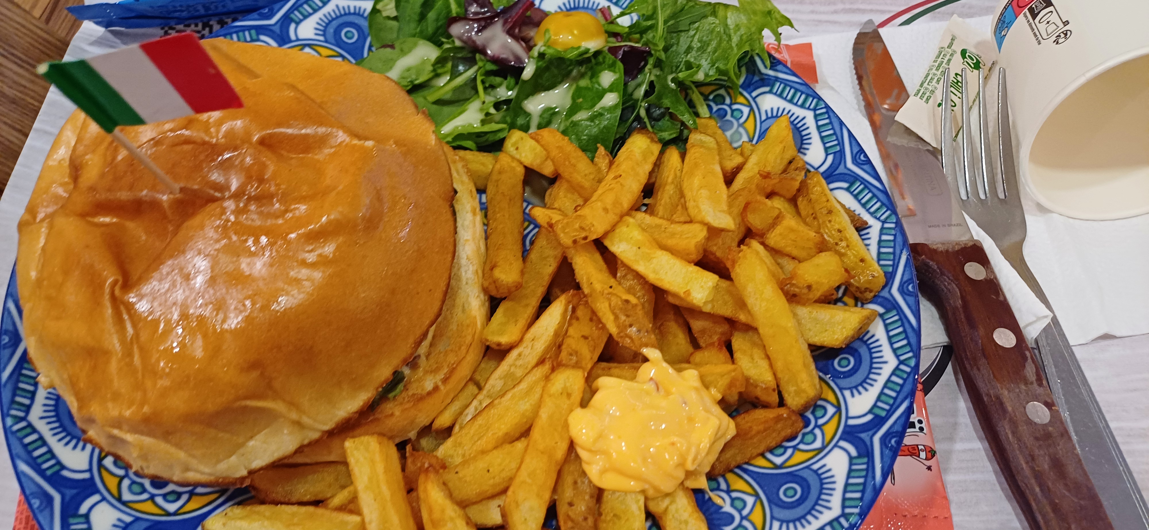 On mange ce que l'on commande, un délice. Les employés sont à l'écoute . Le pain hamburger est fondant . Le petit pain à l'ail servi avec la salade est croquant fondant. Le sourire 😃 de mon fils me fera revenir en famille. De plus, un point clef, la propreté des tables et du lieu en général vous donnent encore plus envie de manger . Bravo et merci.