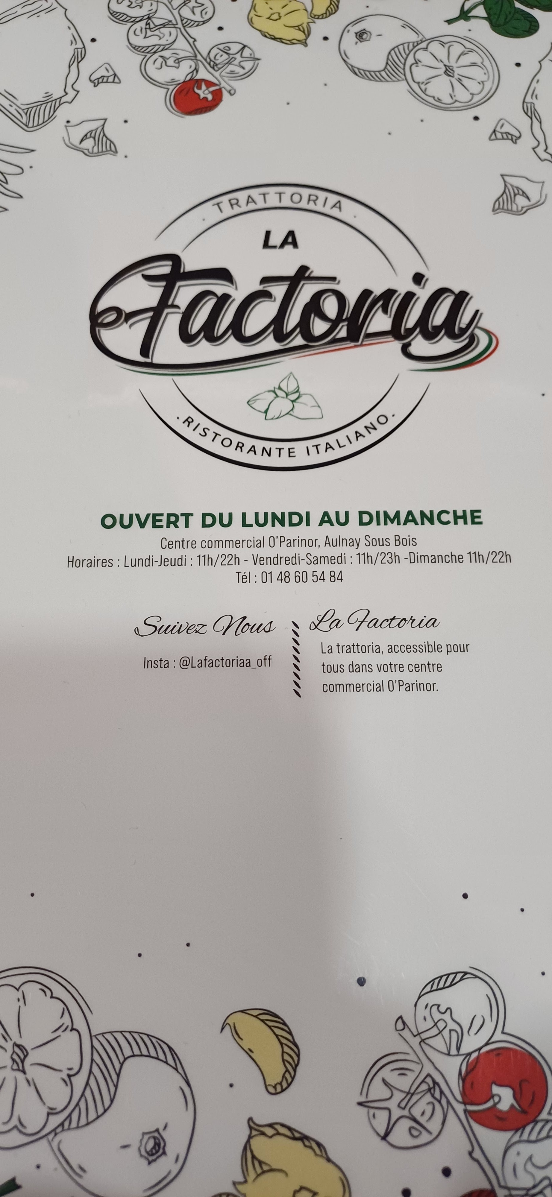 Voici toutes les informations sur le Restaurant italien La Factoria O'Parinor | Restaurant Aulnay-sous-Bois 93 qui ce trouve au Centre Commercial O'Parinor, 93600 Aulnay-sous-Bois (93). Sur cette fiche vous trouverez les photos, l'adresse, les horaires d'ouverture, le numero de téléphone et les avis clients.Vous pouvez églement rédiger un avis si vous le souhaitez en bas de page.