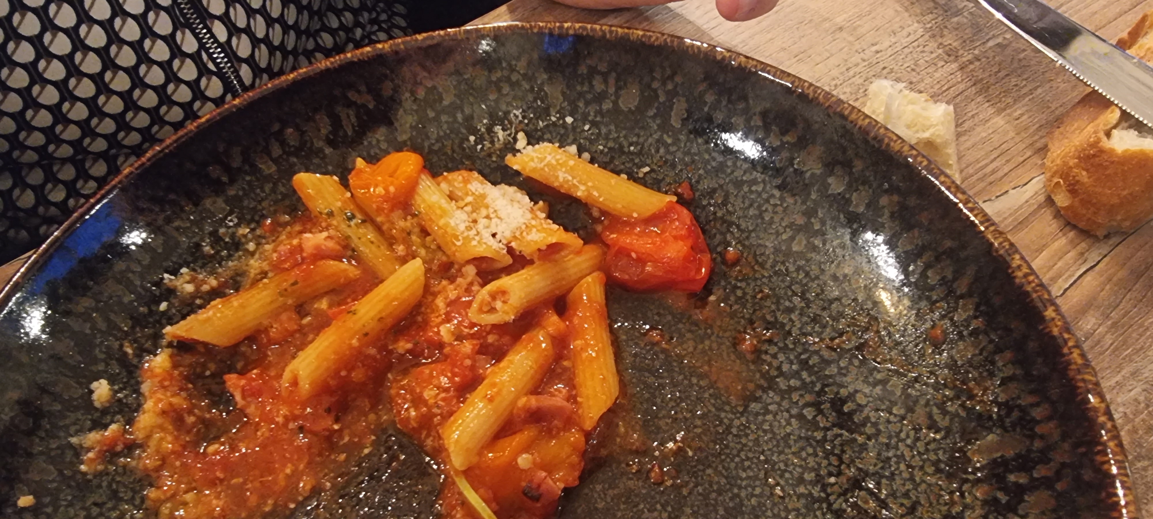 Côté positif : un bon emplacement en centre ville, une décoration sympa, un service rapide et serviable. Par contre, Côté repas, nous restons sur notre faim : quantité réduite (12 rigatoni, c'est peu...), une cuisson trop importante, et, hélas, aucun goût. Même le parmesan n a pas réussi à relever l assiette. On est loin de l excellente cuisine italienne
