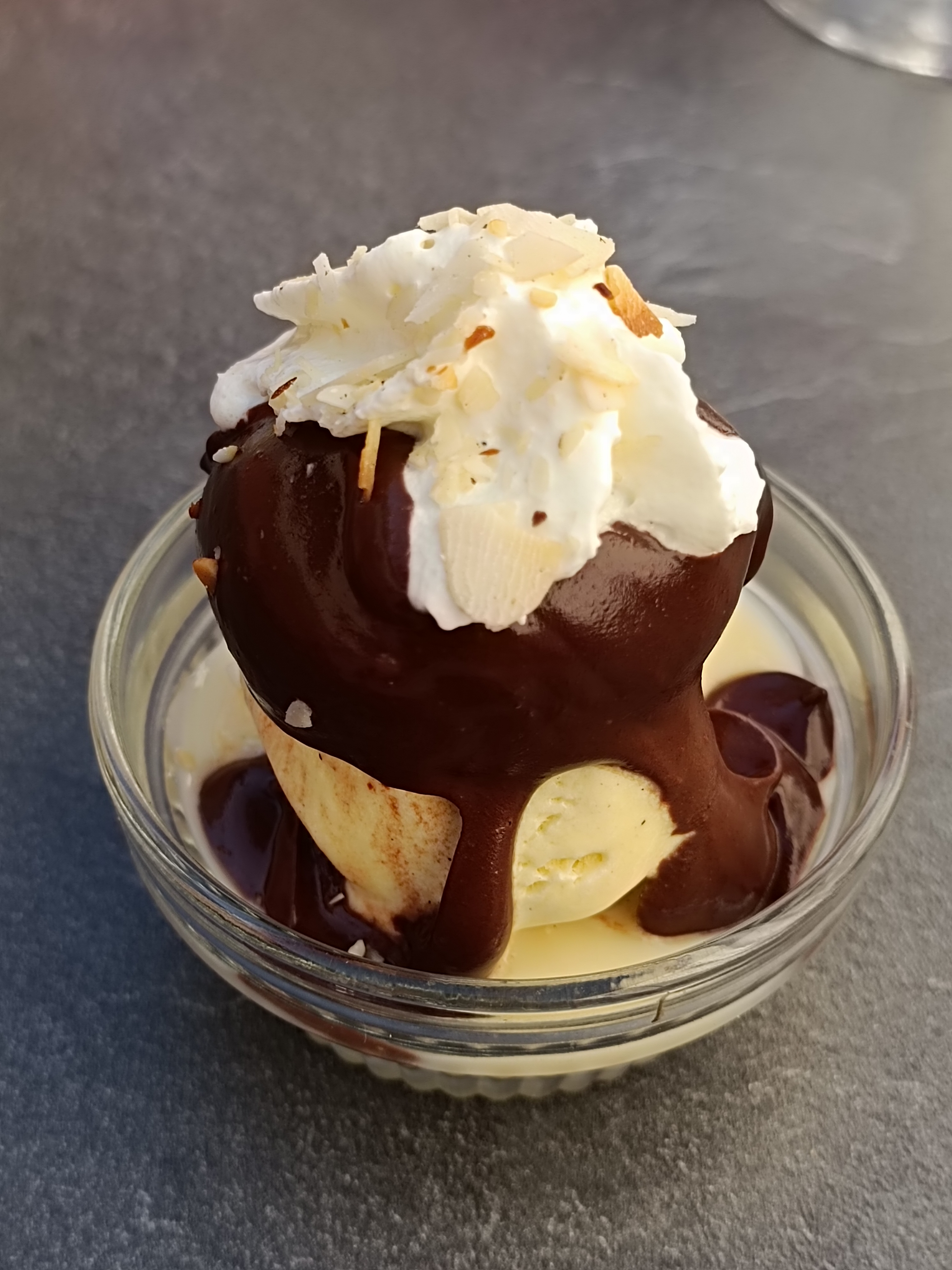 Nous avons pris une assiette appéritif au prix de 15e, chèr pour ce qu'il y'avait. Pizza + pâtes très bonne, copieux. Dessert profiterole copieux /bien. Les tables extérieures qui sont installées à l'arrière de la cuisine ne sont pas confortables quand à la fin du service le nettoyage est fait et que l'on se retrouve les pieds dans l'eau.