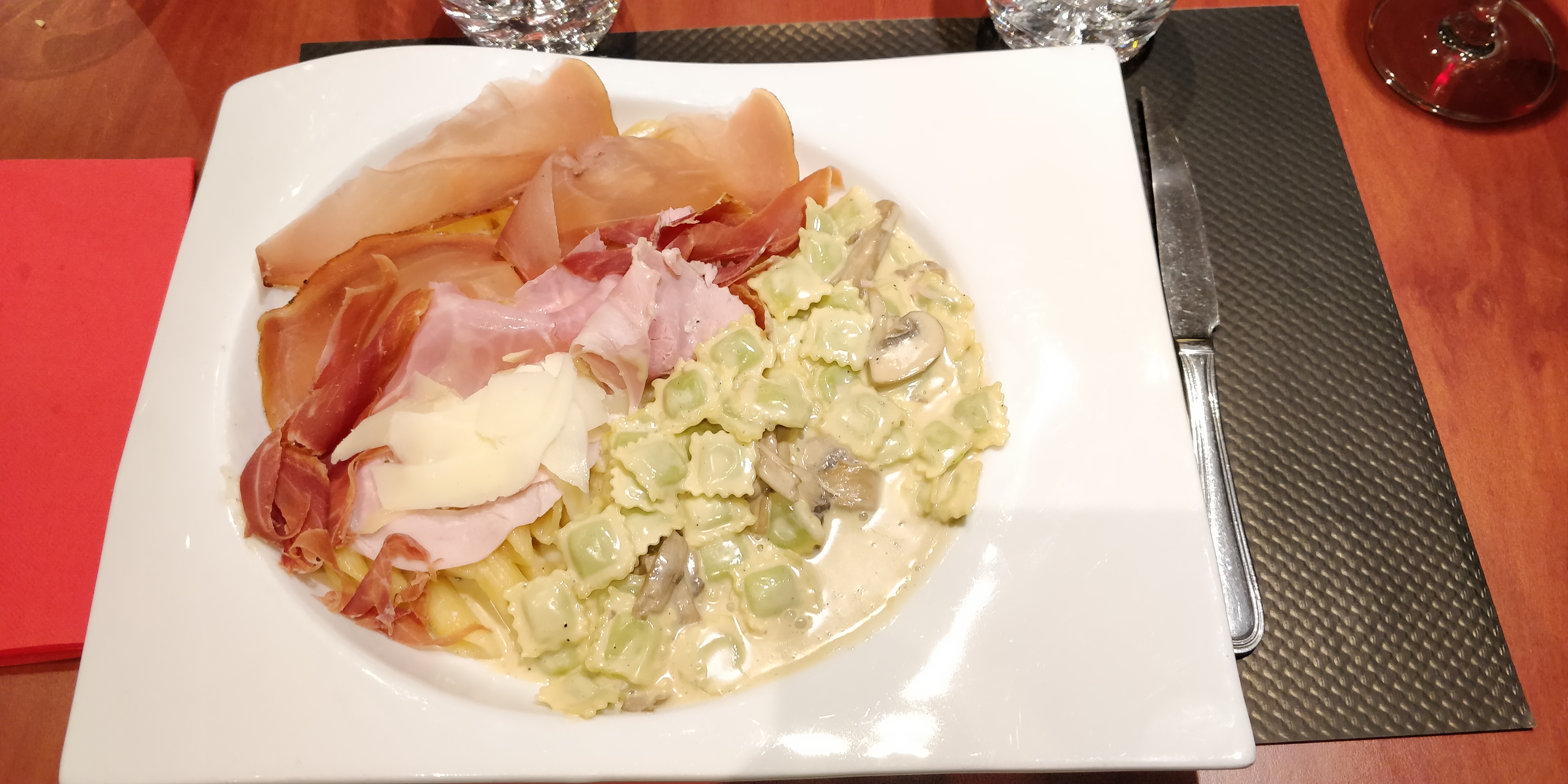 En vacances dans la région, nous sommes tombés par hasard sur ce restaurant Italien ! Excellent ! Et très copieux ! Le risotto aux champignons à la crème de cèpes, un délice, tout comme les pâtes aux trois fromages et trois jambons. Les propriétaires sont des personnes très discrètes et très serviables. Nous avons vraiment passé un bon moment!