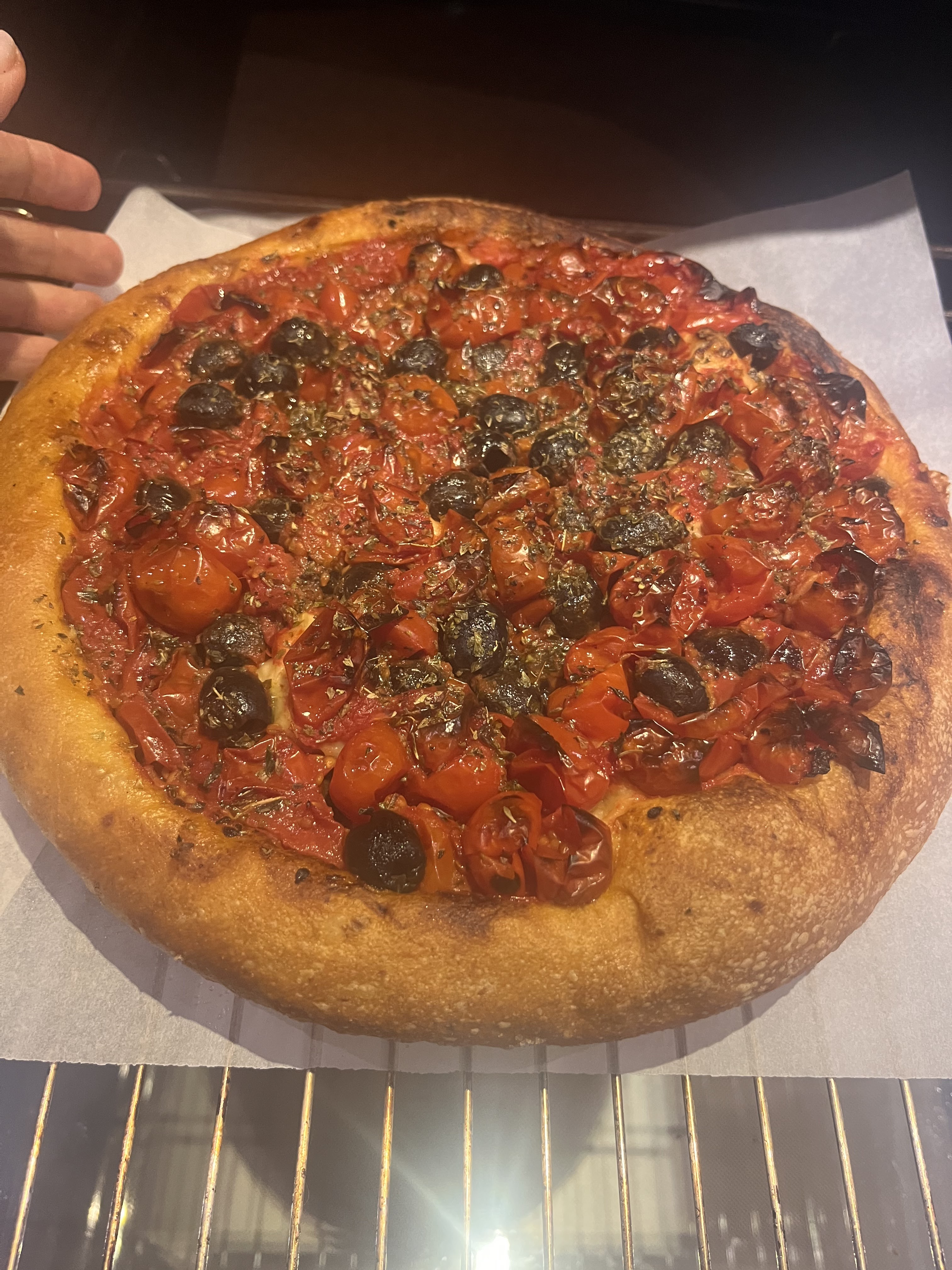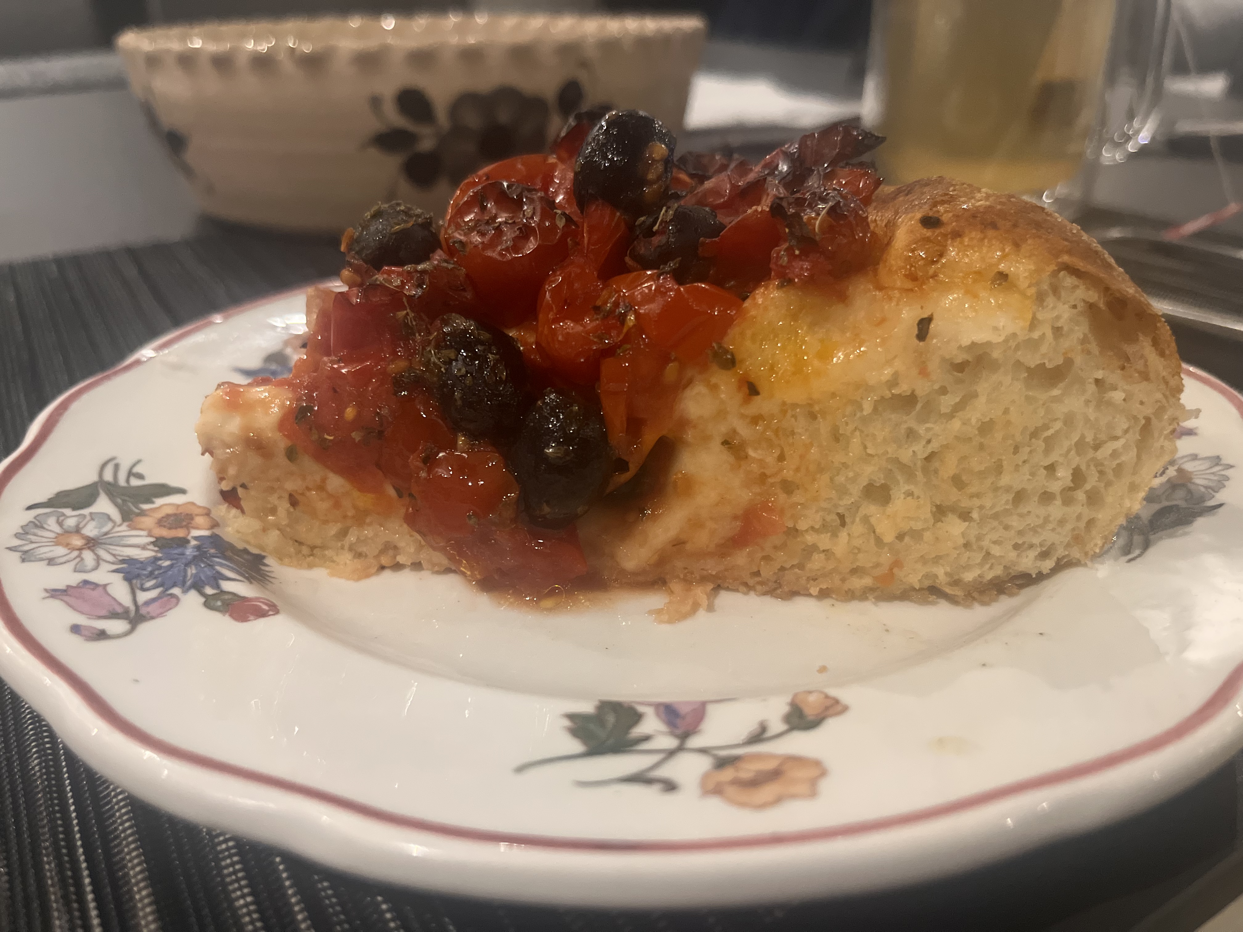 J’ai goûté la focaccia tomates cerises ! Super bon ! La pâte est croustillante et moelleuse et les petites tomates aromatisées au basilic 🌿 hummmmm ! Je me suis régalée.
