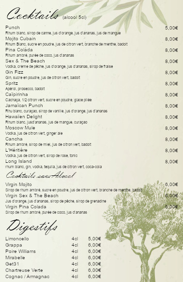 J'ai adoré mon expérience a L'olivier ! La nourriture était délicieuse, le service impeccable, et l'ambiance charmante. Je le recommande vivement !