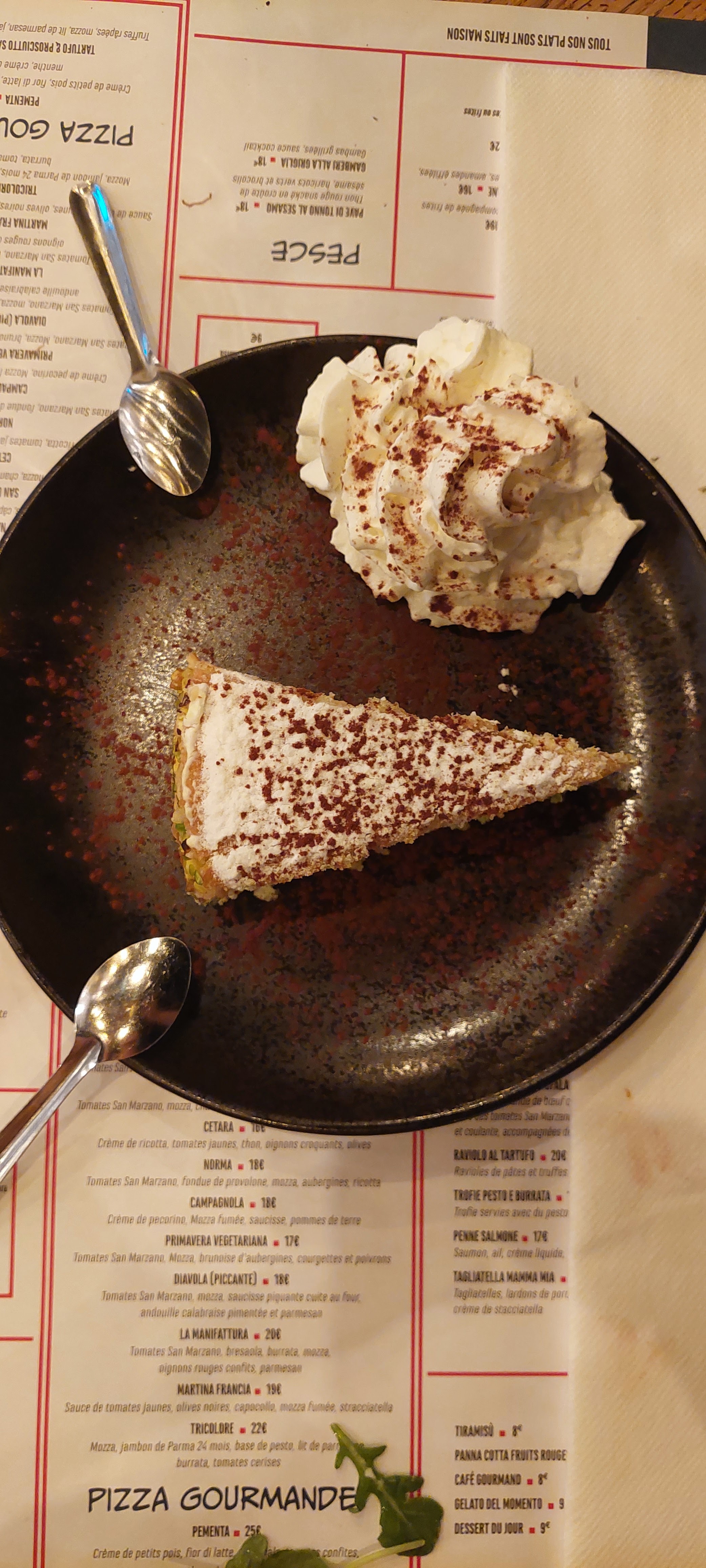 La pizza était excellente, hélas le dessert beaucoup moins goûteux, et c’est un baba au limoncello, pas au rhum, il serait sympa de le préciser😅