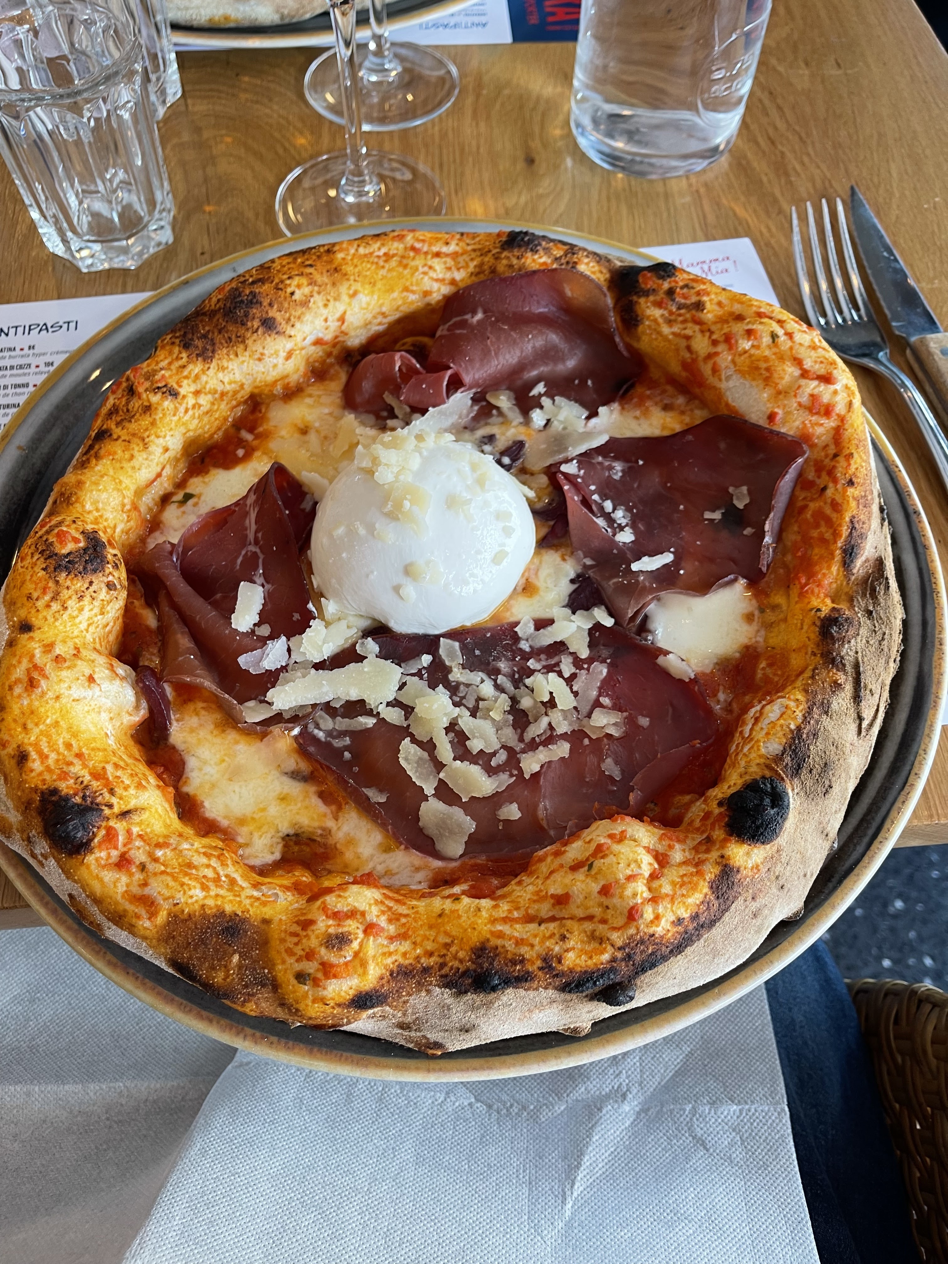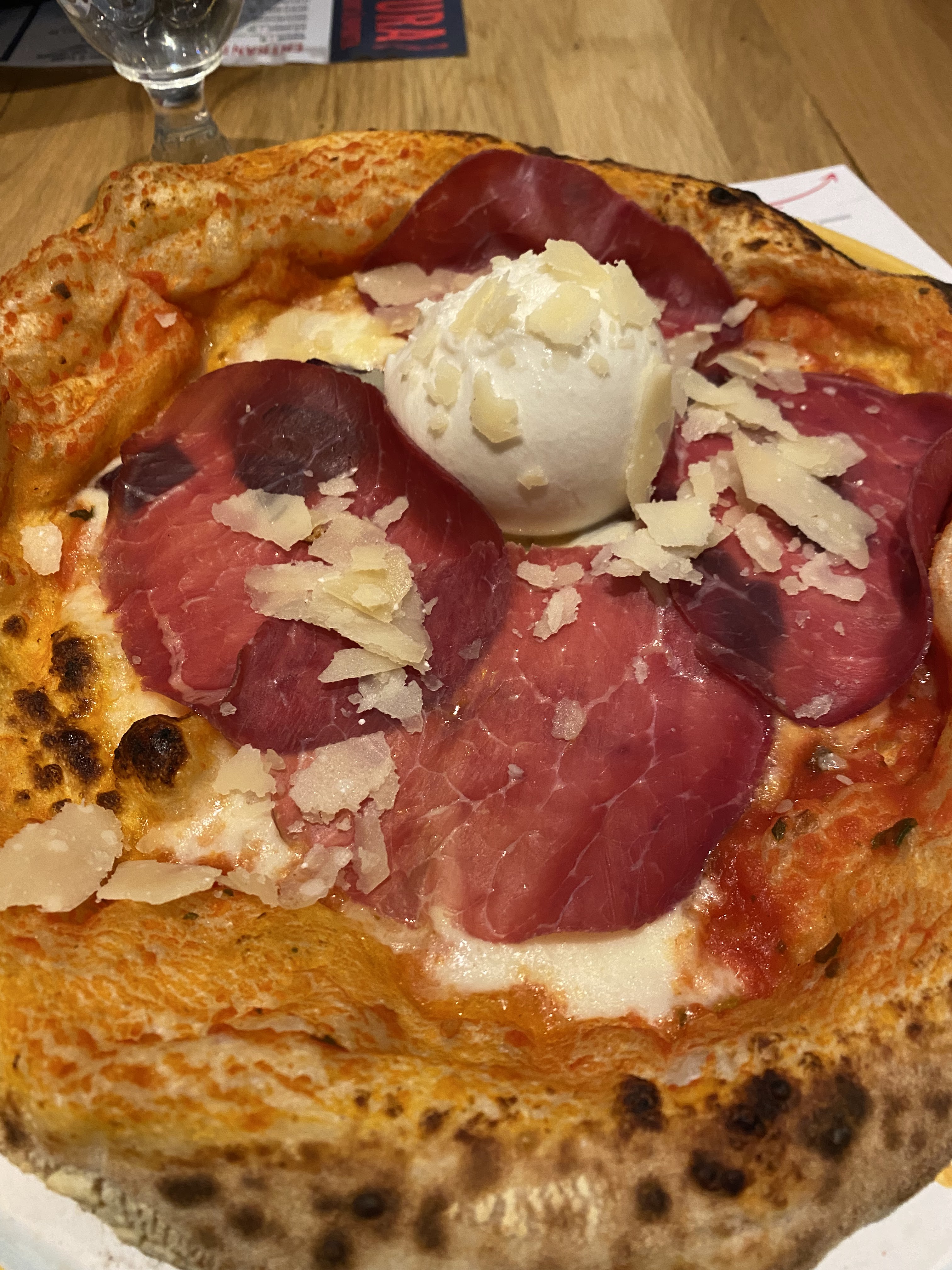 Super pizza. Pâte fine et produits de qualité. Je recommande vivement la Tartufa. Une tuerie avec sa burrata ! Je ne mets que 4 étoiles car le service pourrait être amélioré. Nous avons dû demander plusieurs fois de l’eau et la serveuse s’est trompée pour une pizza.