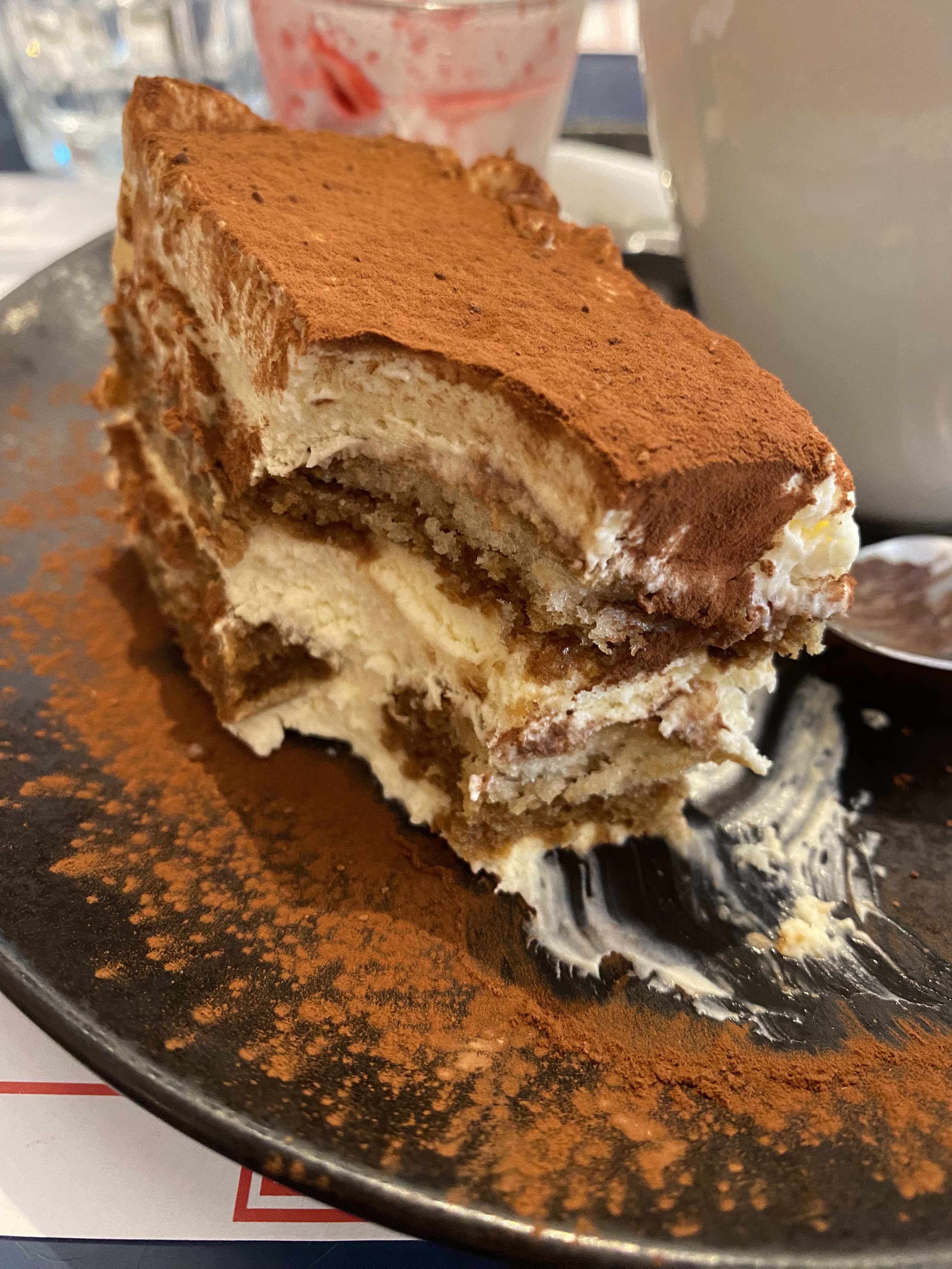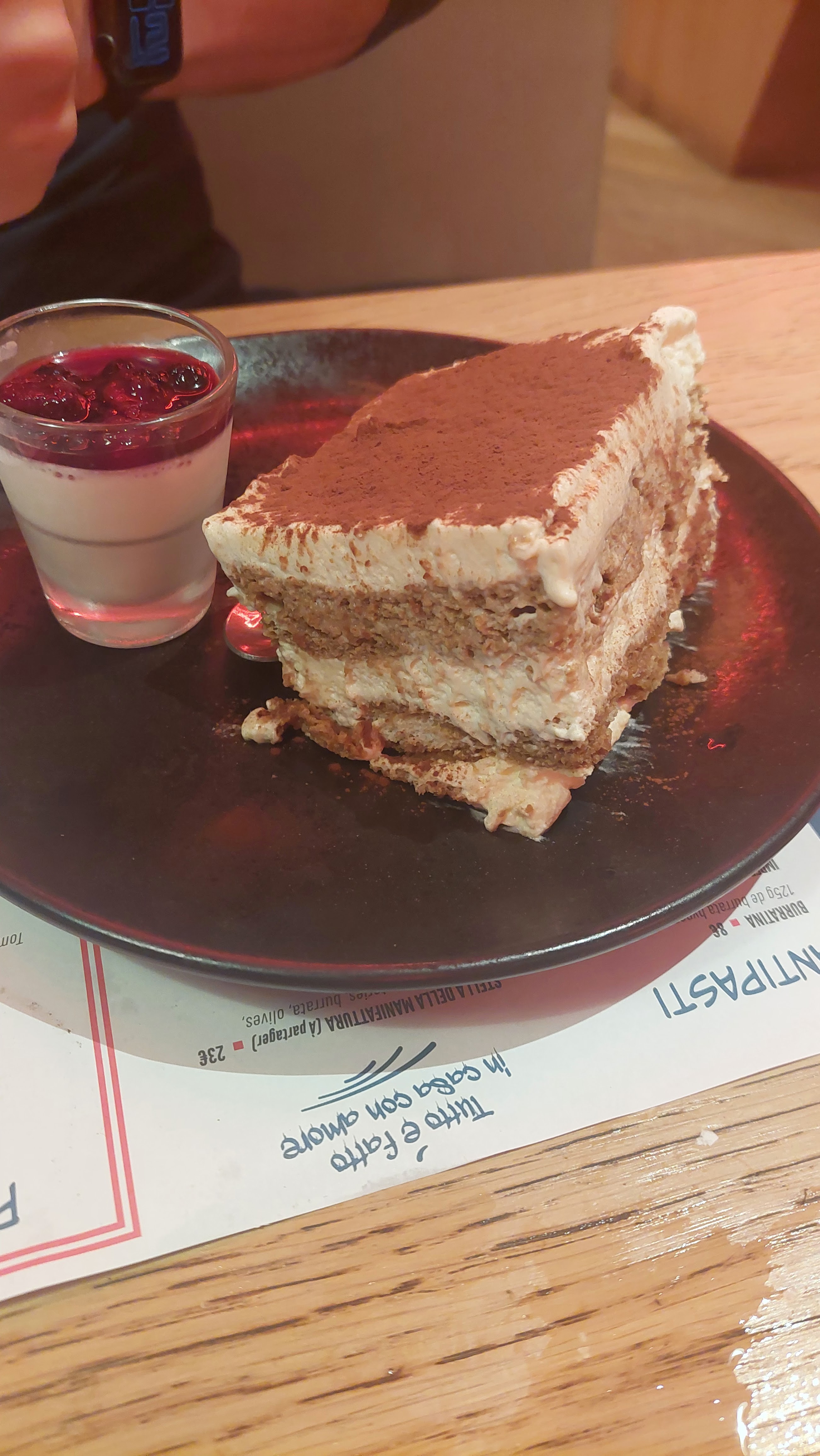 Très bonne pizza marguerite (sauf un peu cramée), tiramisu parfait et le service bien mais peut mieux faire.