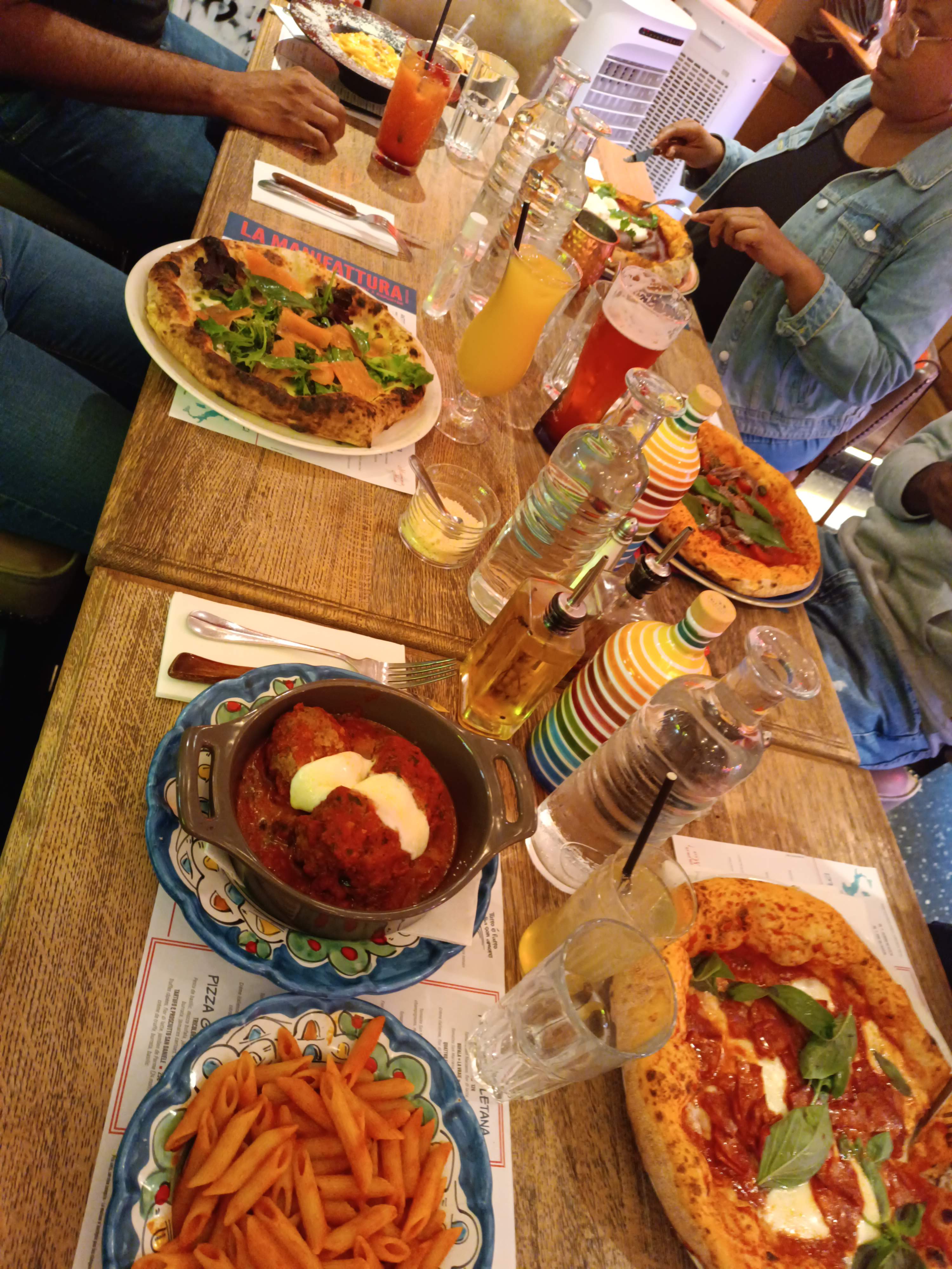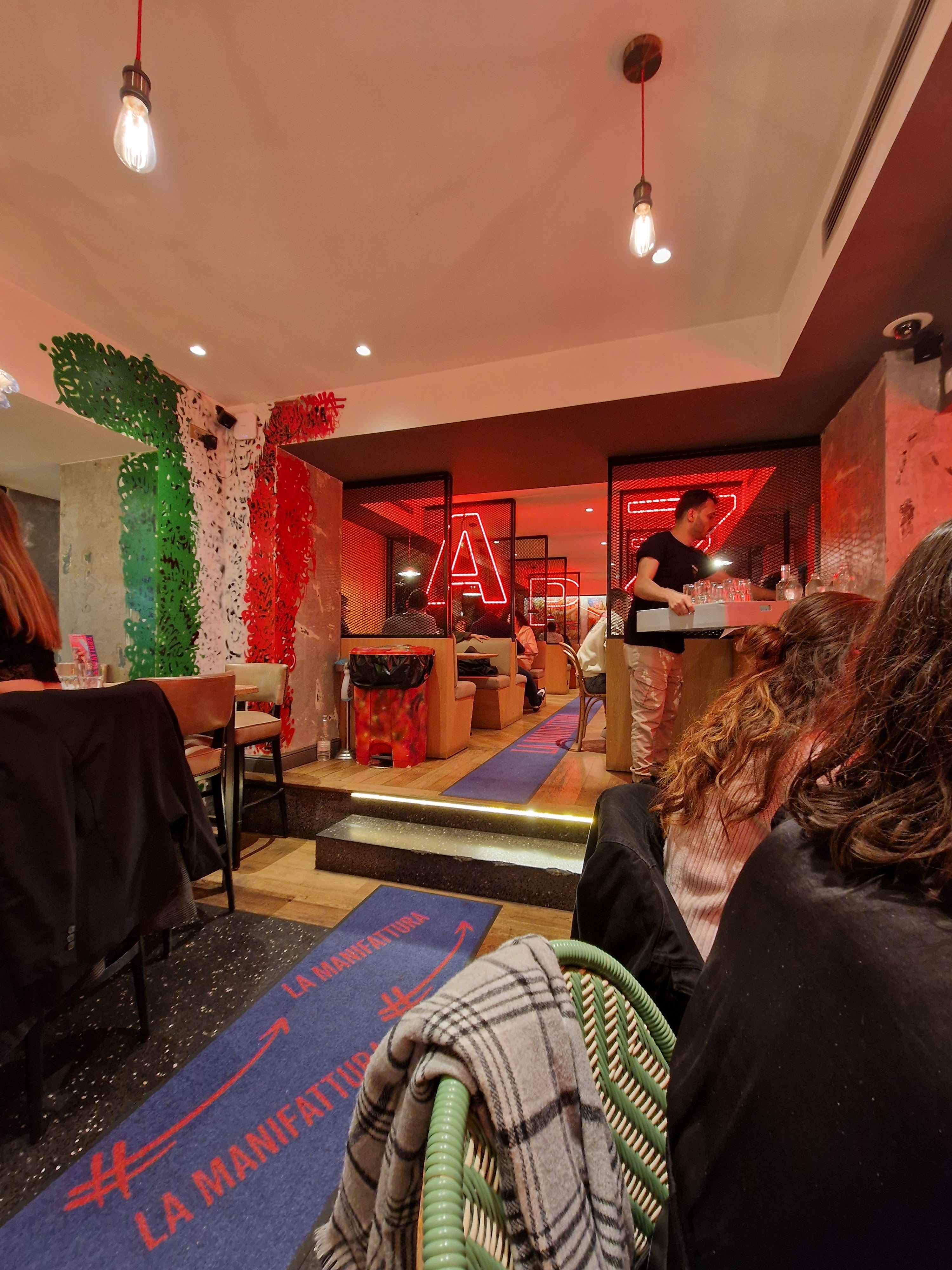 La pizza délicieuse, une ambiance festive et conviviale, et un personnel chaleureux, surtout Louisa qui fait un peu tout (elle est super) et Luca le barman. On entend parler italien partout, je trouve ça très sympa et authentique. Grazie pour un très bon moment ici ! Par contre je vous conseille de faire une reservation les week-ends, il y a beaucoup de monde et sans res il faut attendre.