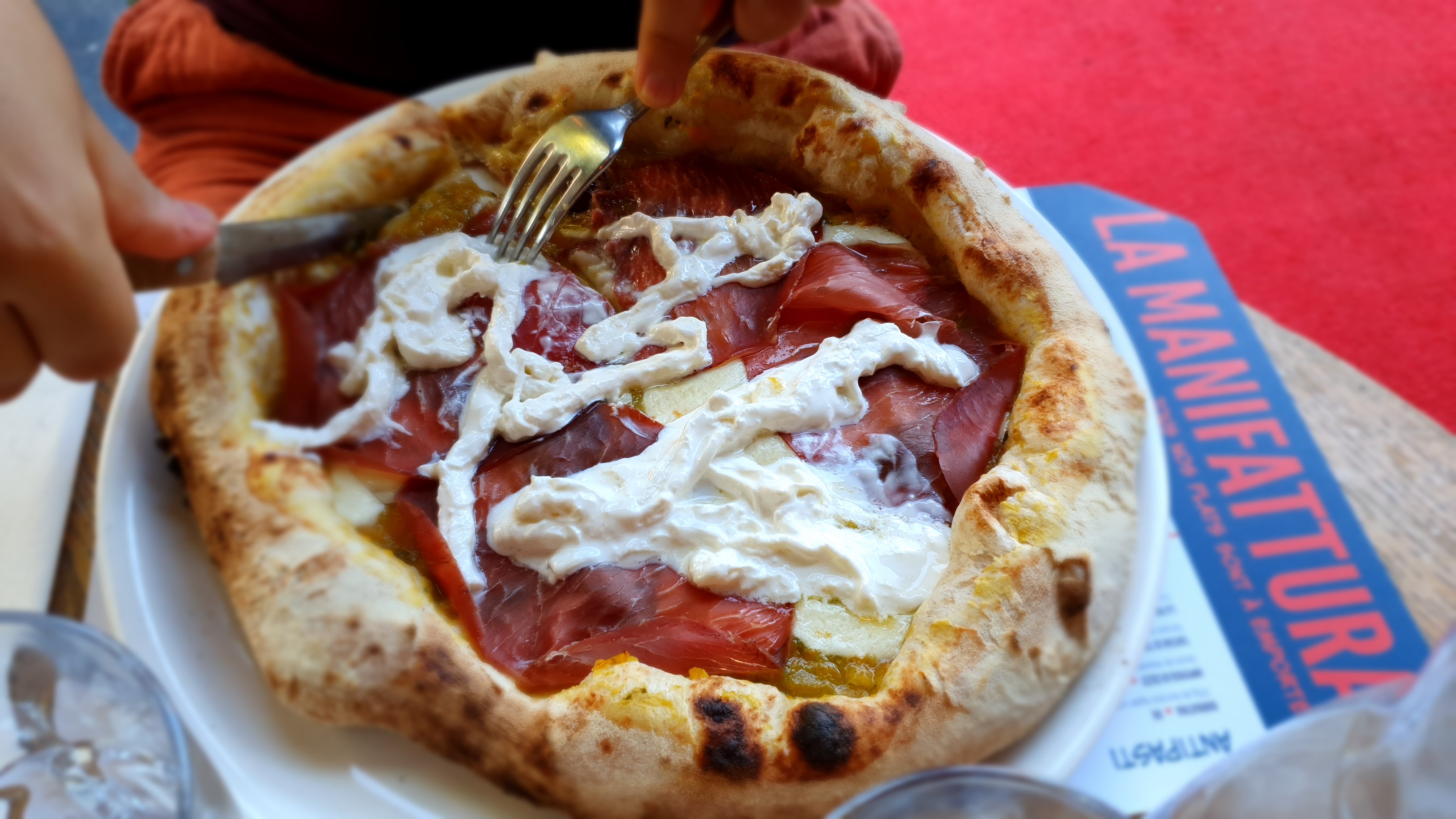 Expérience assez mitigée à La Maniffattura. Les pizzas sont excellentes (pâte bien levée et fine) mais le service assez moyen (la serveuse était désagréable !)