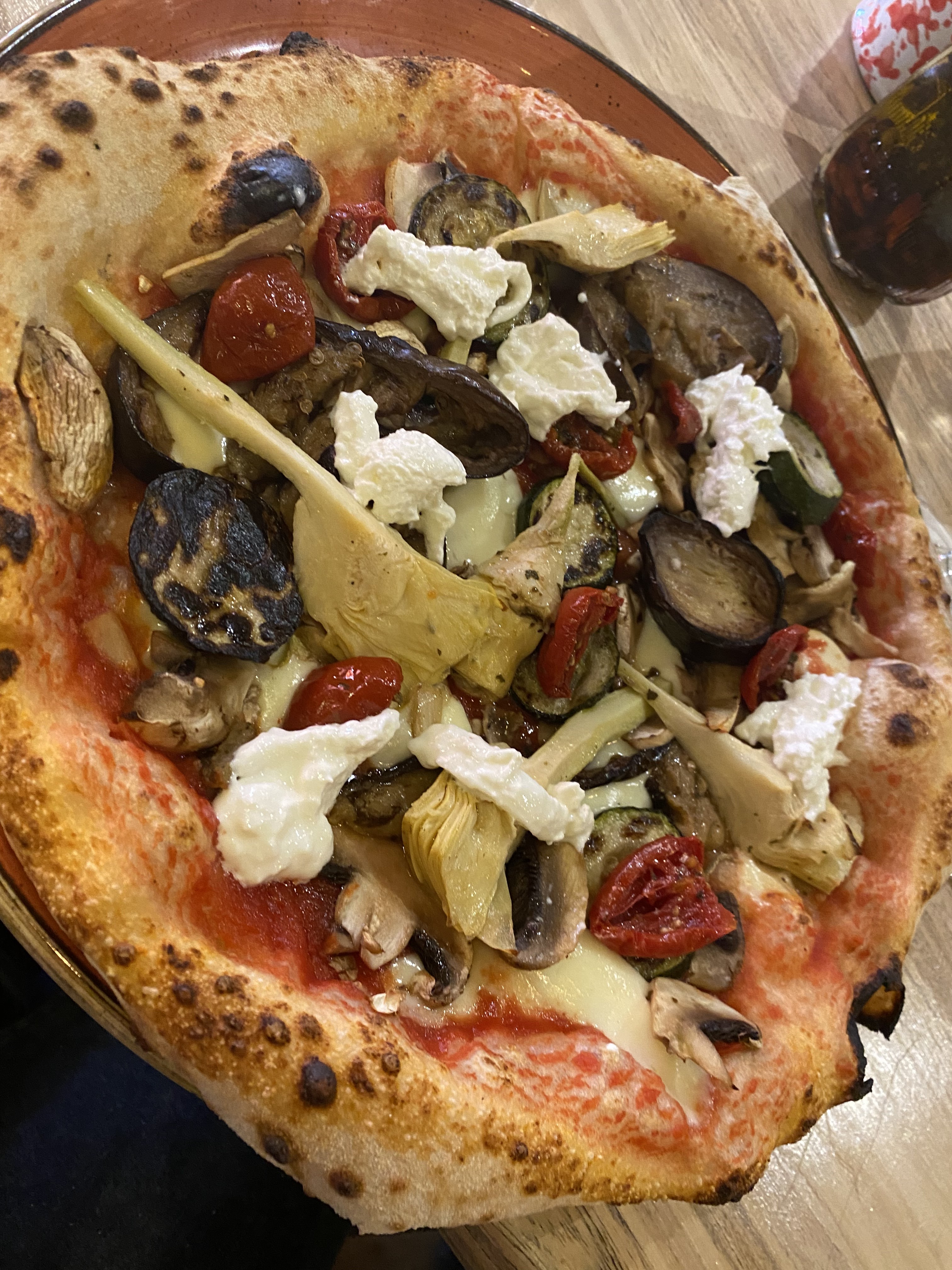 Cadre très sympa, pâte à pizza très bonne. En revanche les plats ne sont pas à là hauteur des prix (pizza entre 15 et 22€) avec très peu de pizza base tomate… Le pichet de vin blanc a 23€ c’est de l’abus. C’est dommage car la promesse était belle. PS : en plein Covid pas de masque pour les serveurs… un bémol de plus…