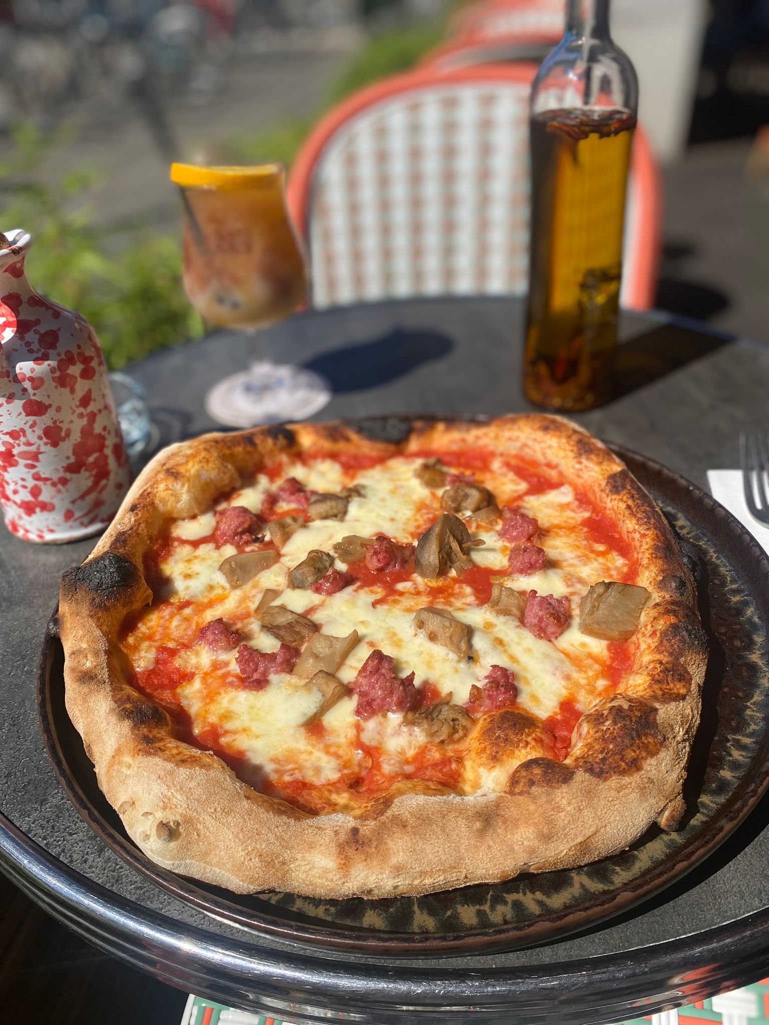 Points positifs : le cadre, assurément charmant ; le service ; l’ambiance musicale très agréable. Points négatifs : des tarifs malheureusement trop élevé, quitte à être un brin prohibitifs (10,5€ pour un spritz, 12€ la pizza Margherita!). En conclusion, un restaurant agréable mais le rapport qualité-prix est tellement mauvais qu’il m’est impossible de mettre une bonne note.