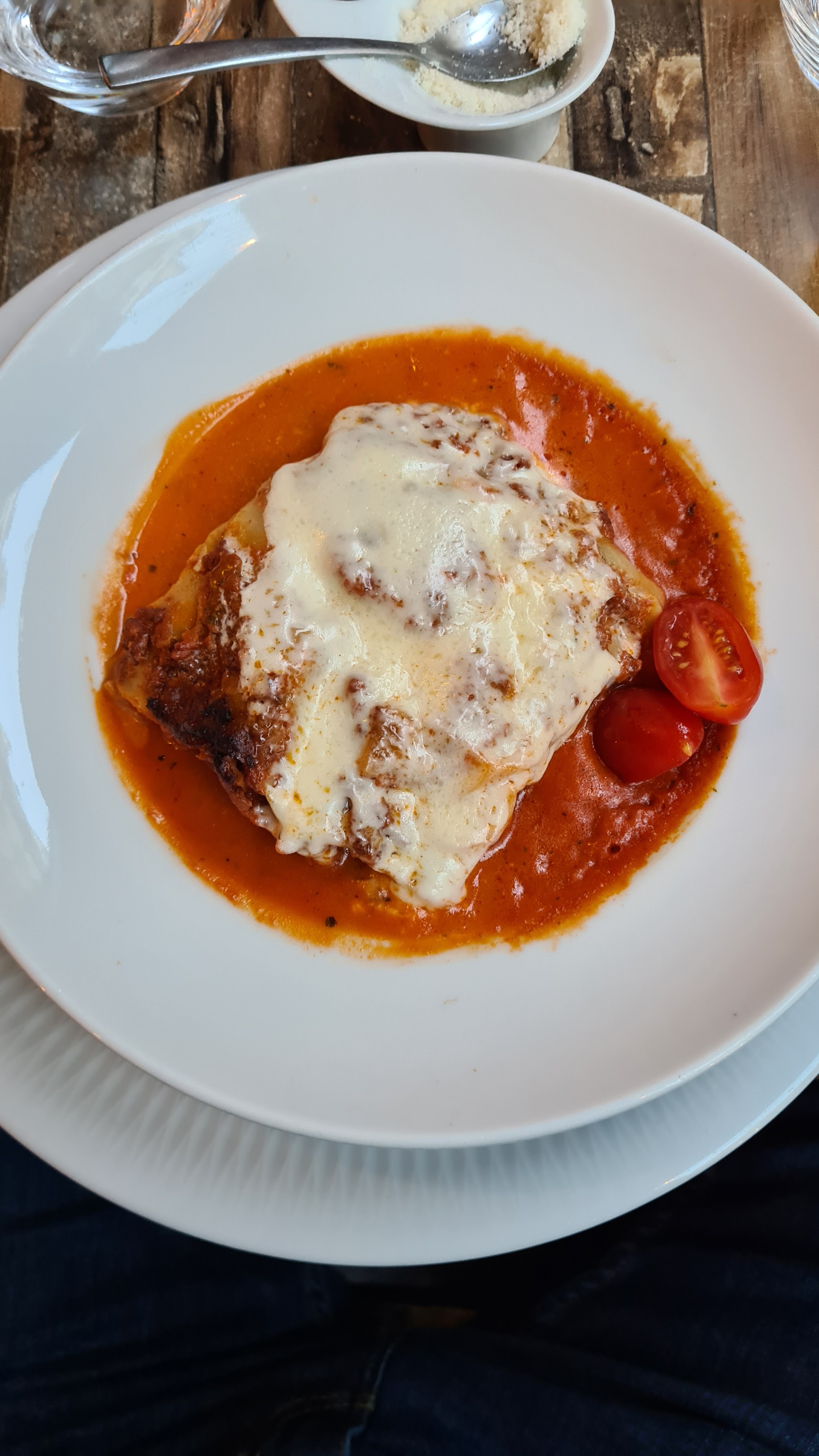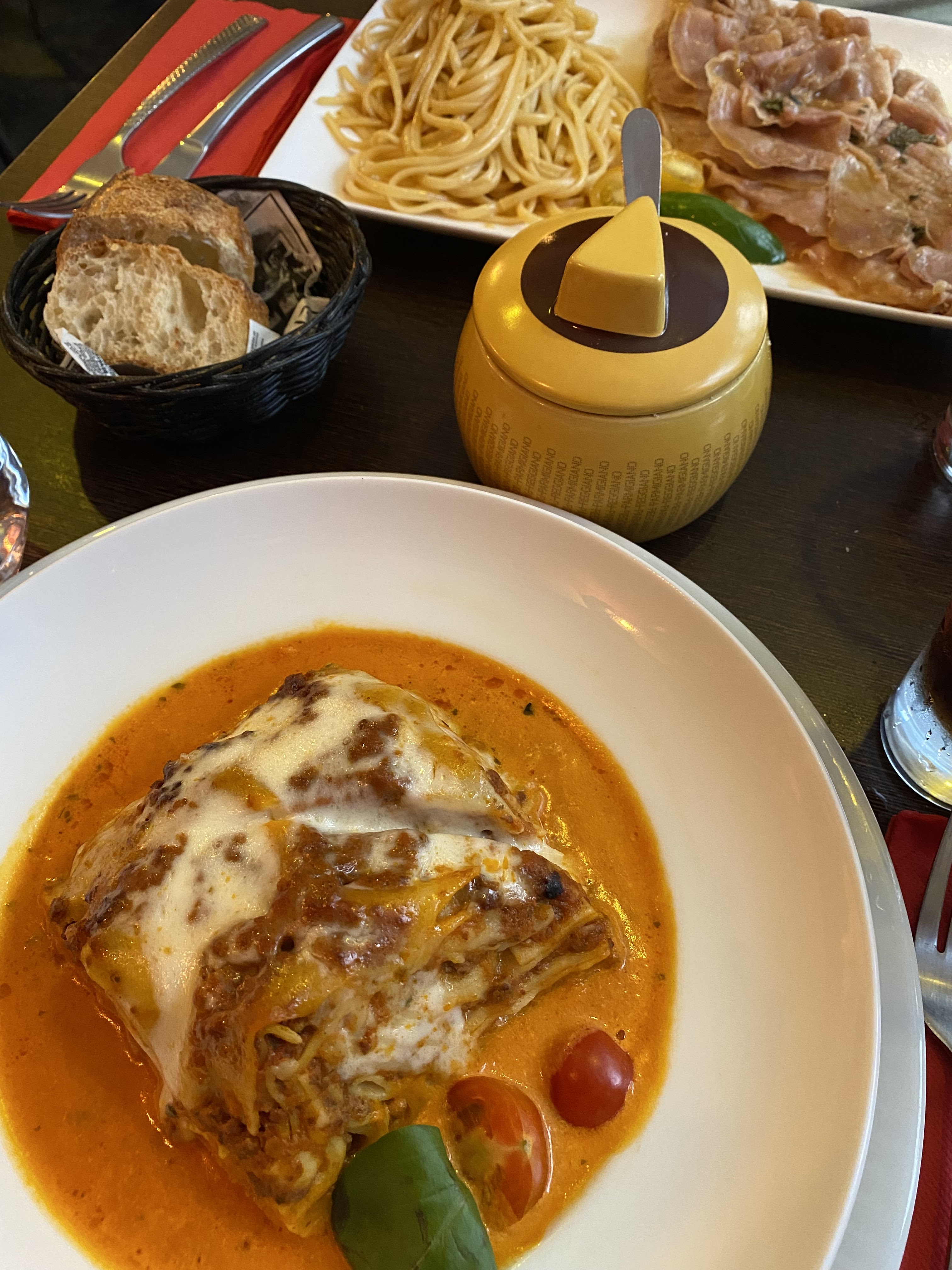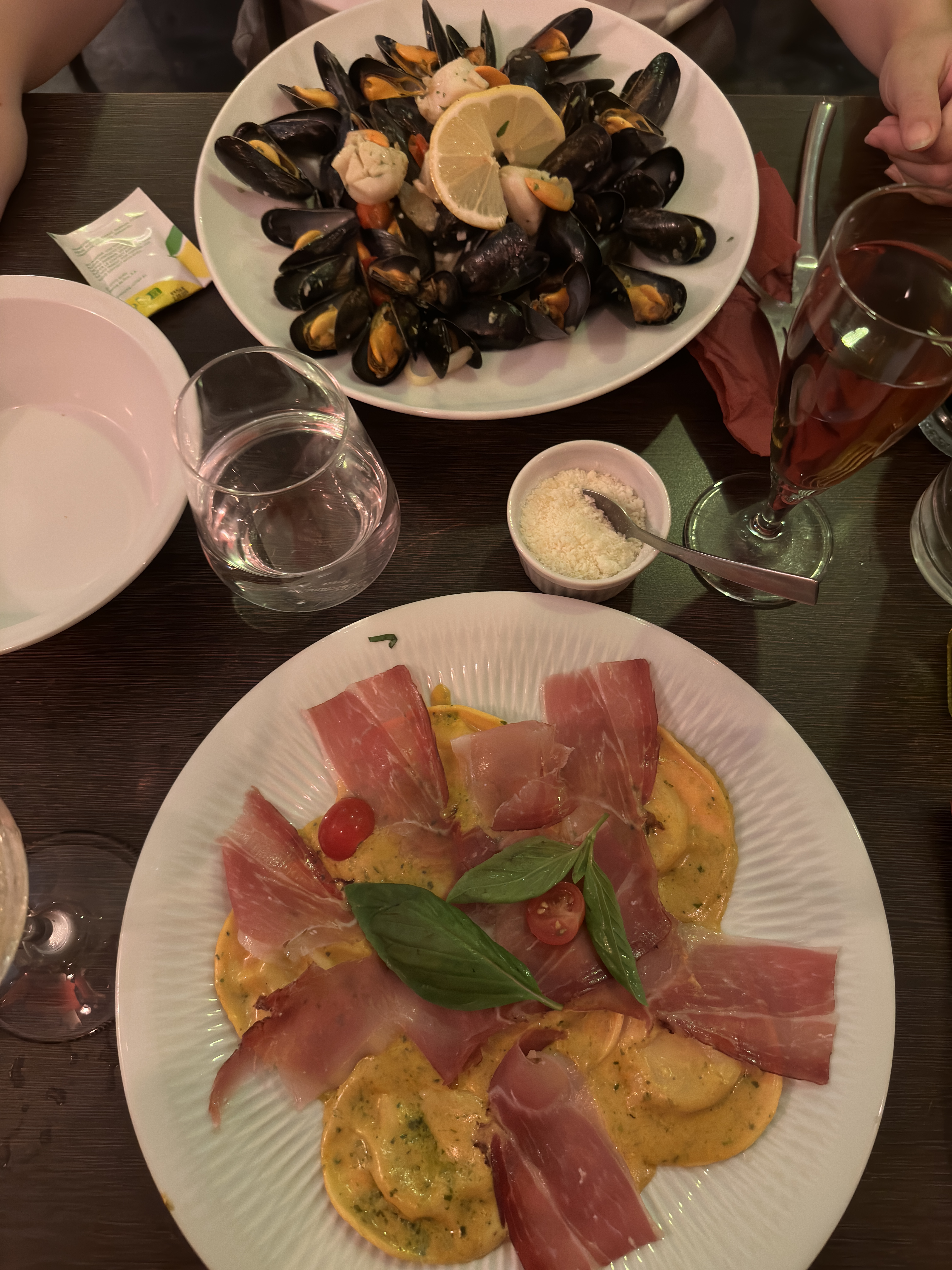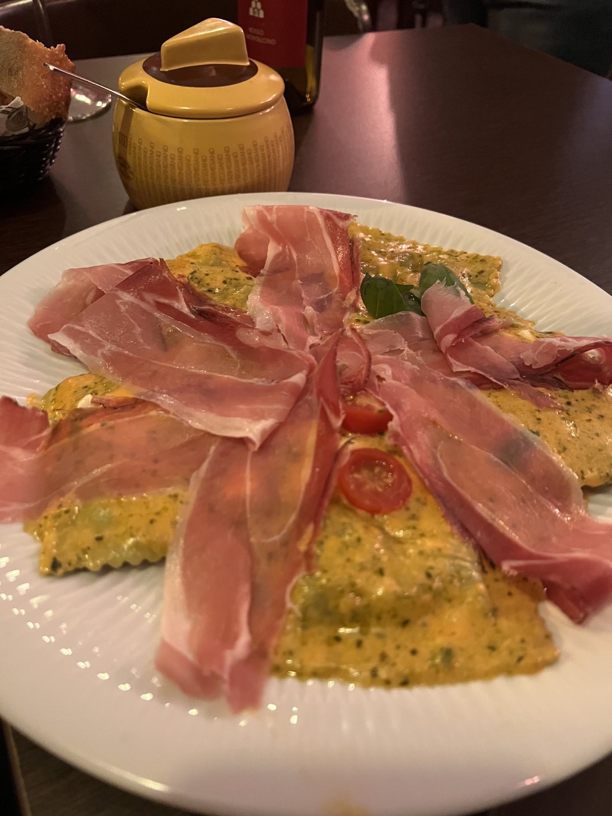 Erreur sur la commande. Un Osso Buco qui était devenu normand avec crème et champignons. Des ravioli médiocres avec un jambon tranché par dessus. C'est pourtant plein... Pas d'italiens