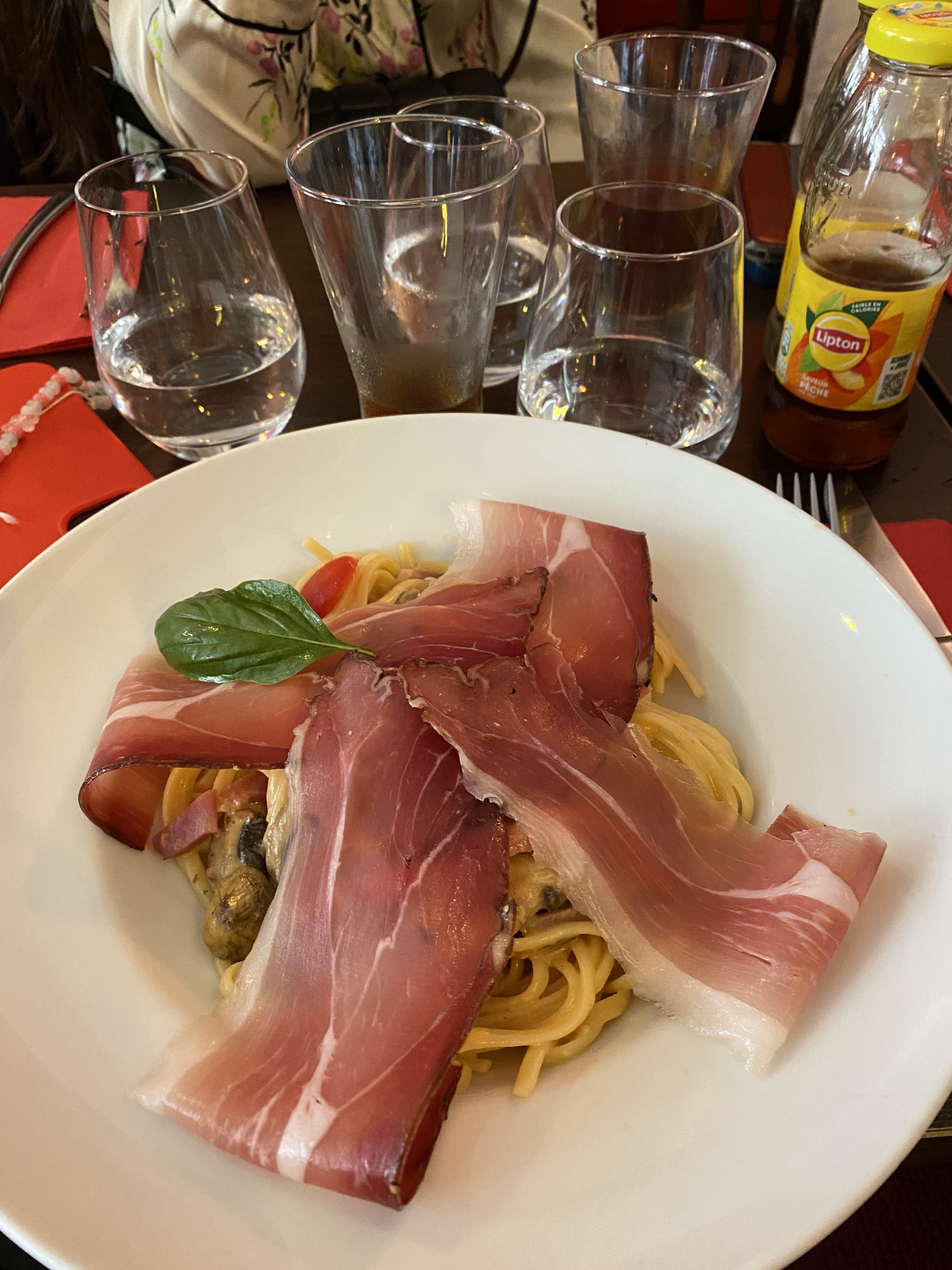 Super ! Très bonnes pâtes (ou gnochis ou raviolis) servies bien chaudes. Copieux. Prix corrects. Serveur très sympathique. A souligner : nous voulions commander un thé à boire en déjeunant mais il n'y avait que du thé noir, ce qui ne nous convenait pas. Nous avons donc abandonné l'idée du thé. Face à ce désagrément, il nous a été servi une très belle assiette de charcuterie italienne (4 tranches par personne). Geste super sympa !! Je recommande.