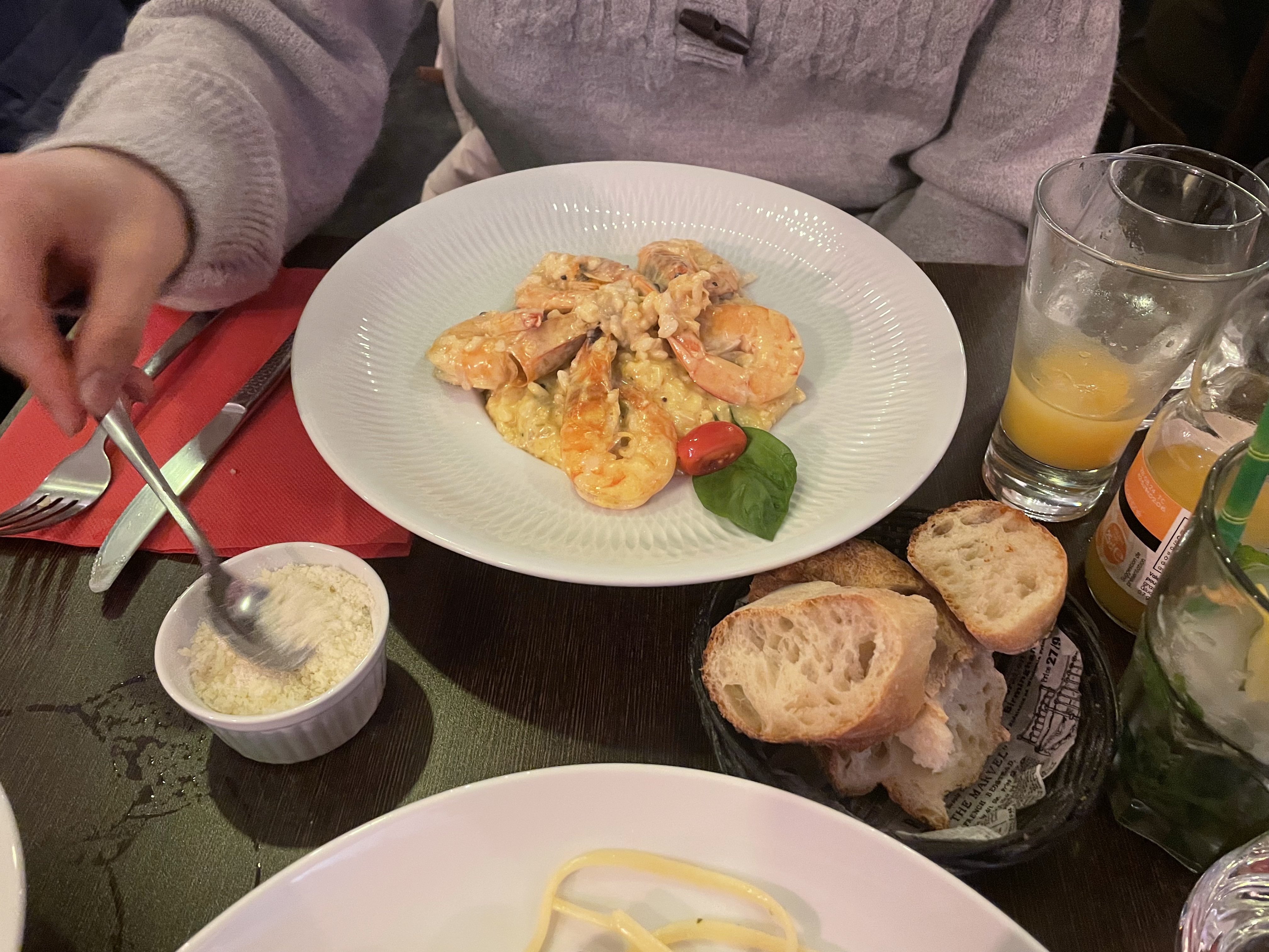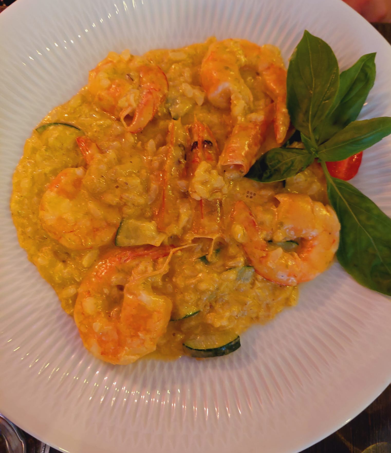 Restaurant chaleureux, équipe conviviale. On a très bien mangé. Mon conjoint a testé le risotto aux gambas et moi les pâtes à la truffe blanche speck et sauce aux cèpes. Un délice et merci pour la petite chansonnette du patron!