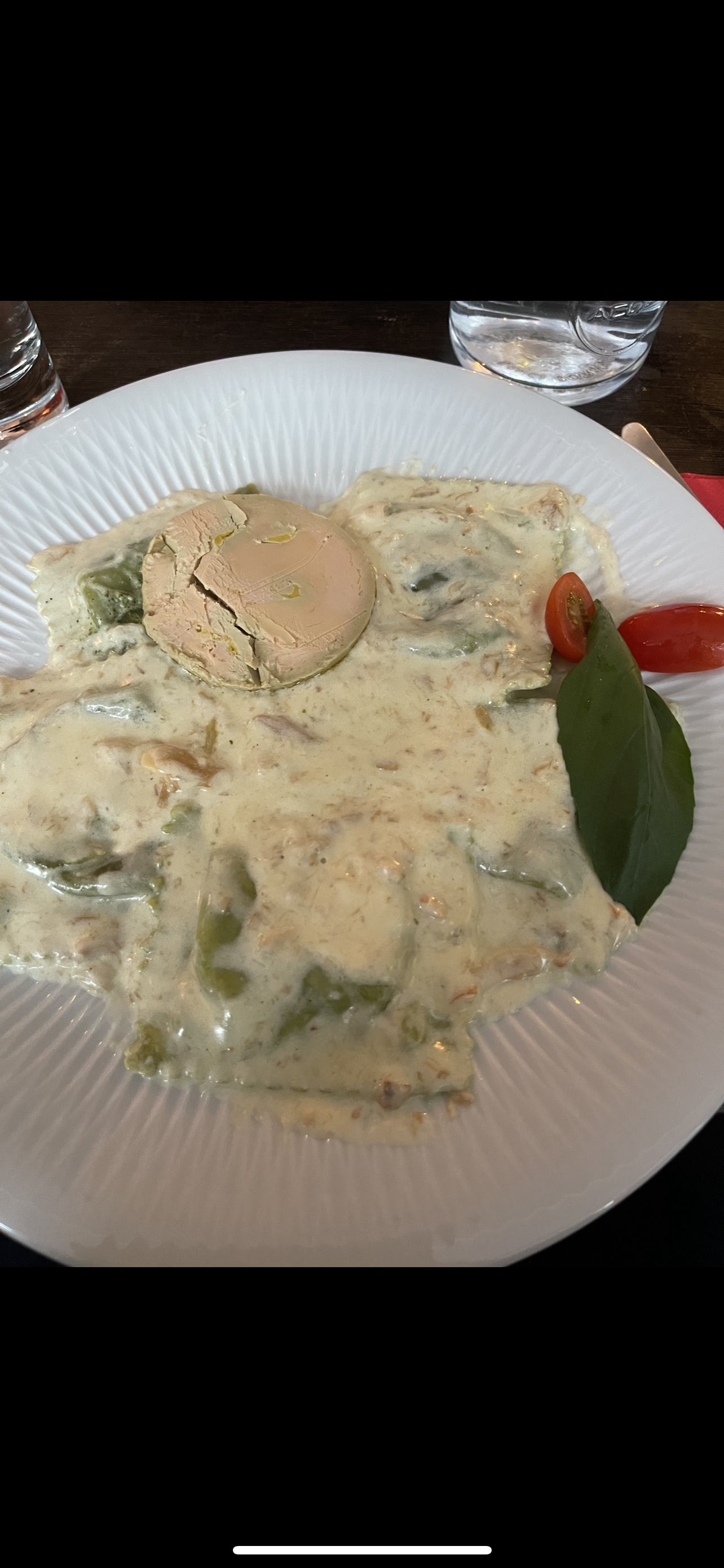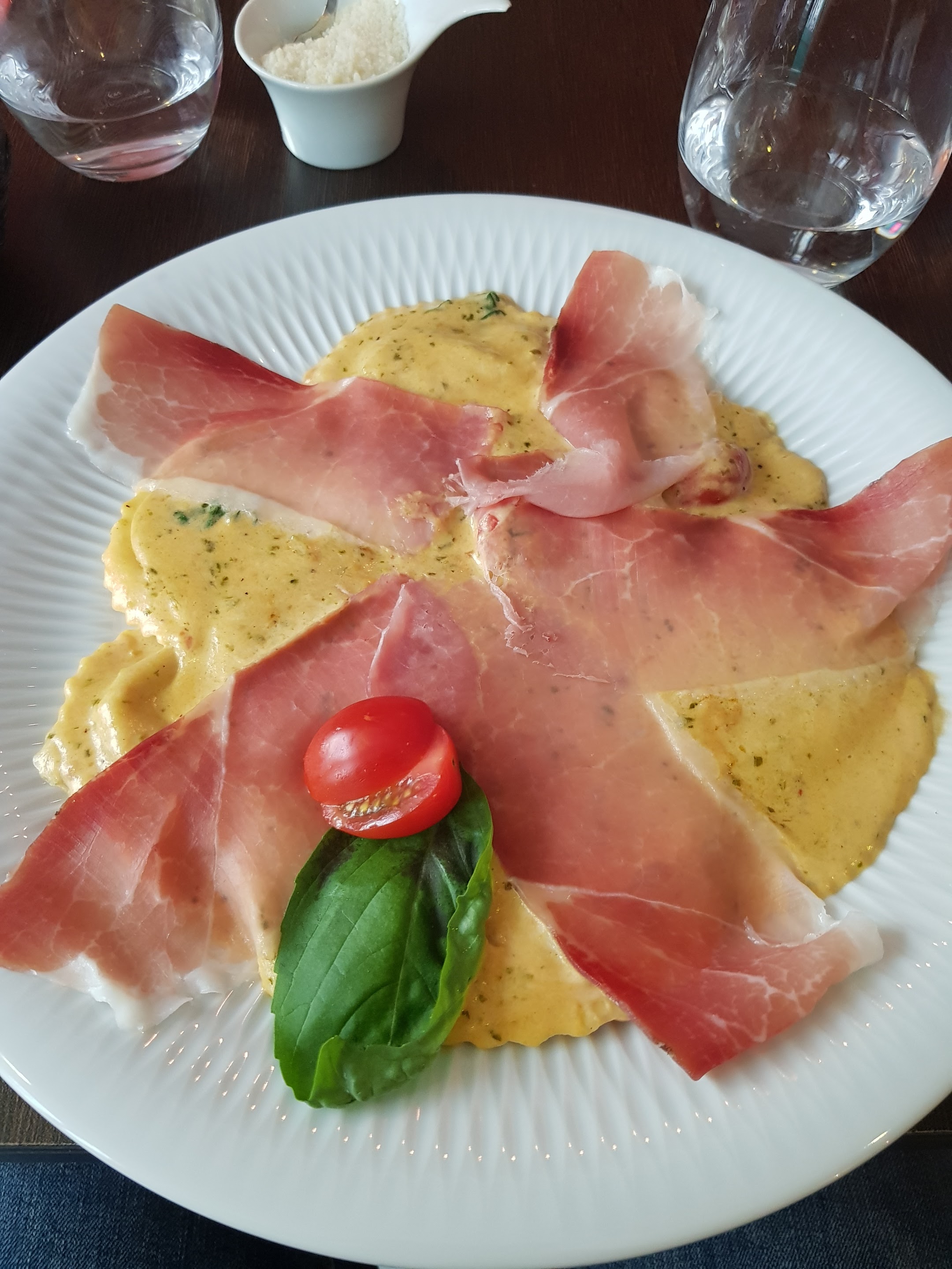 Très bon restaurant italien avec des spécialités maîtrisées et un accueil chaleureux. Nous avons pu déjeuner rapidement et sans accro. Ici le plat du jour avec un mélange de ravioles et de foie gras ( il fallait y penser ) je recommande vivement