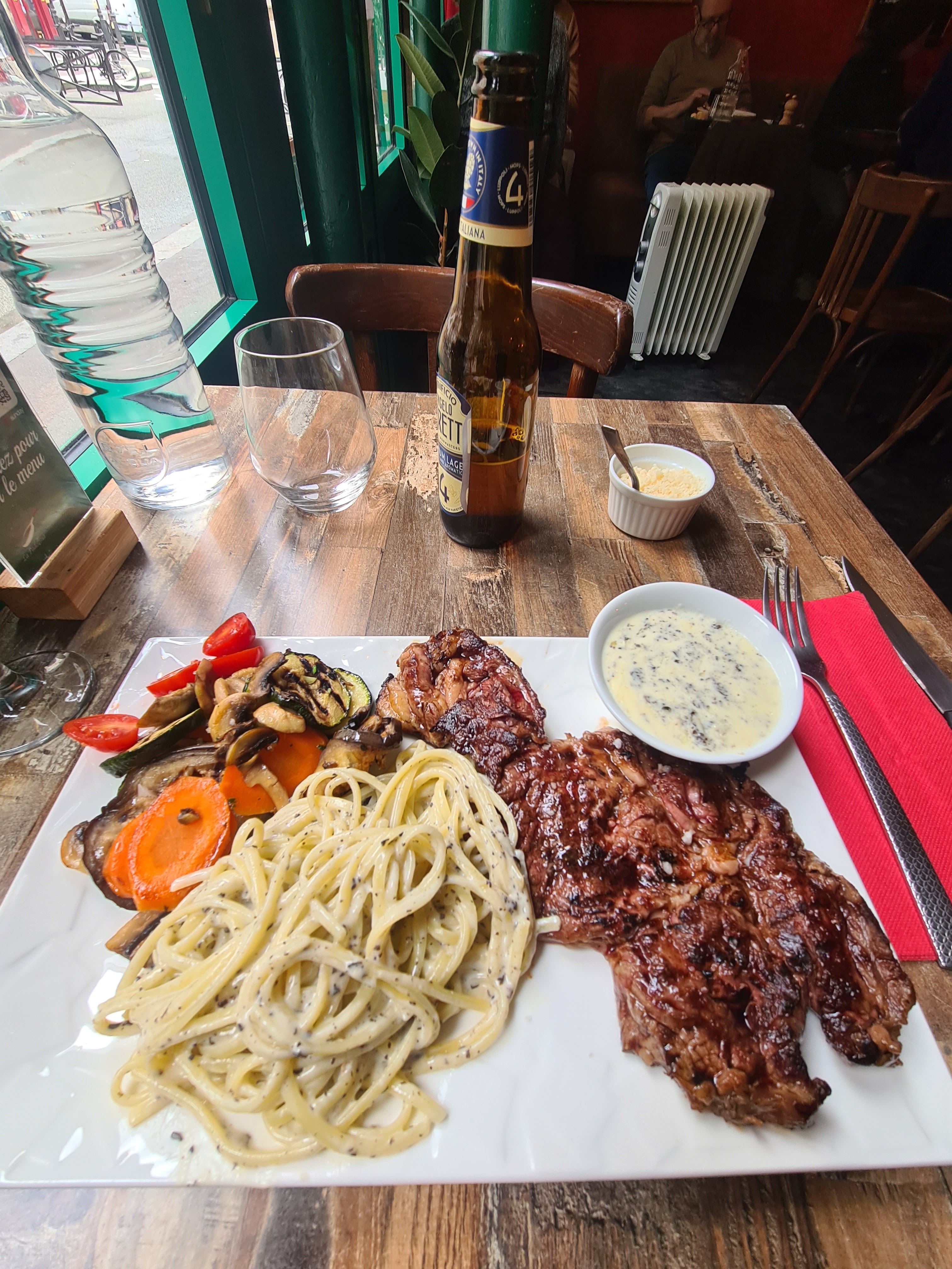 Accueil souriant (ça change des cafés parisiens), viande goûteuse, cuisson du plat parfaite. En bonus, un petit chant italien du patron... Italien 😉 Nous referons avec plaisir !