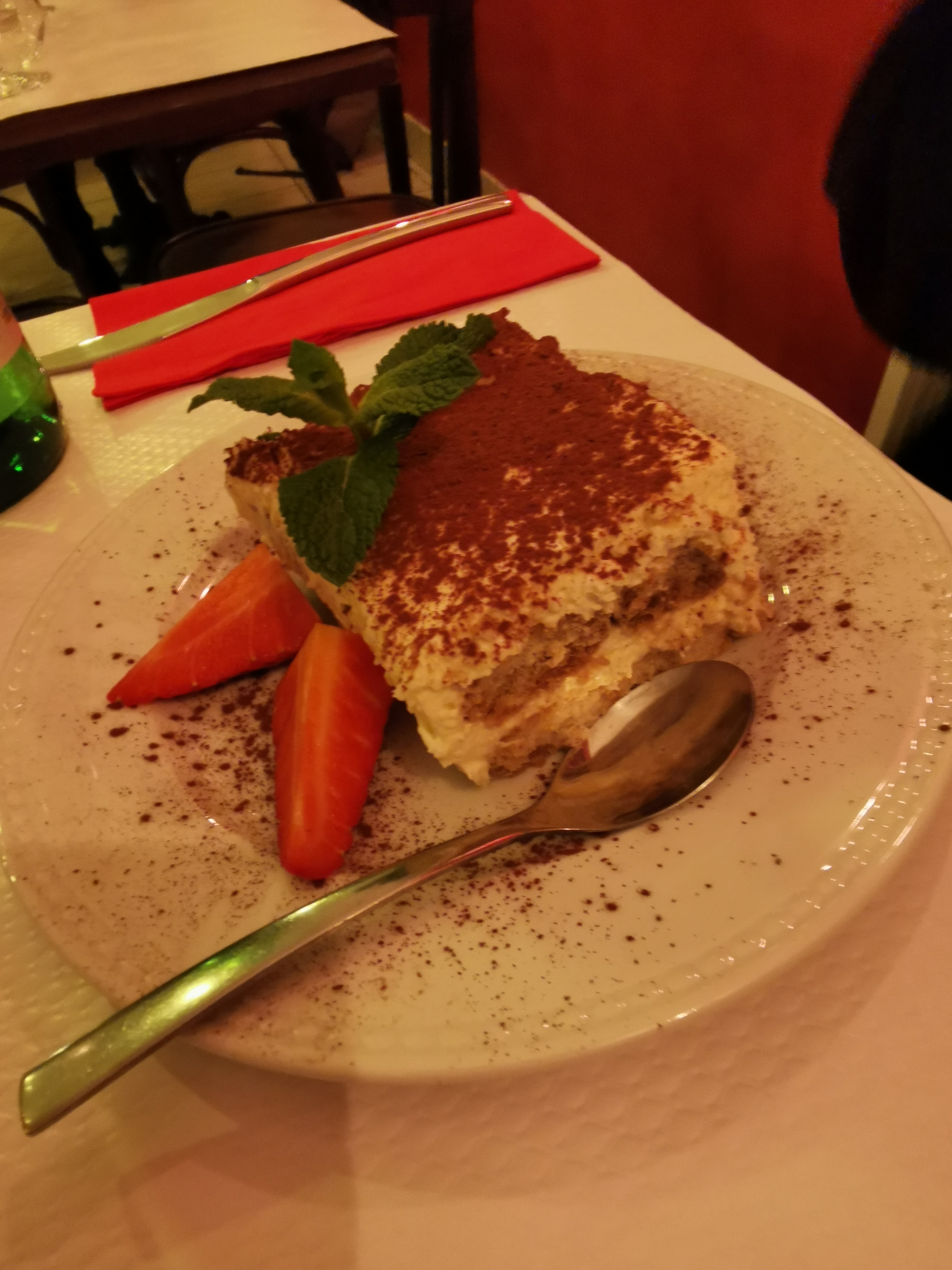 Excellente adresse pour un repas italien. Nous avons pris les gnocchis à la truffe, c’était succulent ! Juste une remarque pour le tiramisu, il était à température ambiante alors peut être le laisser plus longtemps au frigo ?