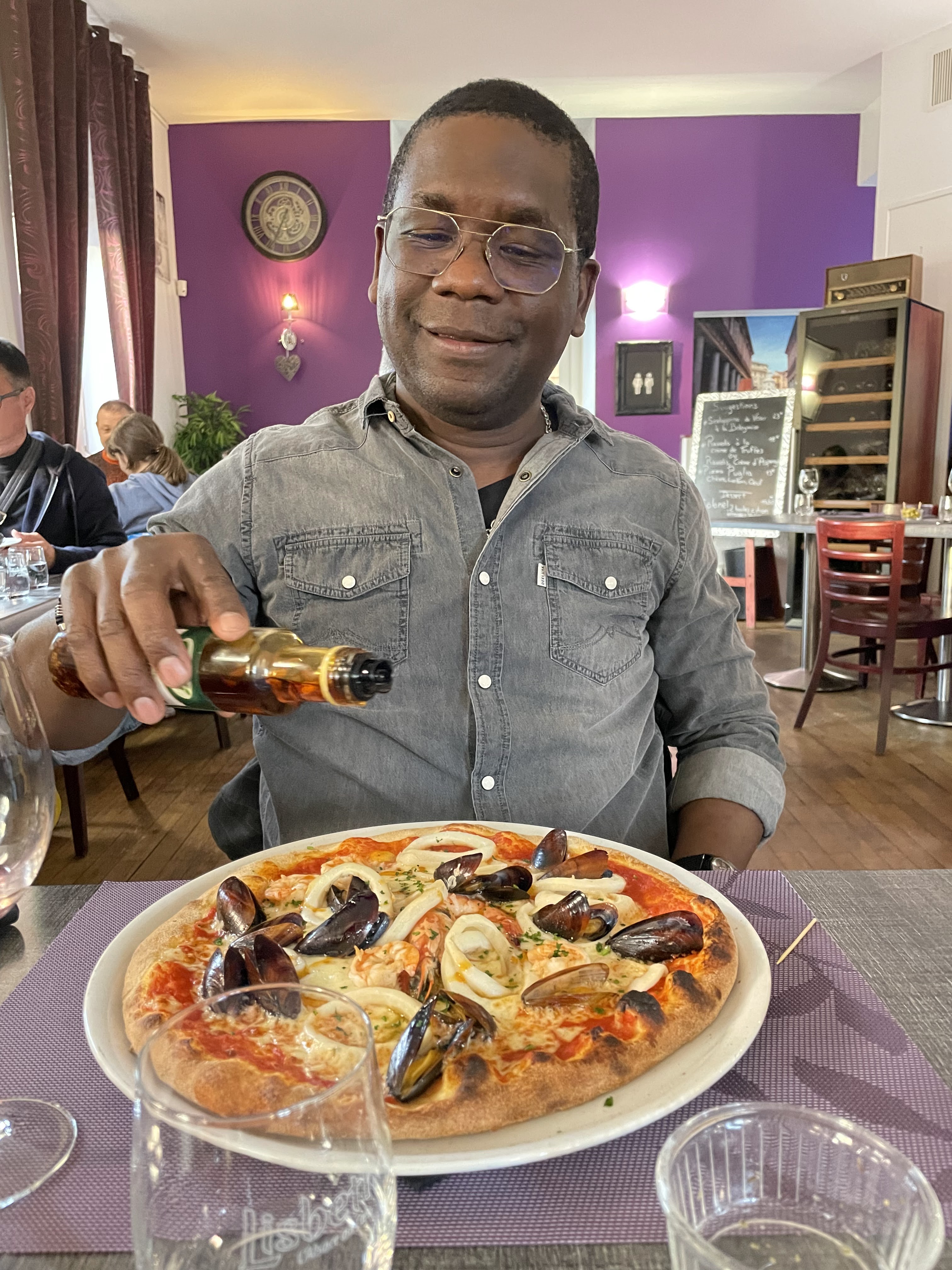 Très bon accueil et très bon. En revanche de l'huile pimentée en bouteille ce serait mieux....