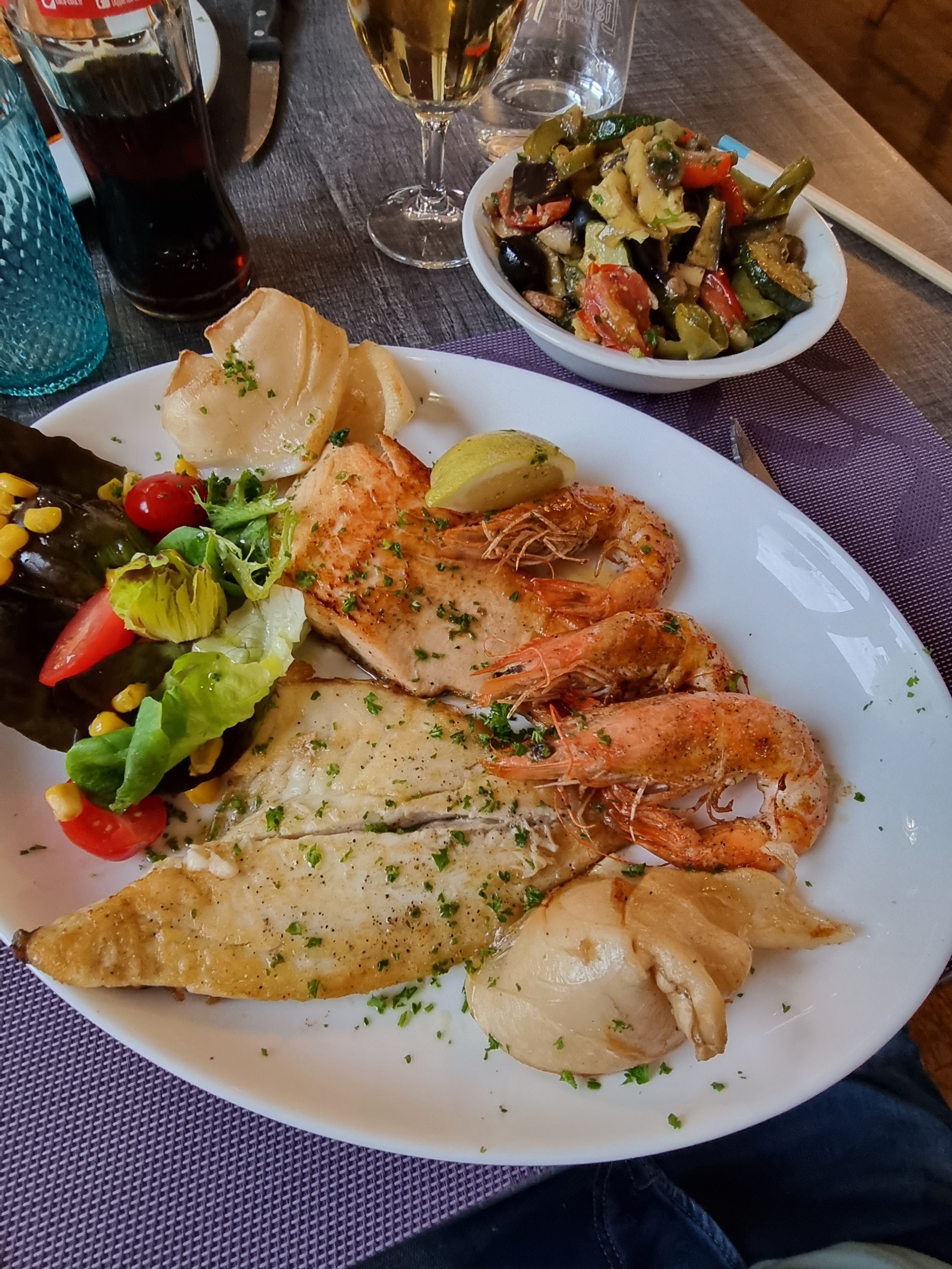 Un peu cantine, beaucoup de monde. Assiette de poissons moyenne au niveau gustative mais énorme en quantité, peu voir pas d accompagnement