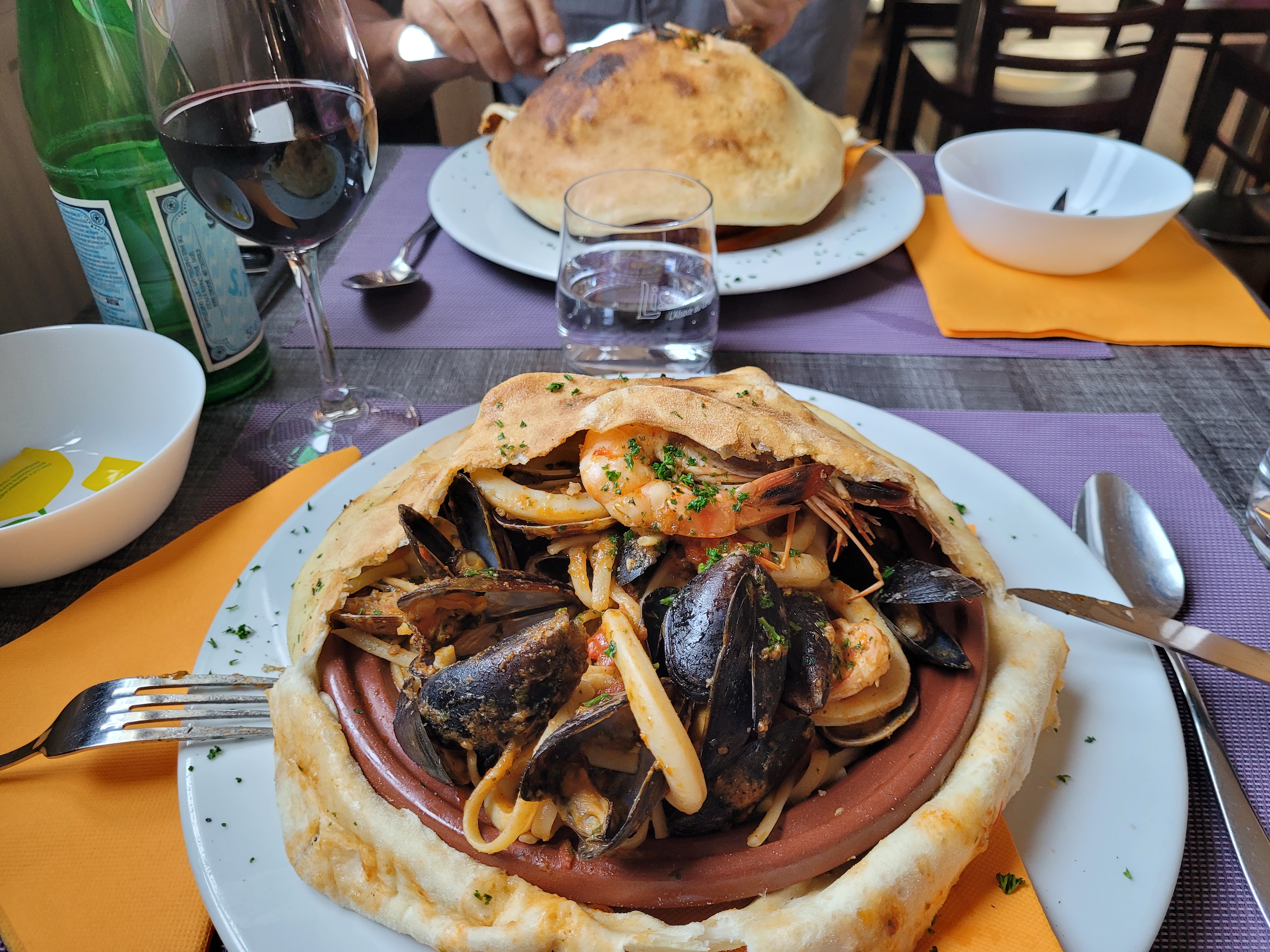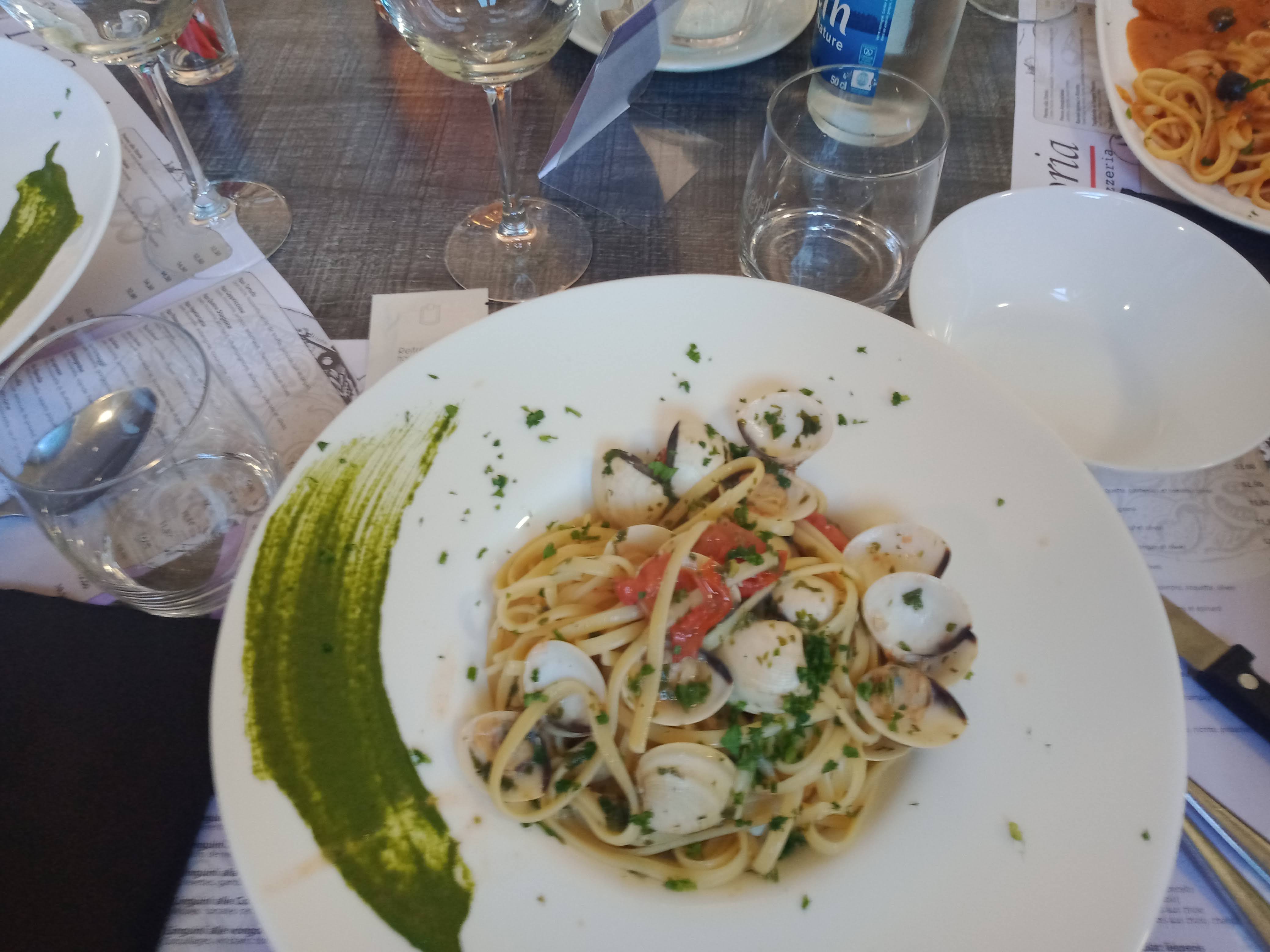 Nous avons trouvé ce restaurant grâce à Google Maps et je ne peux que vous le recommander ! Allez-y les yeux fermés. Tout était excellent ! Les pâtes Norma étaient succulentes, les aubergines fondaient dans la bouche. Si vous voulez une suggestion, les linguines La Storia est la signature maison, un plat que je n’ai jamais vu ailleurs. Des linguines aux fruits de mer recouvertes d’une pâte à pizza. Merveilleuses, d’après la Personne qui m’accompagnait. Pour l’entrée, j’ai pris les Bruschette très originales qui était également succulentes et copieuses. Le service était au top. Je recommande !