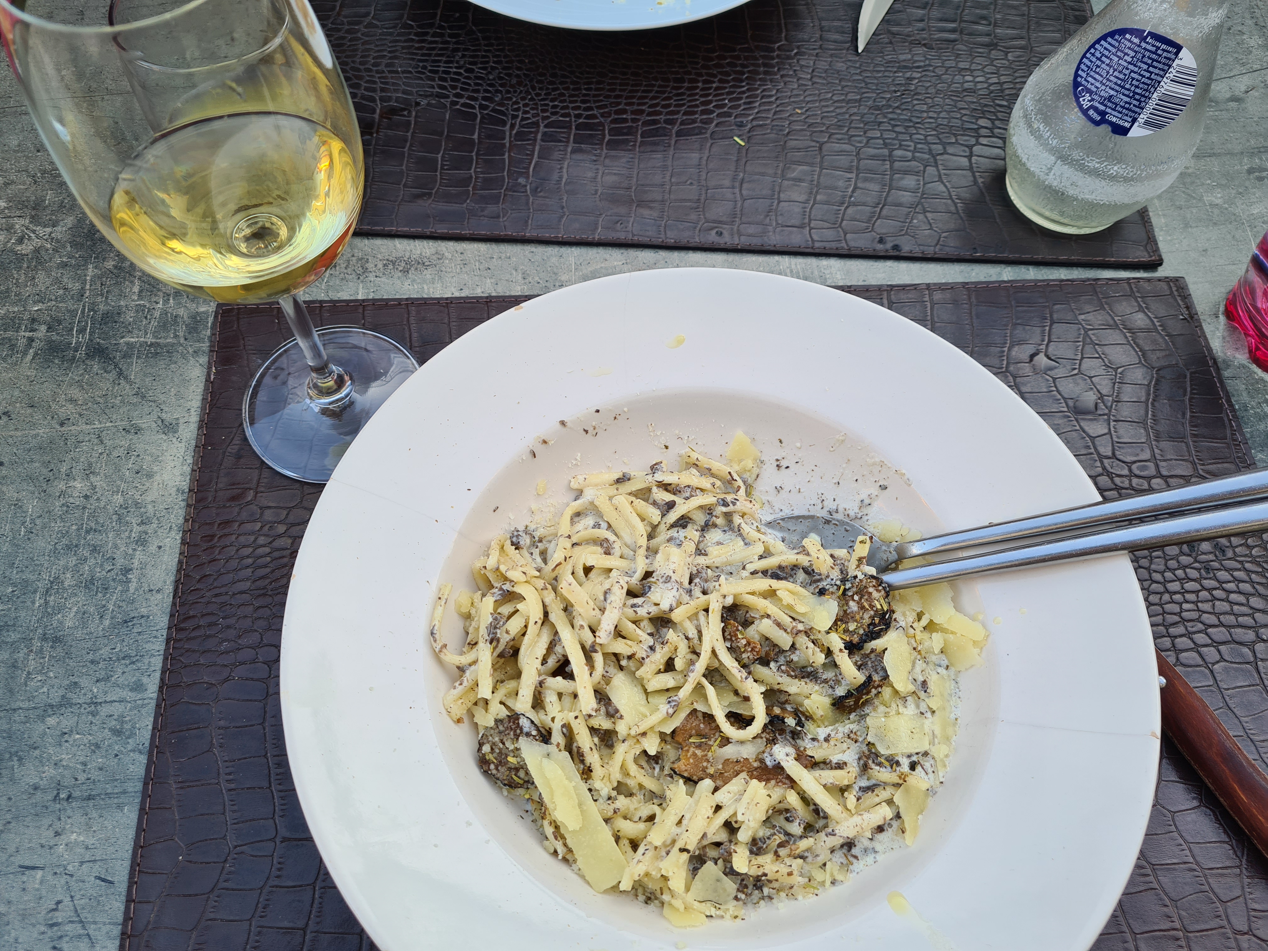 Nous avons consommé des ravioles et des pâtes à la truffe, c'était excellent et les morceaux de truffes étaient bien présents. Restaurant au calme, service sympa. Nous recommandons vivement !!