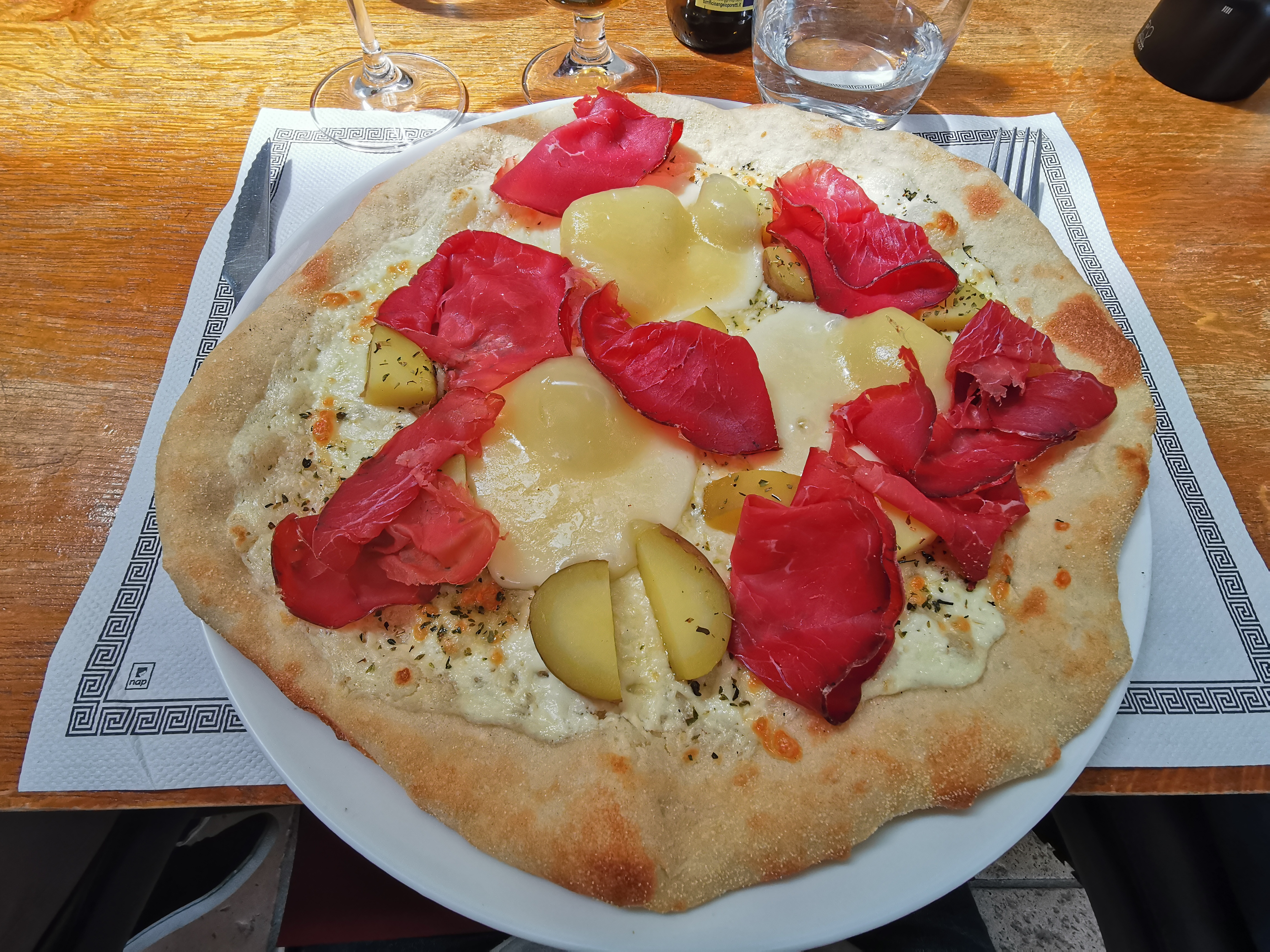 Les pizzas ne sont pas mauvaises mais le cadre est vraiment quelconque ce qui est d'image dans une aussi belle ville et surtout les tarifs sont vraiment très chers pour ce que c'est (pizzas de 12€ a 17€ et verre de vin pas extra a 6€ on n'est pas sur la Croisette ou les Champs-Elysées ) En plus la serveuse n'était vraiment pas très aimable (ce soir là je ne peut pas généraliser) Bref plutôt déçu