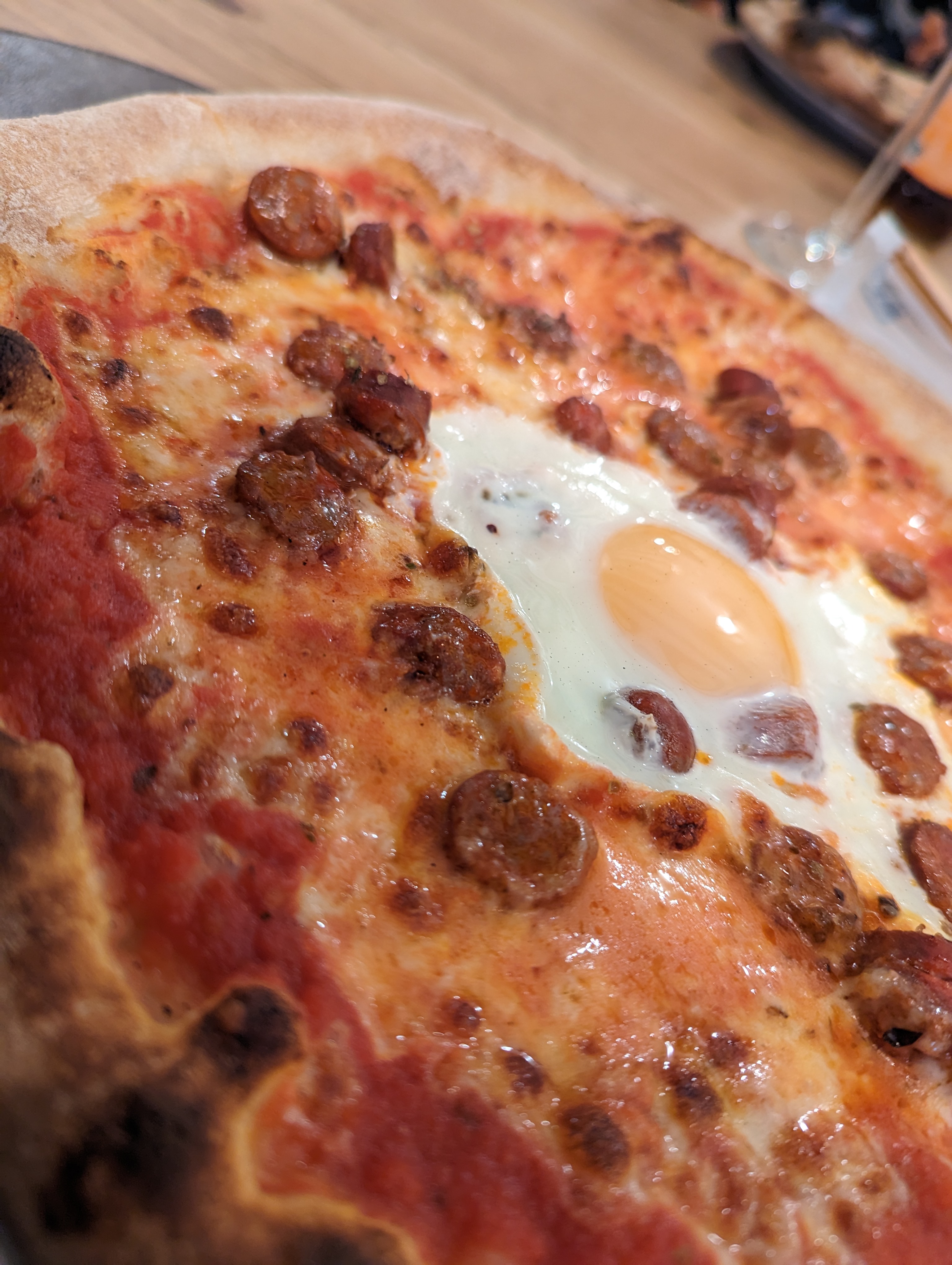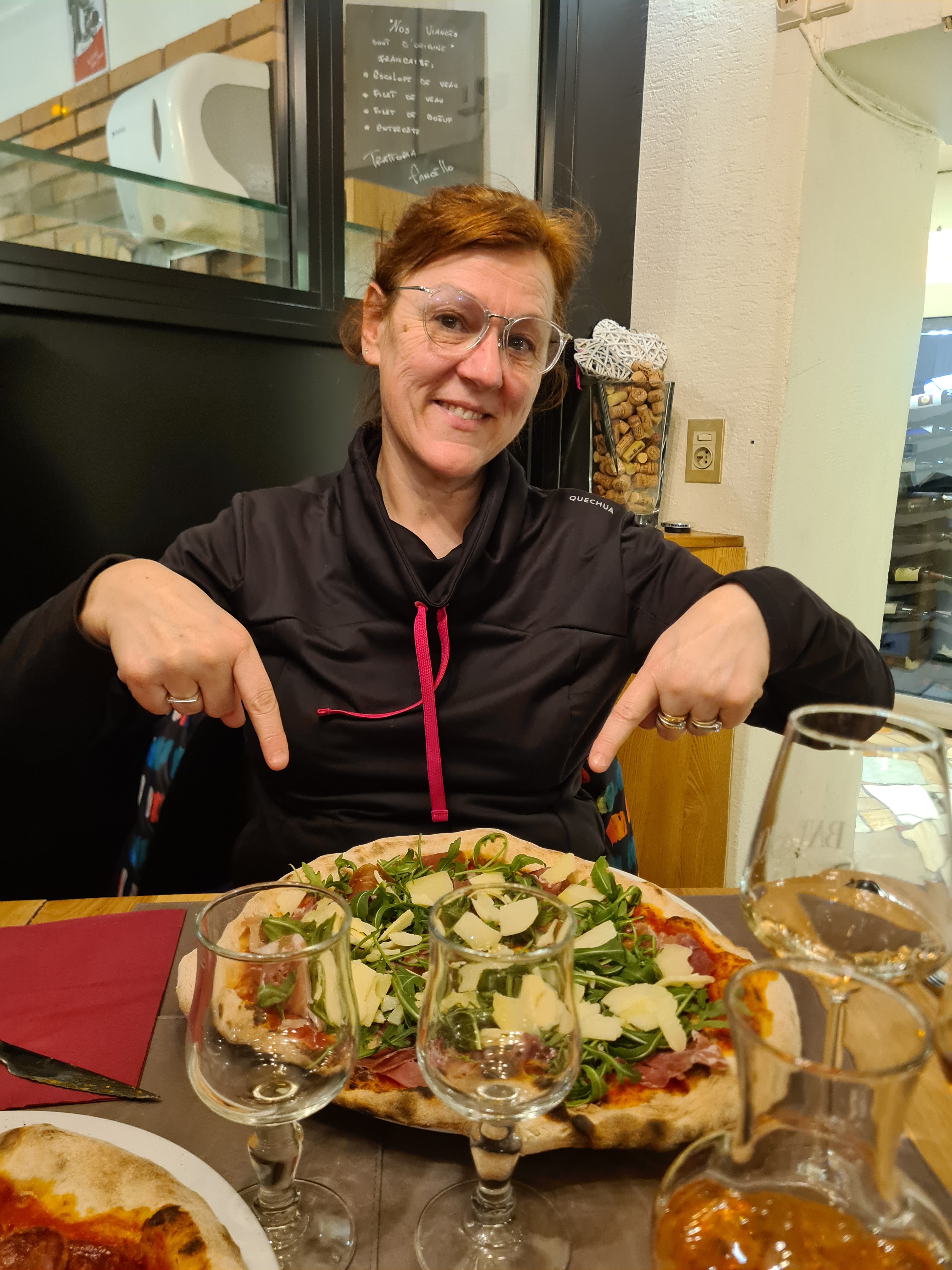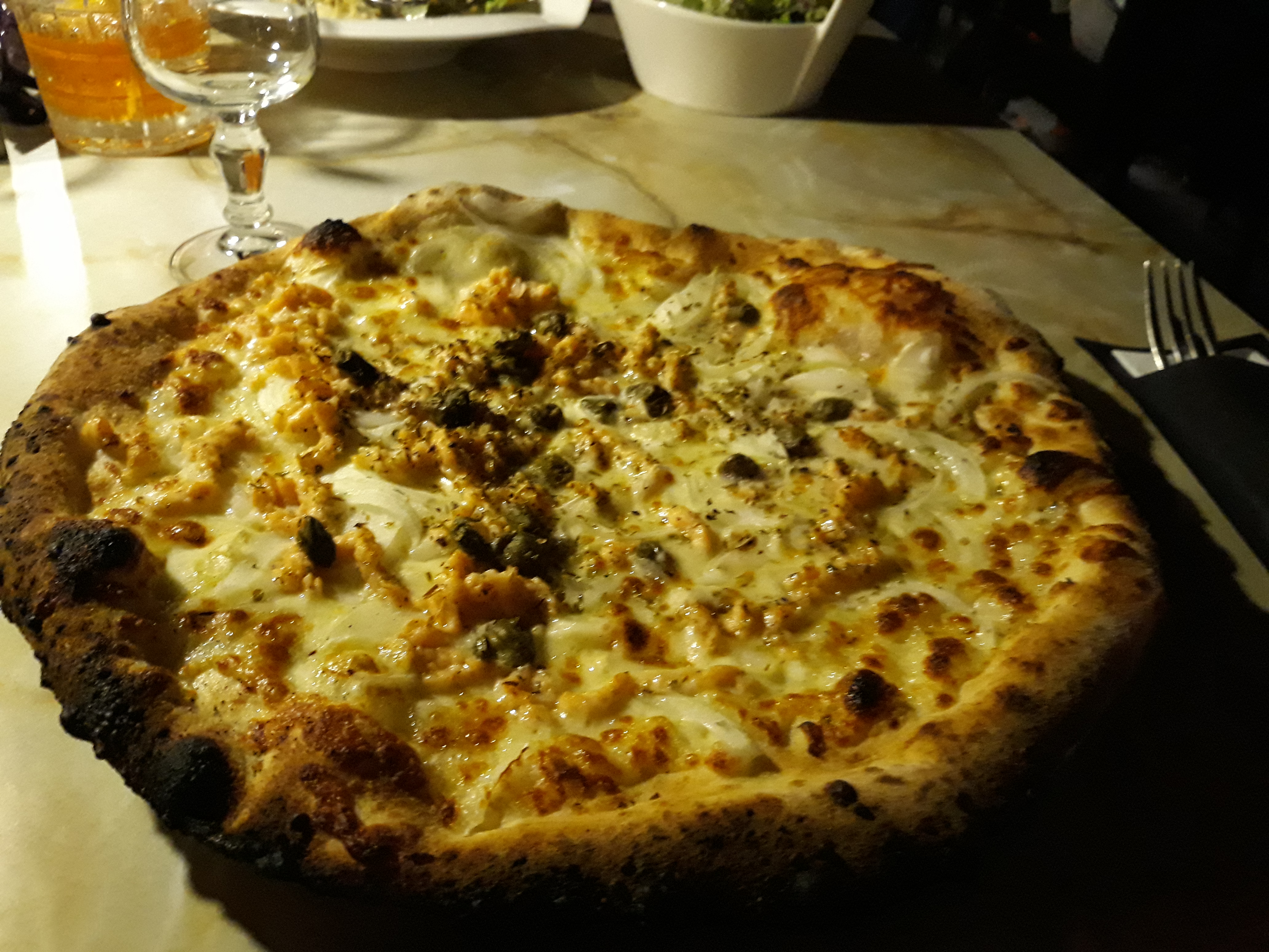 Pizza bonne mais j'en ai mangé de meilleures. La cuisson au feu de bois est un luxe qui appartient au passé...