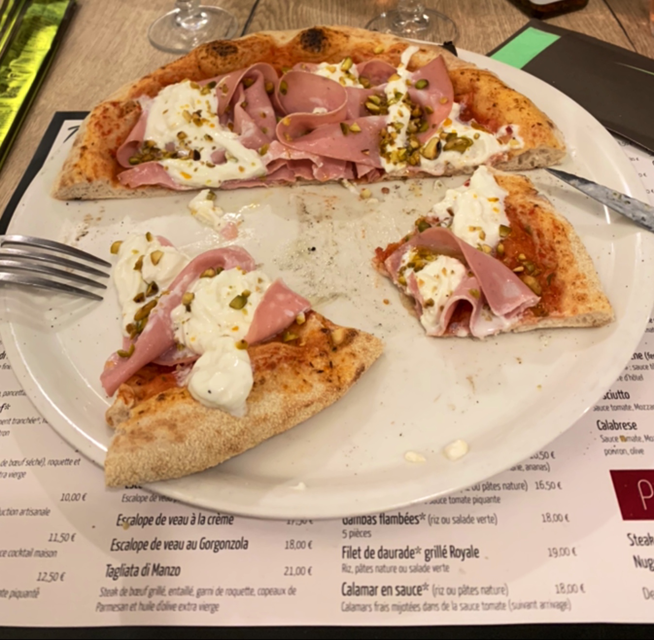 Accueil chaleureux , salle peu bruyant malgré le nombre de convives ce qui est appréciable , service parfait , atmosphère positive , sourires et bonne humeur du personnel , enfin une vraie TRATTORIA , le goût des pizzas de mon enfance en Italie retrouvé ! Une pâte exquise, une garniture aux produits frais et goûteux ! Un dessert magnifiquement dosé en sucre , agréable et rafraîchissant ! Merci pour cette soirée , une belle escapade , je me serai niveau gustatif presque cru en Italie si j' avais un instant fermé les yeux et savouré !