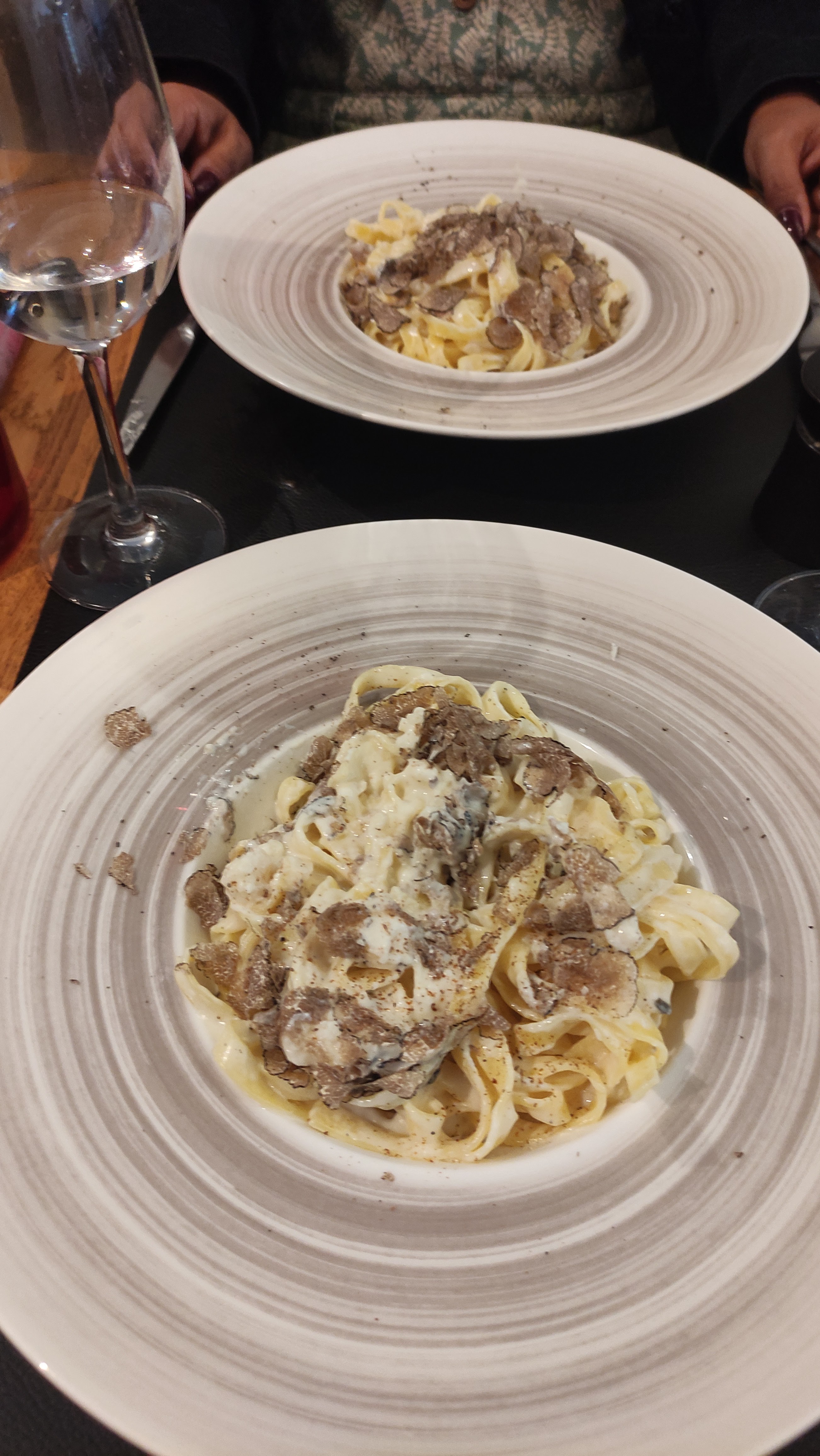 Les meilleurs pâtes à la truffe roulés et flambé dans le parmesan que j'ai mangé dans ma vie... c'est divin ! Et cette pana cota maison... un régal !