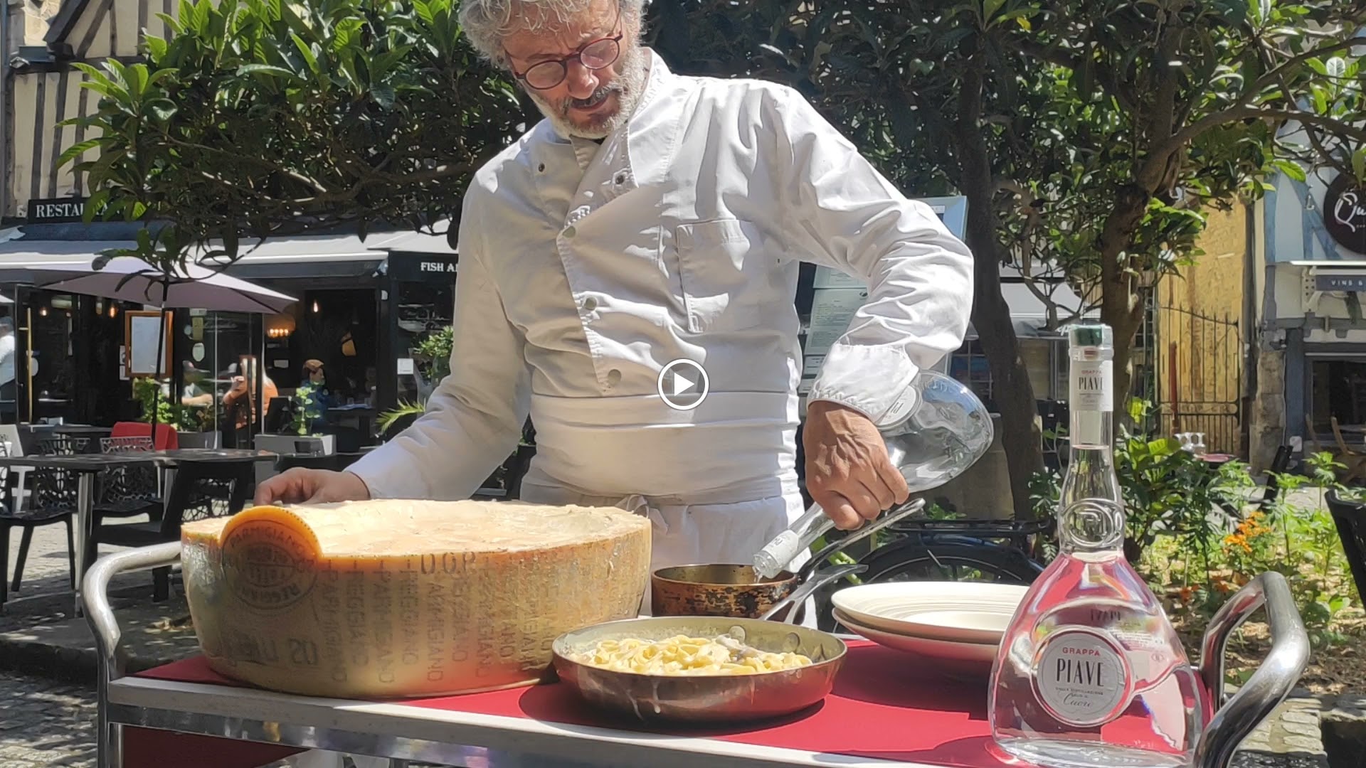 On fonce pour aller déguster les tagliatelles dans la meule de parmesan.