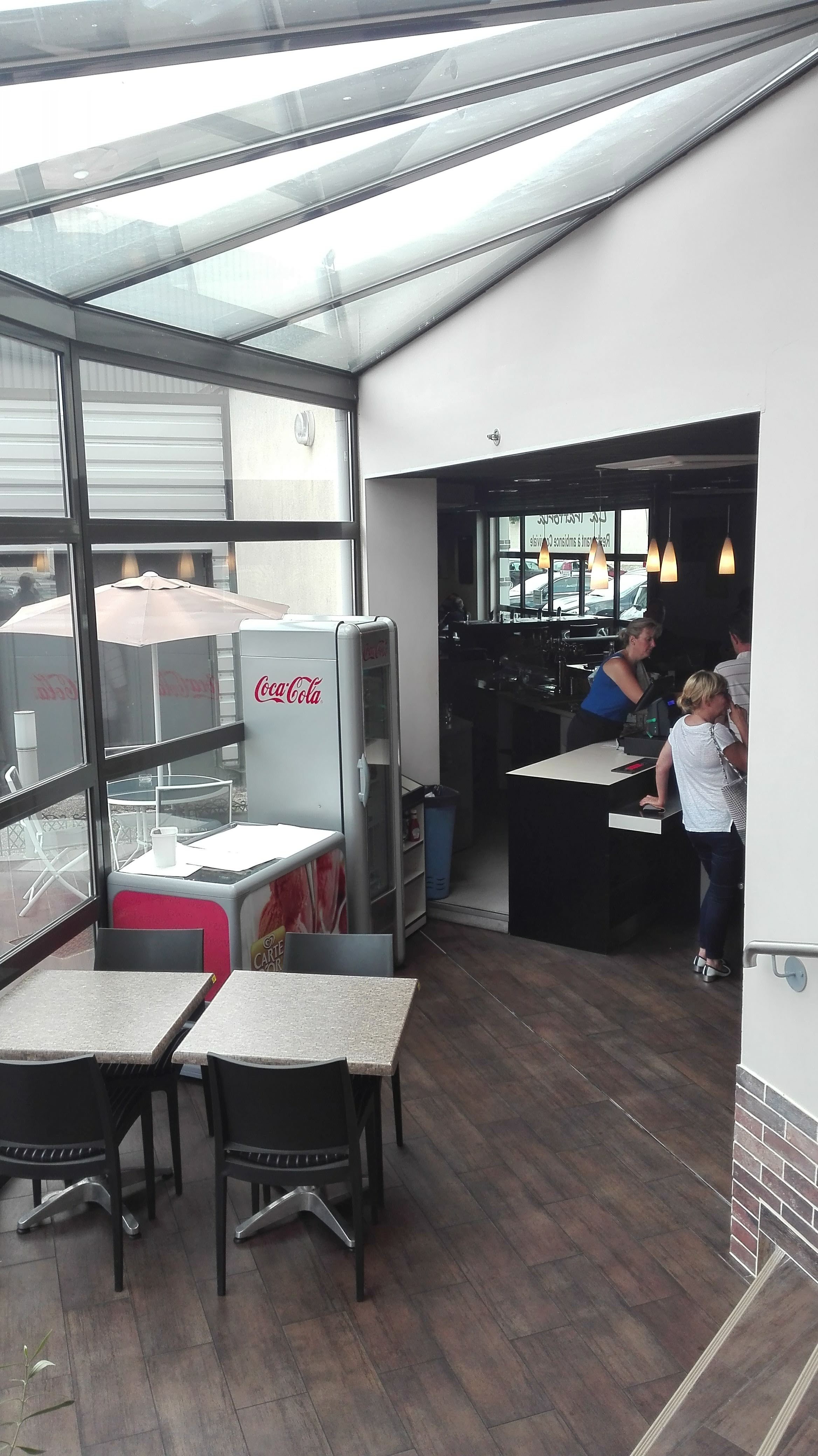 Prix excessif (pâtes carbo + un verre de vin) 16,5€. Le morceau de pain est payant 0,50€ !! Les clients prennent leur plat eux même (Nouveau Concept).